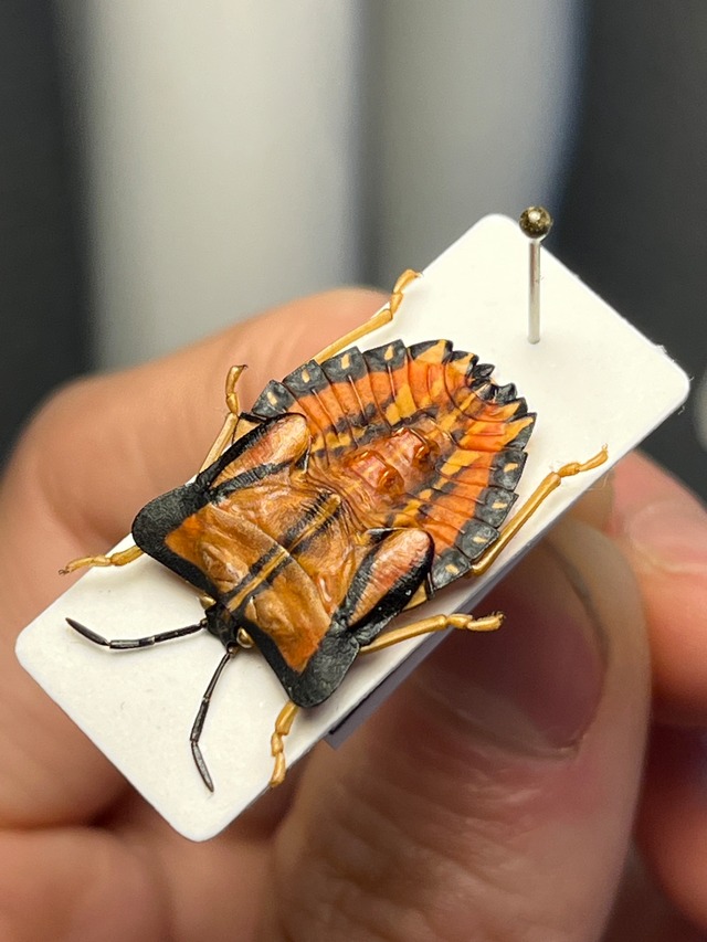 学名: Tessaratoma papillosa? ライチオオカメムシに似ているカメムシですが、産地がトーゴなので別種のカメムシです。 妖怪の塗り壁感があります。 申し訳ありませんが輸送に伴うグレードダウン保証はございませんのでご了承願います。 トーゴ産の画像個体を配送します。2021年に採取されております。 私が計測したところ頭胴長で19mmでした。