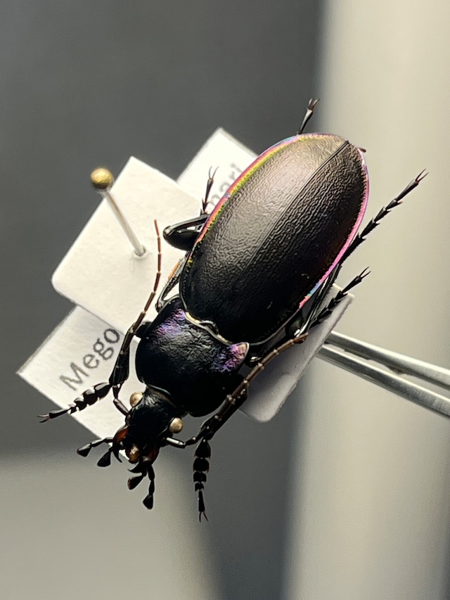 学名:Carabus bonvouloiri blue form 和名: ボンヴロワキンオサムシ/ボンボウロイキンオサムシ/ボンボアロキンオサムシ イボハダオサムシに似ています。 メタリック感は控えめで身体の外側にいくにつれてメタリック感が強まります。 申し訳ありませんが輸送に伴うグレードダウン保証はございませんのでご了承願います。 トルコ ジガナ峠 トラブゾン方面 標高1680m地点産の画像個体を配送します。2006年6月7日に採取されております。 私が計測したところ36mmでした。 情勢的になかなか入手できないと思います。