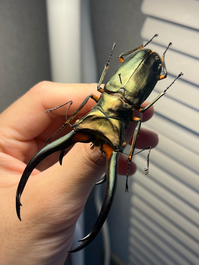 学名: Autocrates vitalisi ? 和名:ビタリシクワガタモドキ/擬鍬形 色々な虫を混ぜこぜにしたような虫で昆虫、奇蟲好き問わず、刺さる虫だと思います。 コーカサスオオカブトに勝るとも劣らない緑の艶感が美しいのでおすすめです! 申し訳ありませんが輸送に伴うグレードダウン保証はございませんのでご了承願います。 ラオス サムヌア Pan山産の画像個体を配送します。2013年5月に採集されております。 私が計測したところ72mmでした。
