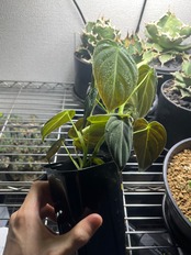コロンビアのアンデス山脈原産で、ビロードのような濃い緑色の葉が特徴的なつる性の観葉植物です。新葉は銅金色で、徐々に黒緑色に変化します。和名では「ビロードカズラ」と呼ばれます。