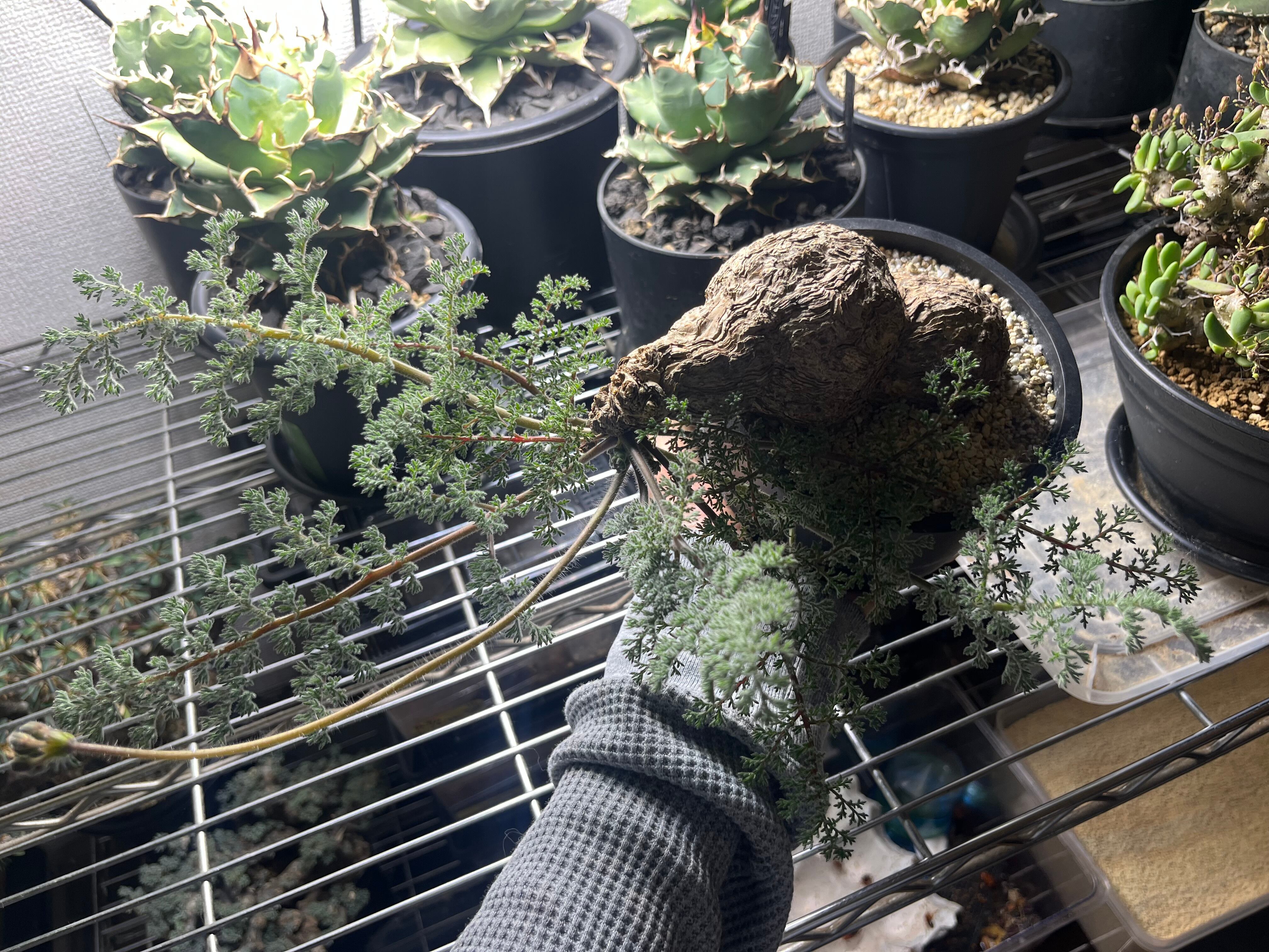 白い繊毛をまとった葉が美しい盆栽感のある塊根植物です。なんとなく雲海を連想させます。