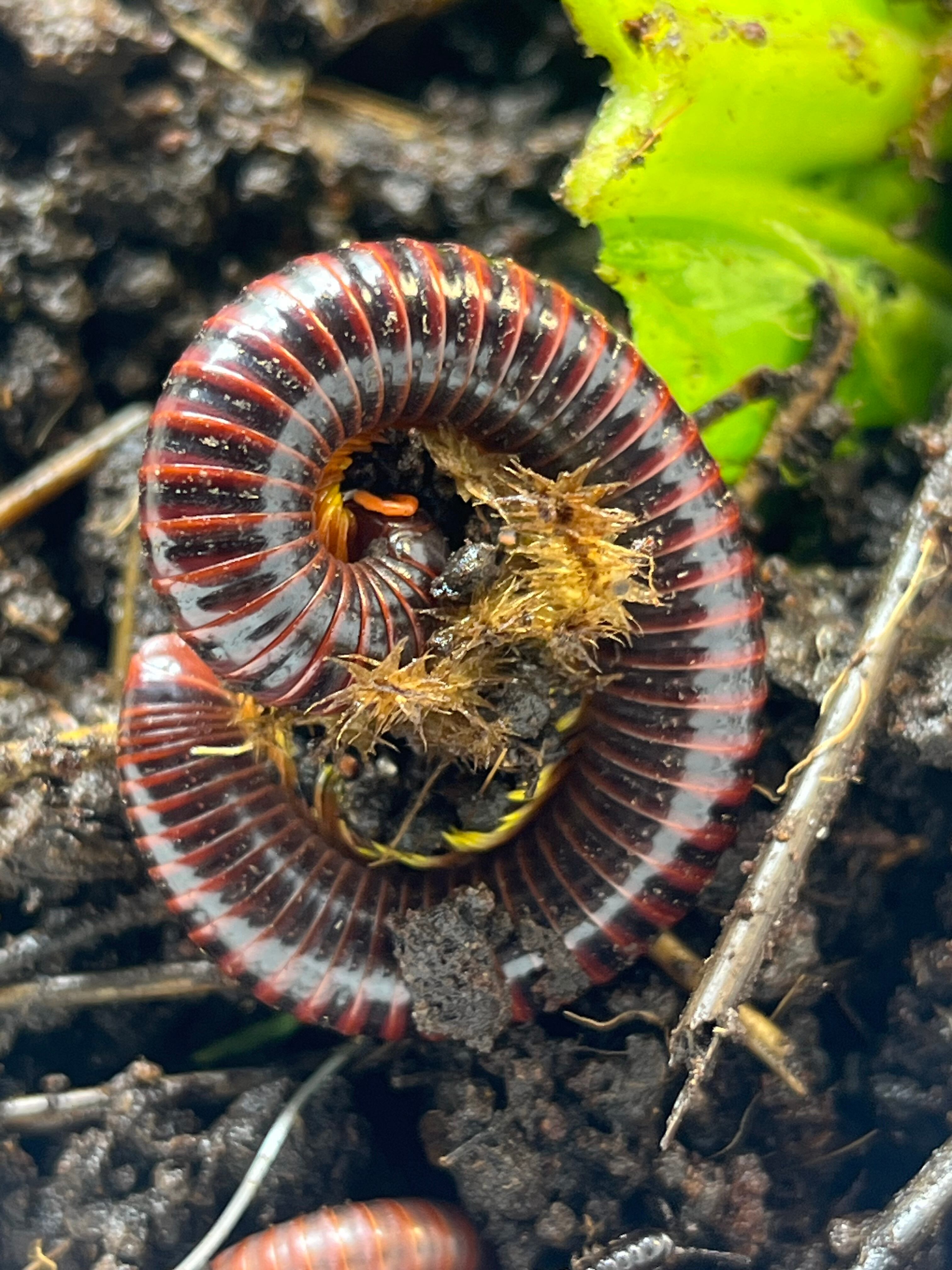 橙と黄色のグラデーションの脚が綺麗なヤスデです。ヨロイムカデの餌としておすすめです!