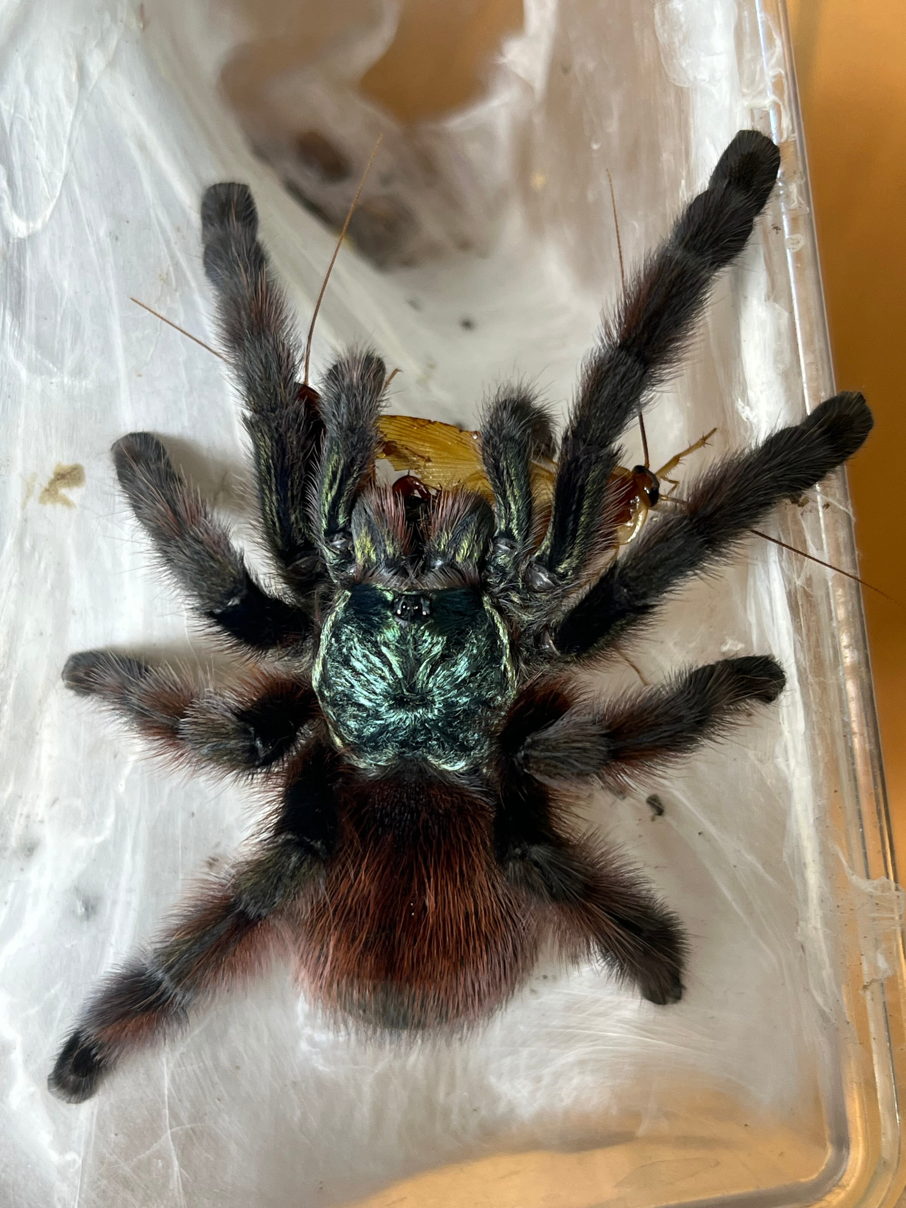こちらのアンティルピンクトゥタランチュラは、非常に美しい色合いが特徴のタランチュラです!しっかりとした体型を持ち、魅力的な外見だけでなく、飼育上も比較的おとなしい性格をしており、初心者の方にもおすすめです。当サイズは7cm程となっており、めったに見かけない魅力的なサイズ感です。♀の画像個体をお届けします。