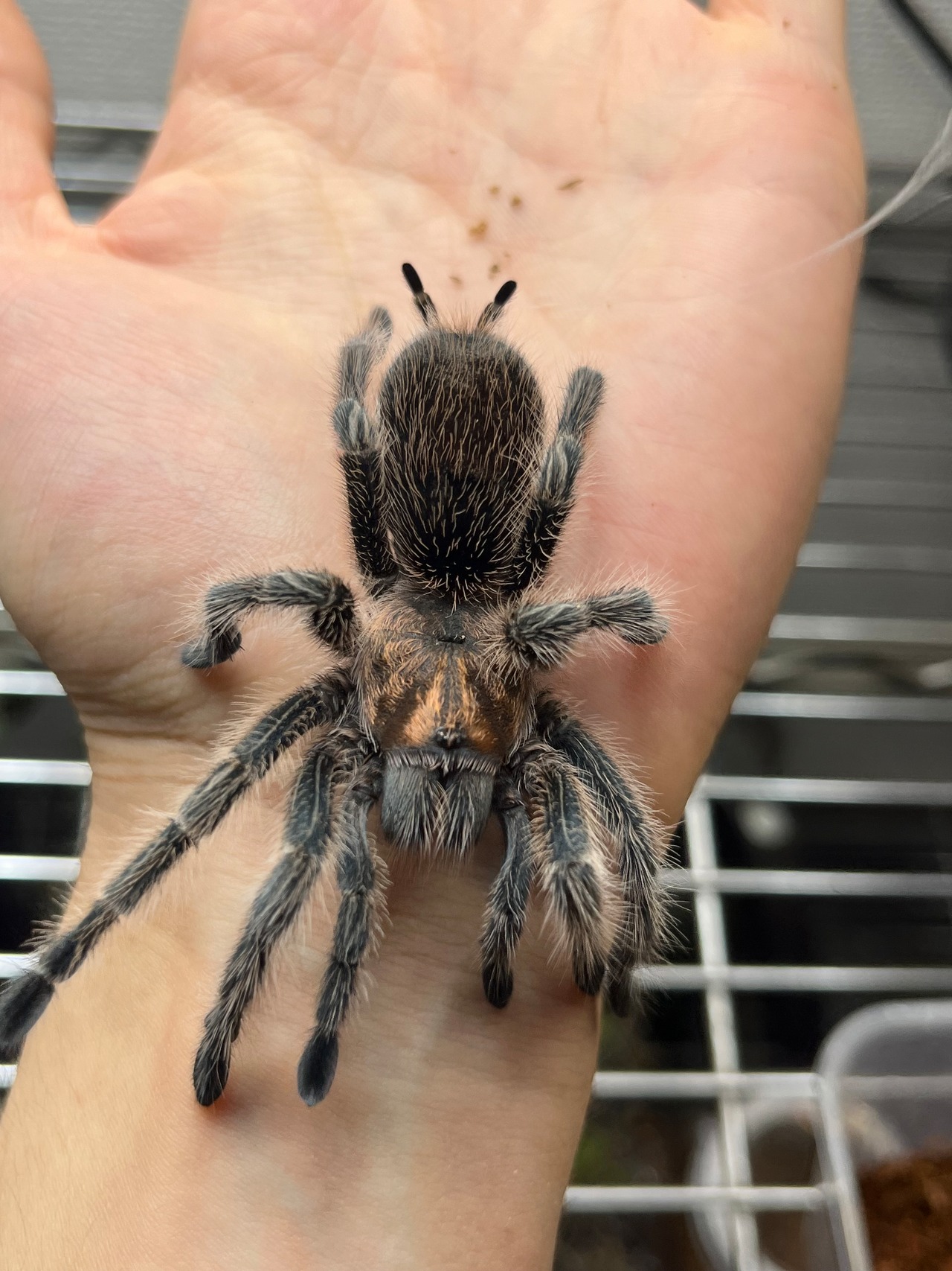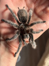 チャコジャイやブラジリアンブラックと同じ種族であるグランモストラ族のタランチュラですので刺激毛もとばさずかなりおとなしいタランチュラでございます。