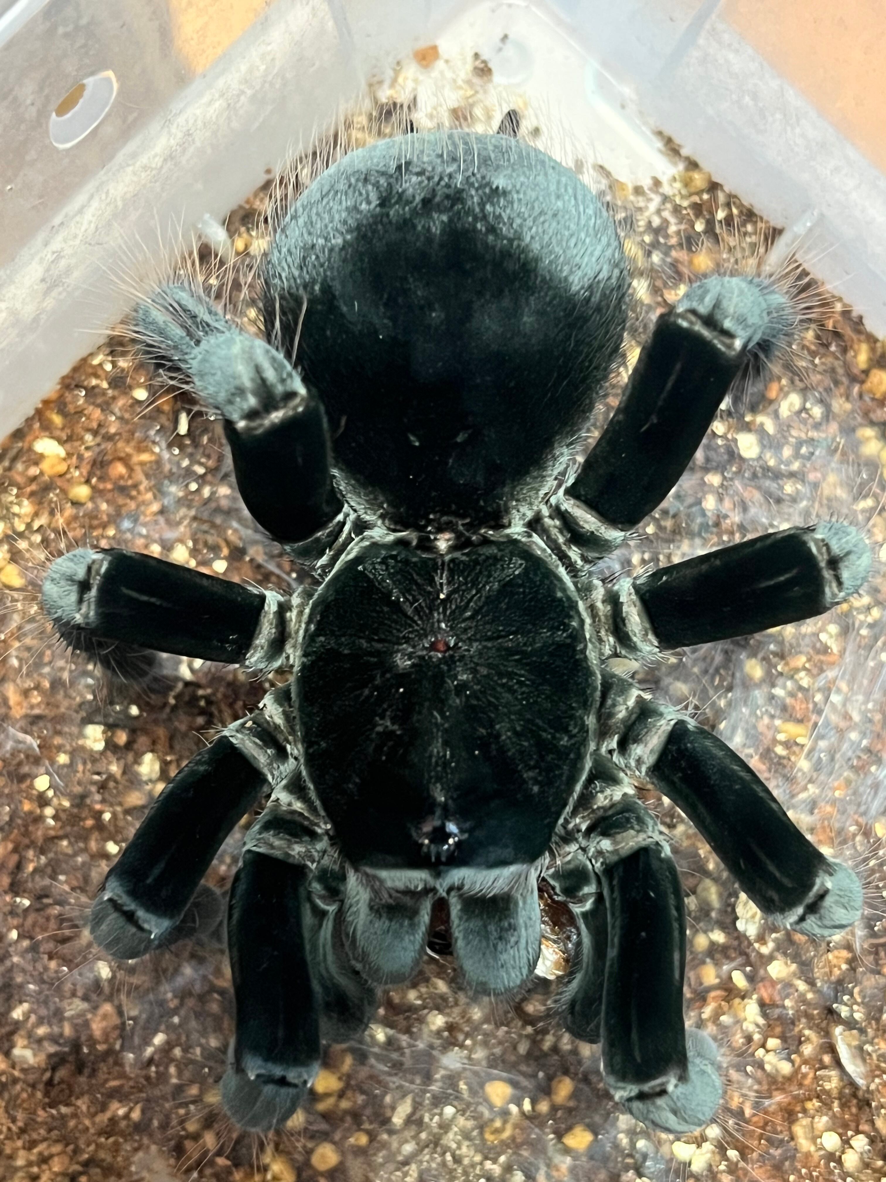 ♂は足が青くなり、♀は真っ黒になるタランチュラです。