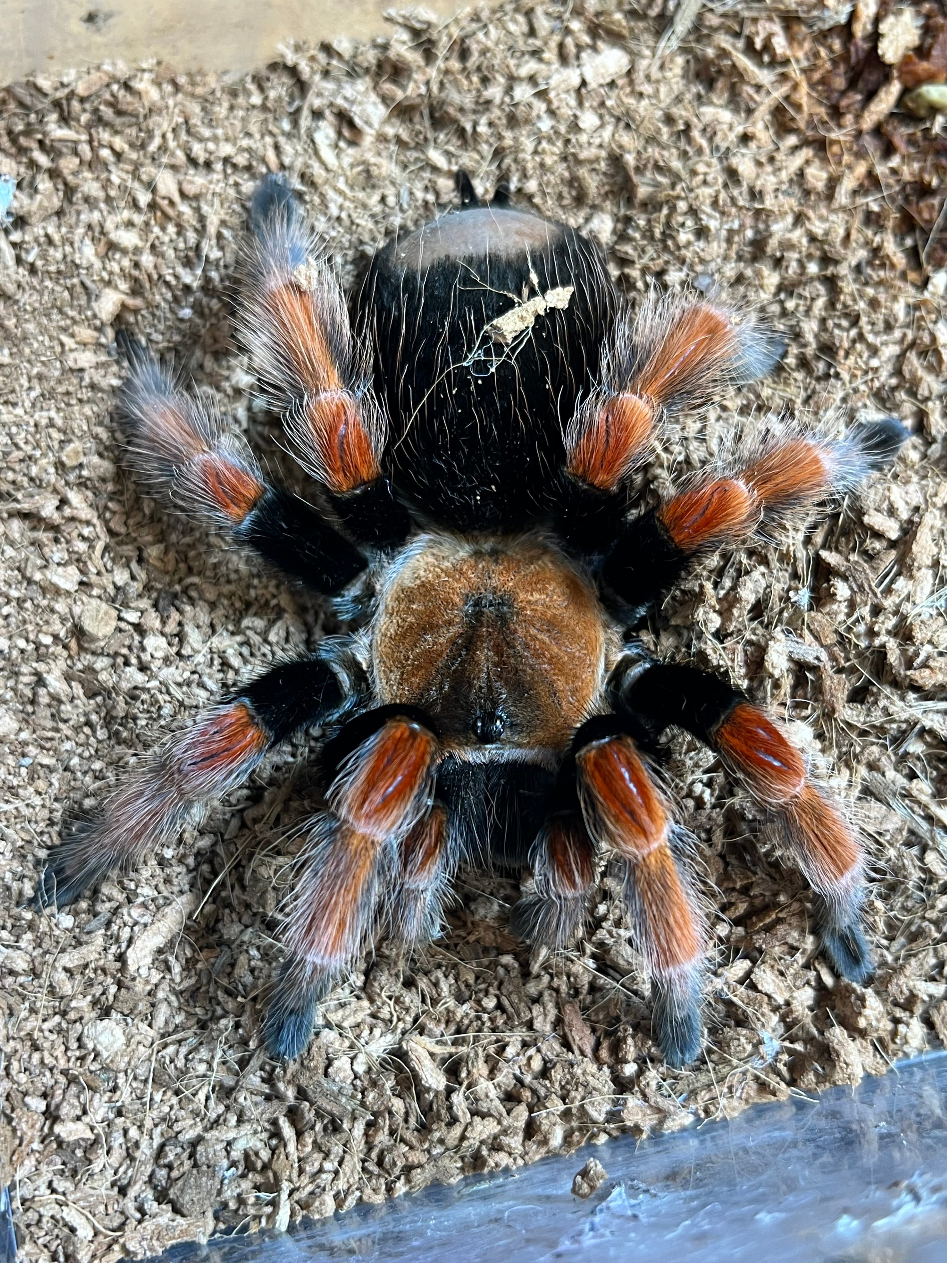色々なオレンジ色のタランチュラがいますが最も朱色に近いオレンジで非常に発色がいいタランチュラなのでおすすめです!
