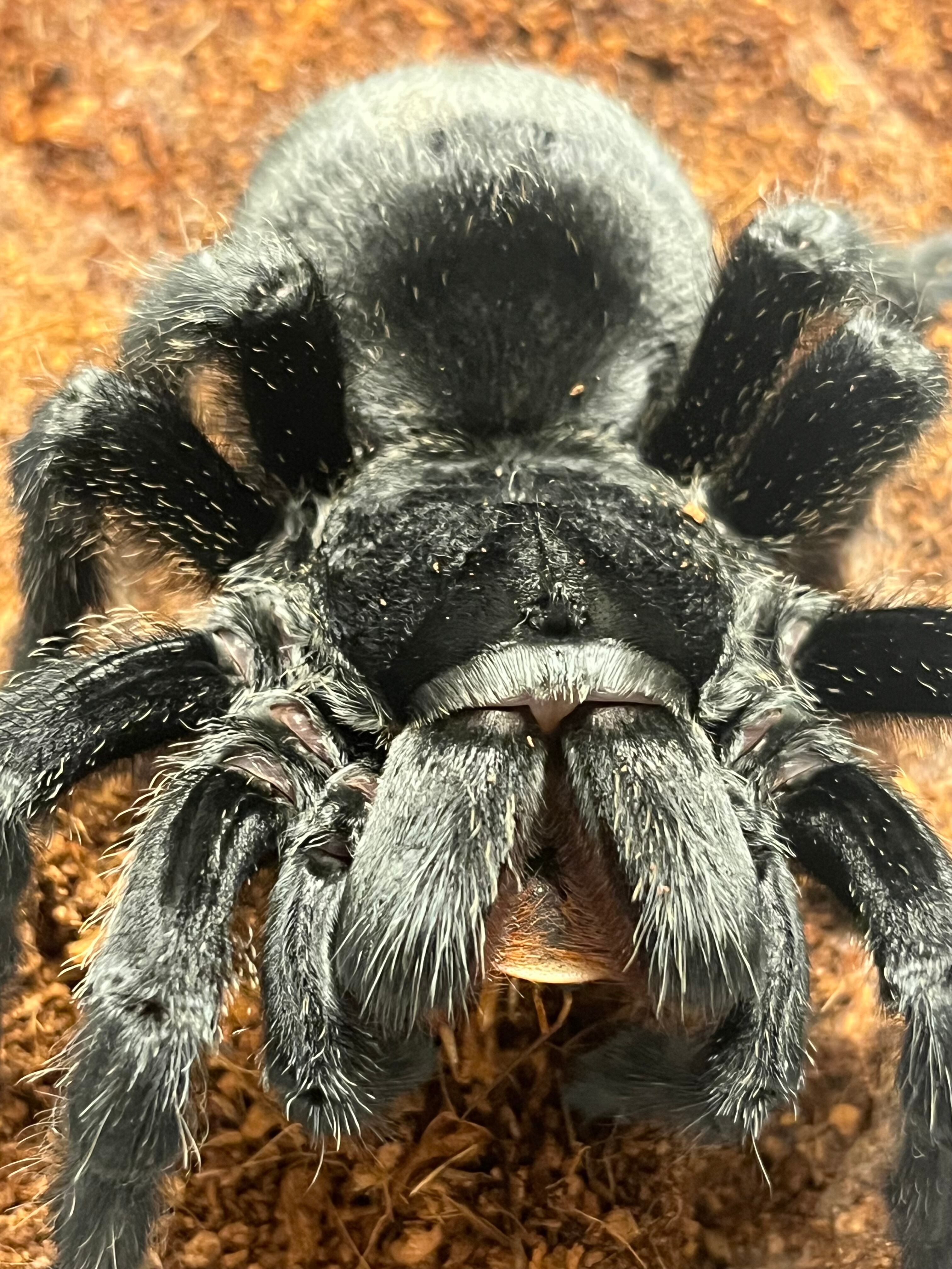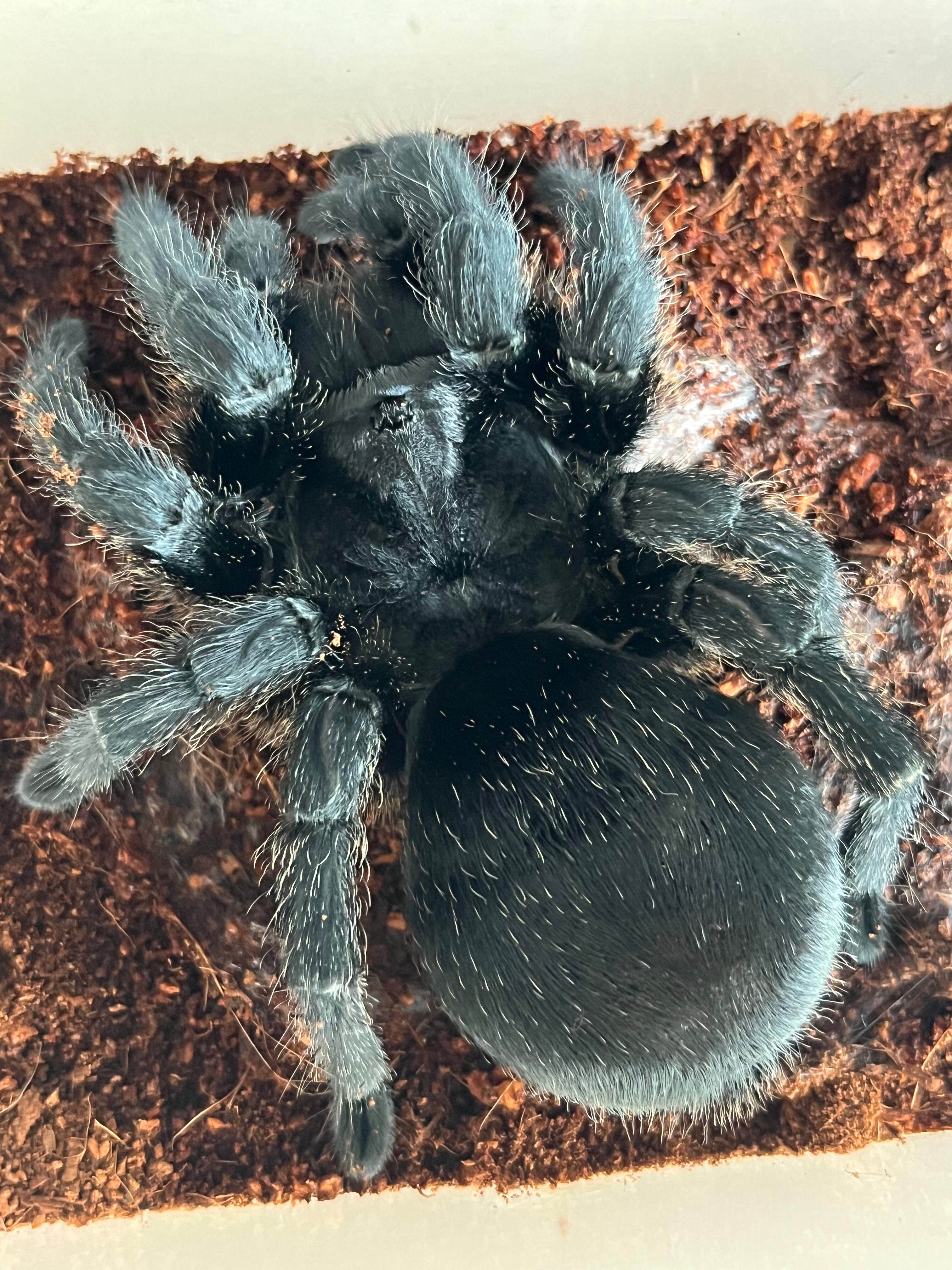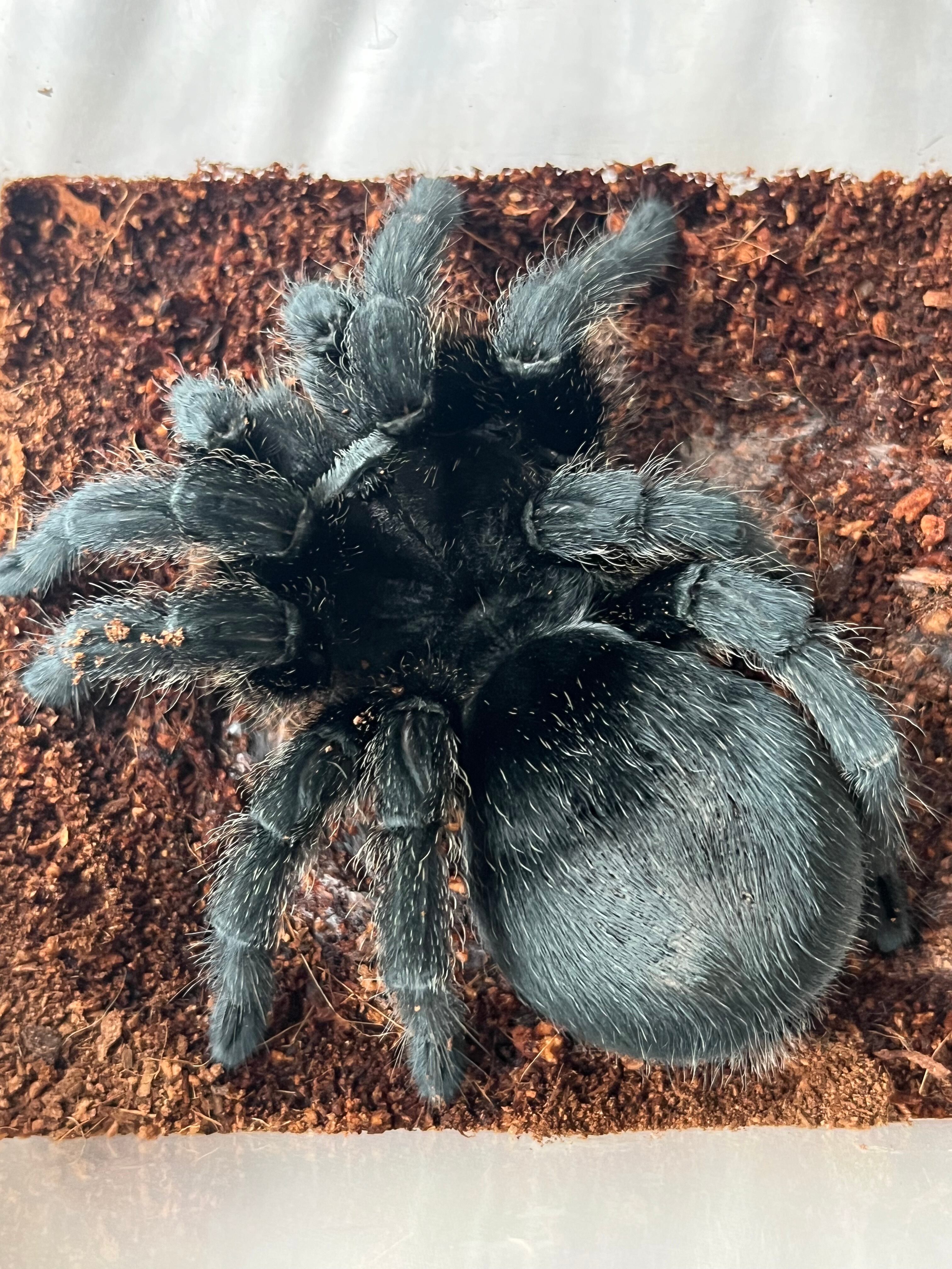 お腹の形が球体状のラグビーボールみたいな形の♀のブラジリアンブラックです。極美個体でした。