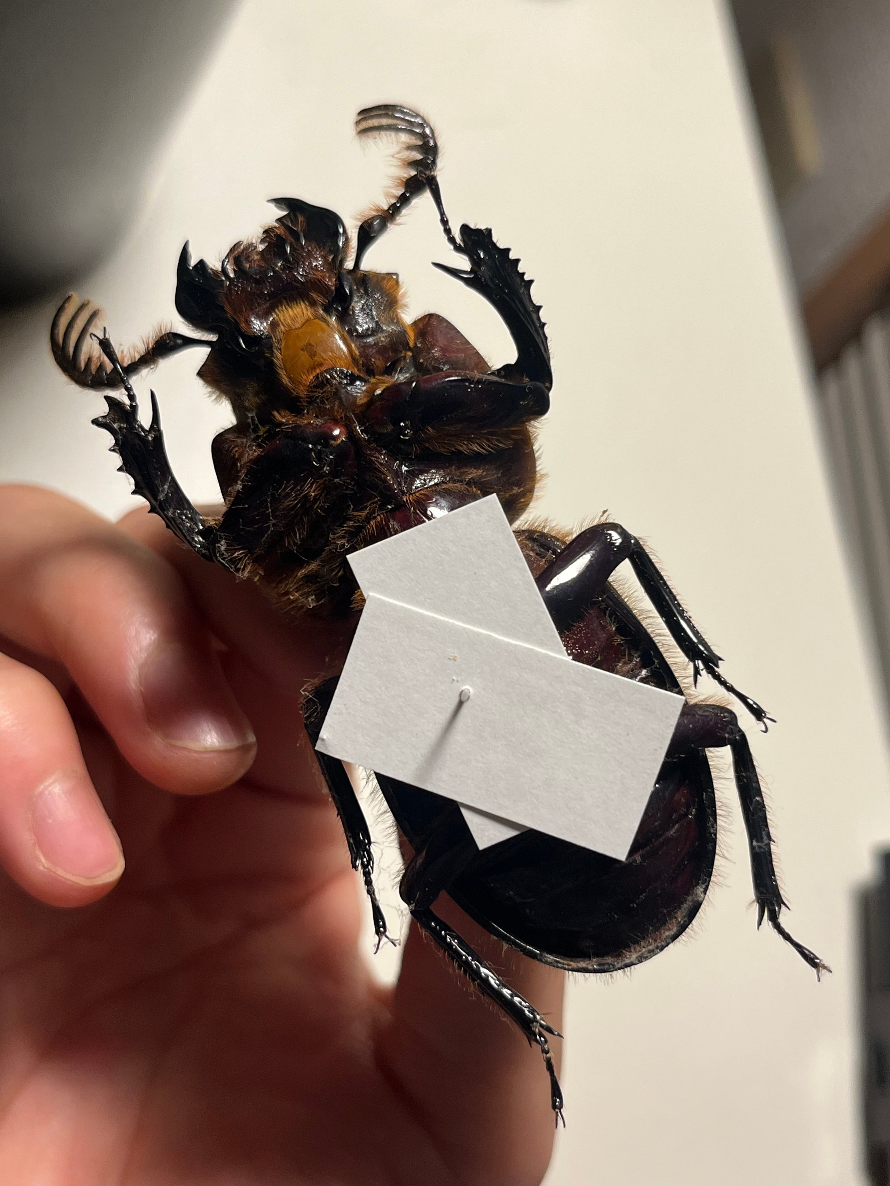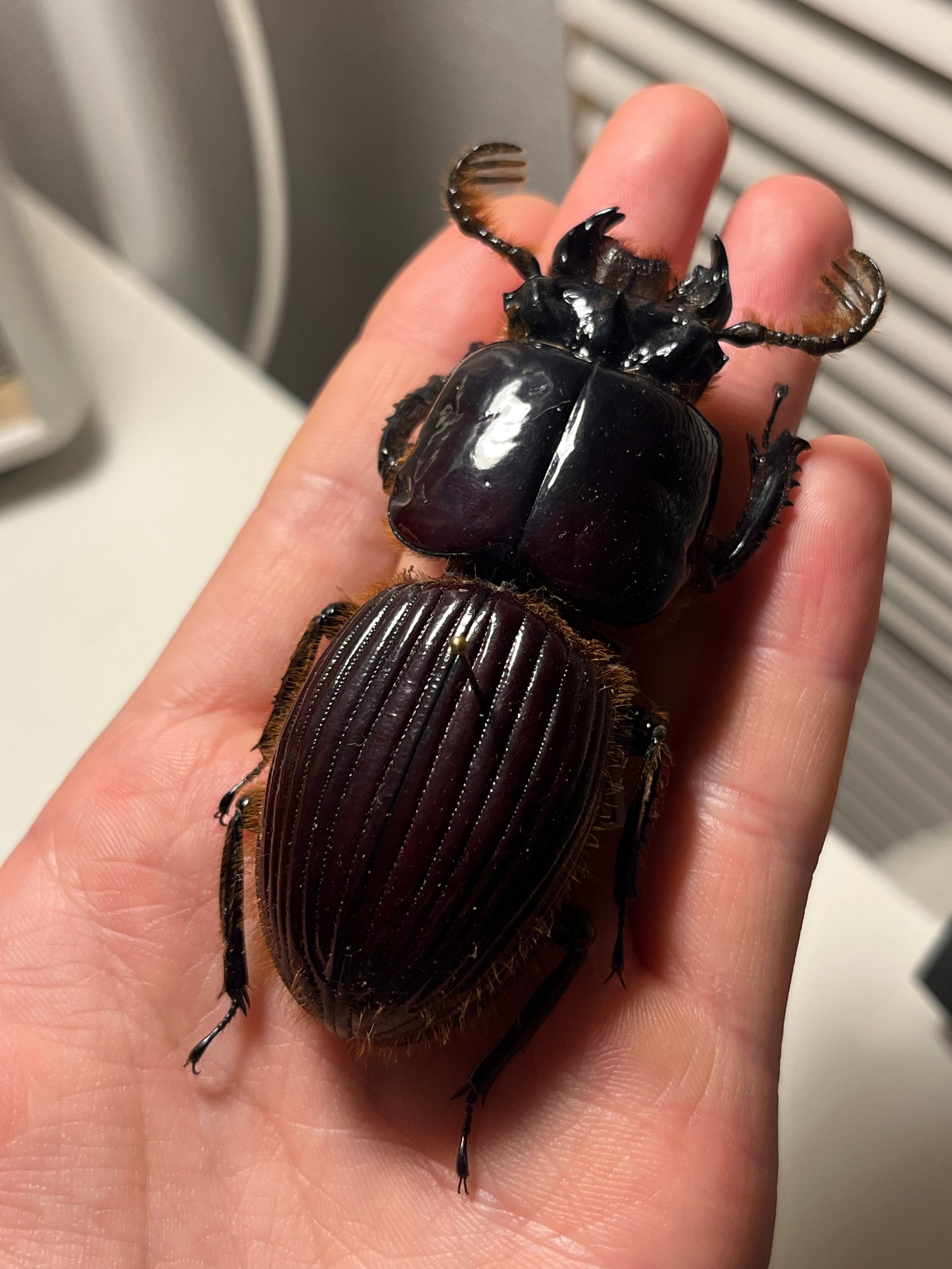 ツヤツヤなのでタランドゥスオオツヤクワガタやオーベンチュールクロツヤシカクワガタ好きにもおすすめです!オレンジ色の剛毛も生えているのでより迫力があります。