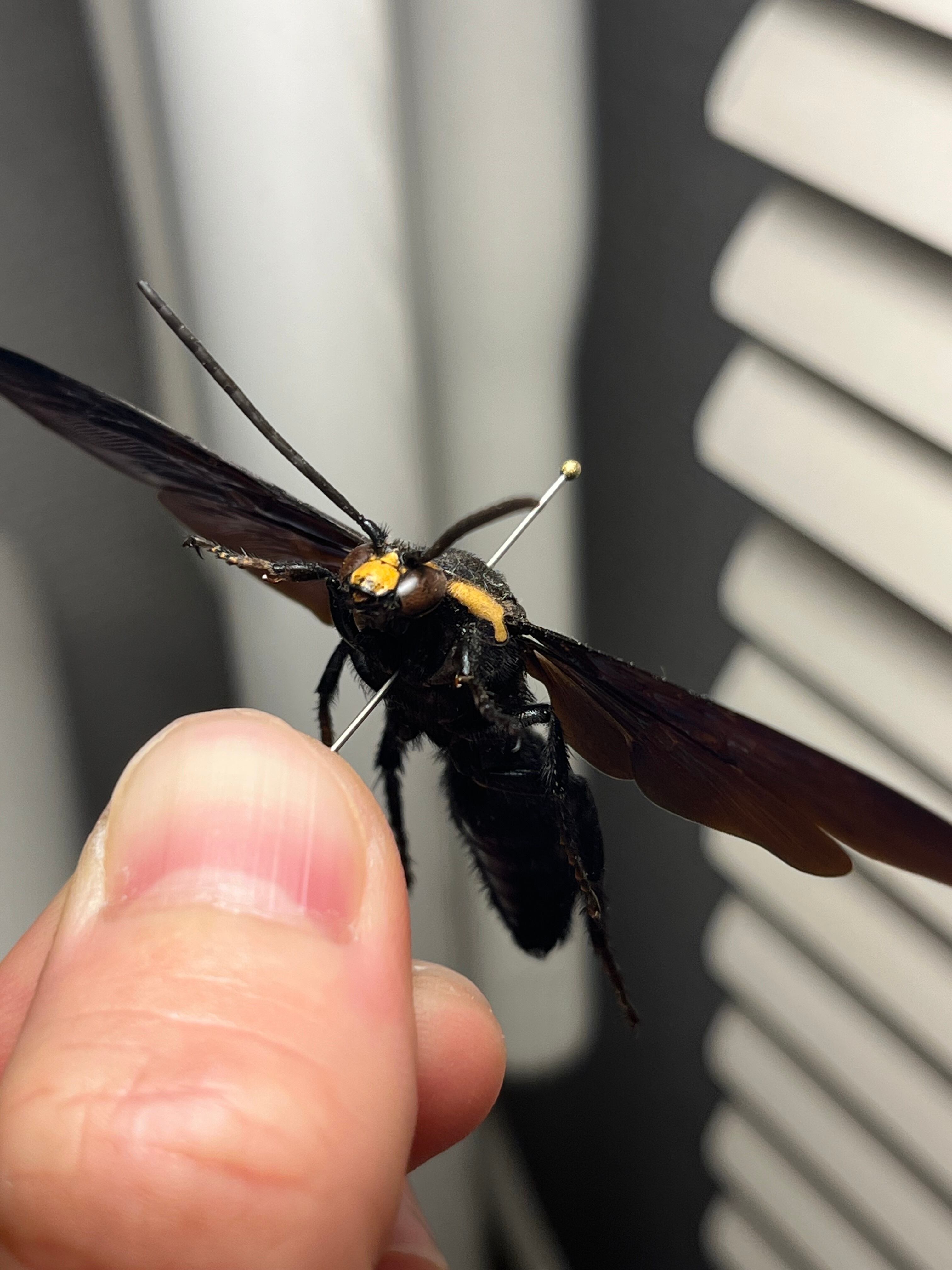 アジア全域に生息するコバチ科の単独生活性のハチです。翼開長は11.6cmで、世界最大級のハチの一つです。