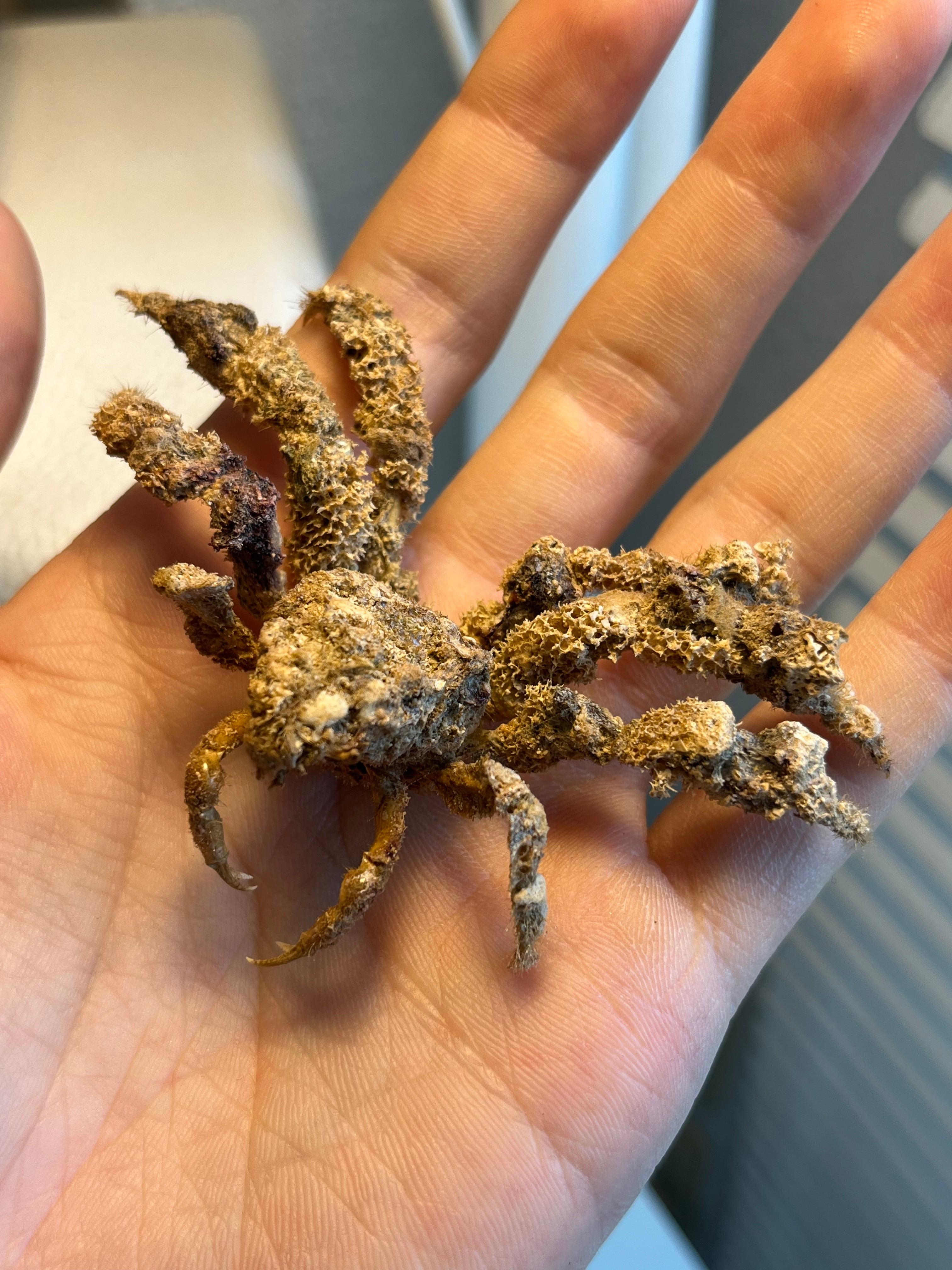 和名の通り、藻や屑を体に貼り付けカムフラージュしているカニです。