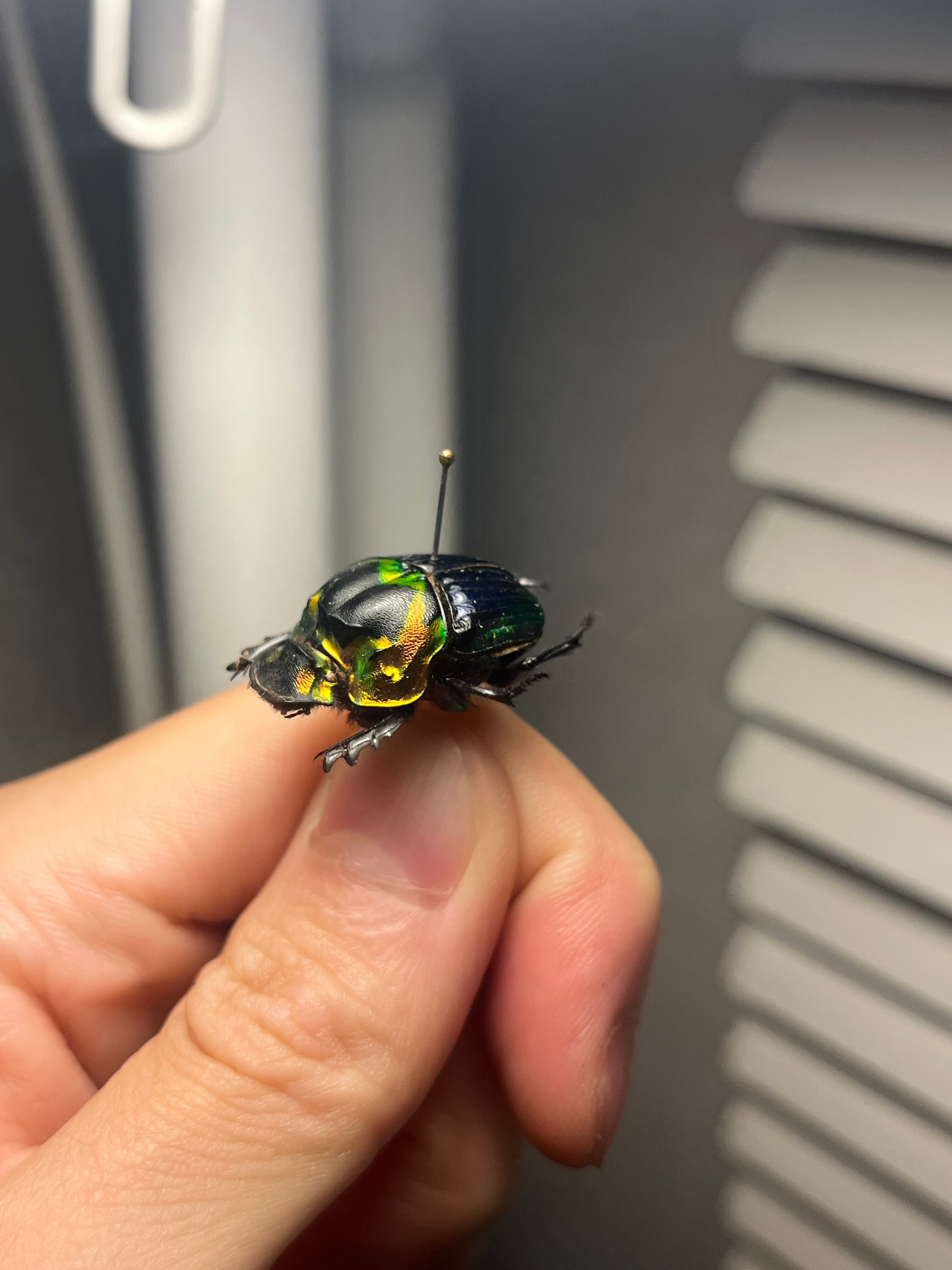 ニジダイコクコガネの仲間で最も艶やかな種になります。緑から黄色そして赤とグラデーションになってるのが大変美しいです。