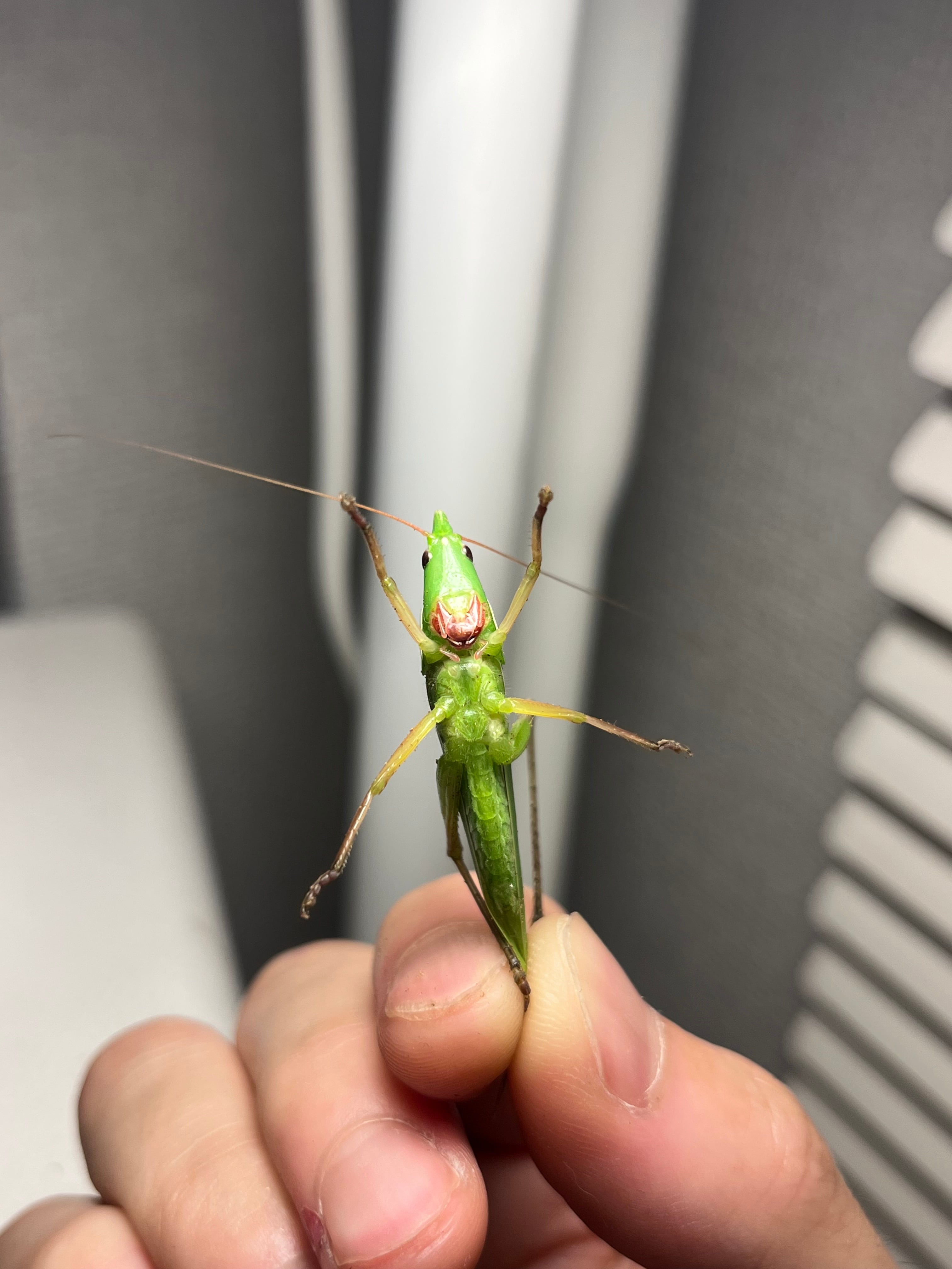 口元が真っ赤、大顎が強大に発達しているのでクビキリギリスかと思います。