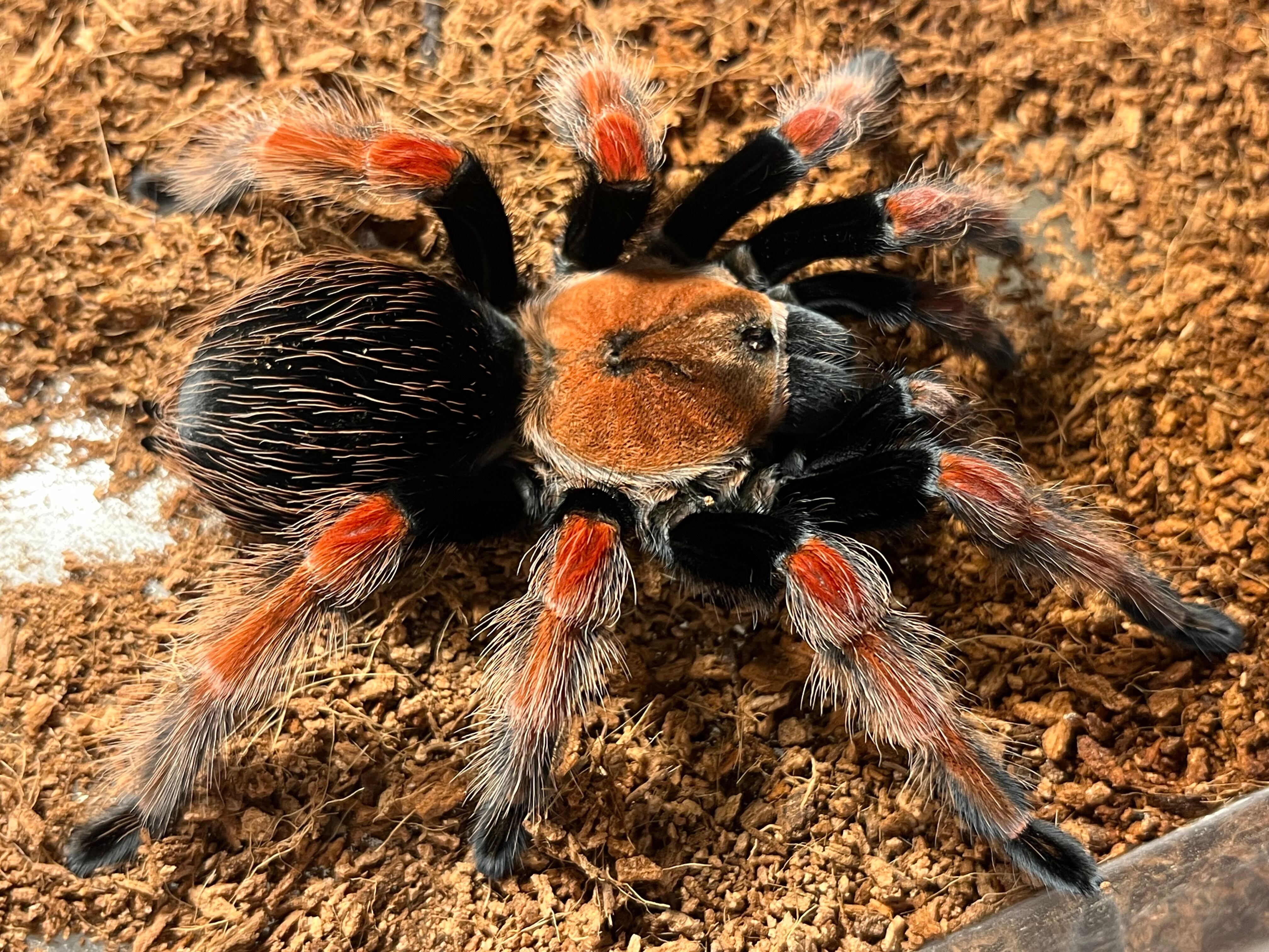色々なオレンジ色のタランチュラがいますが最も朱色に近いオレンジで非常に発色がいいタランチュラなのでおすすめです!