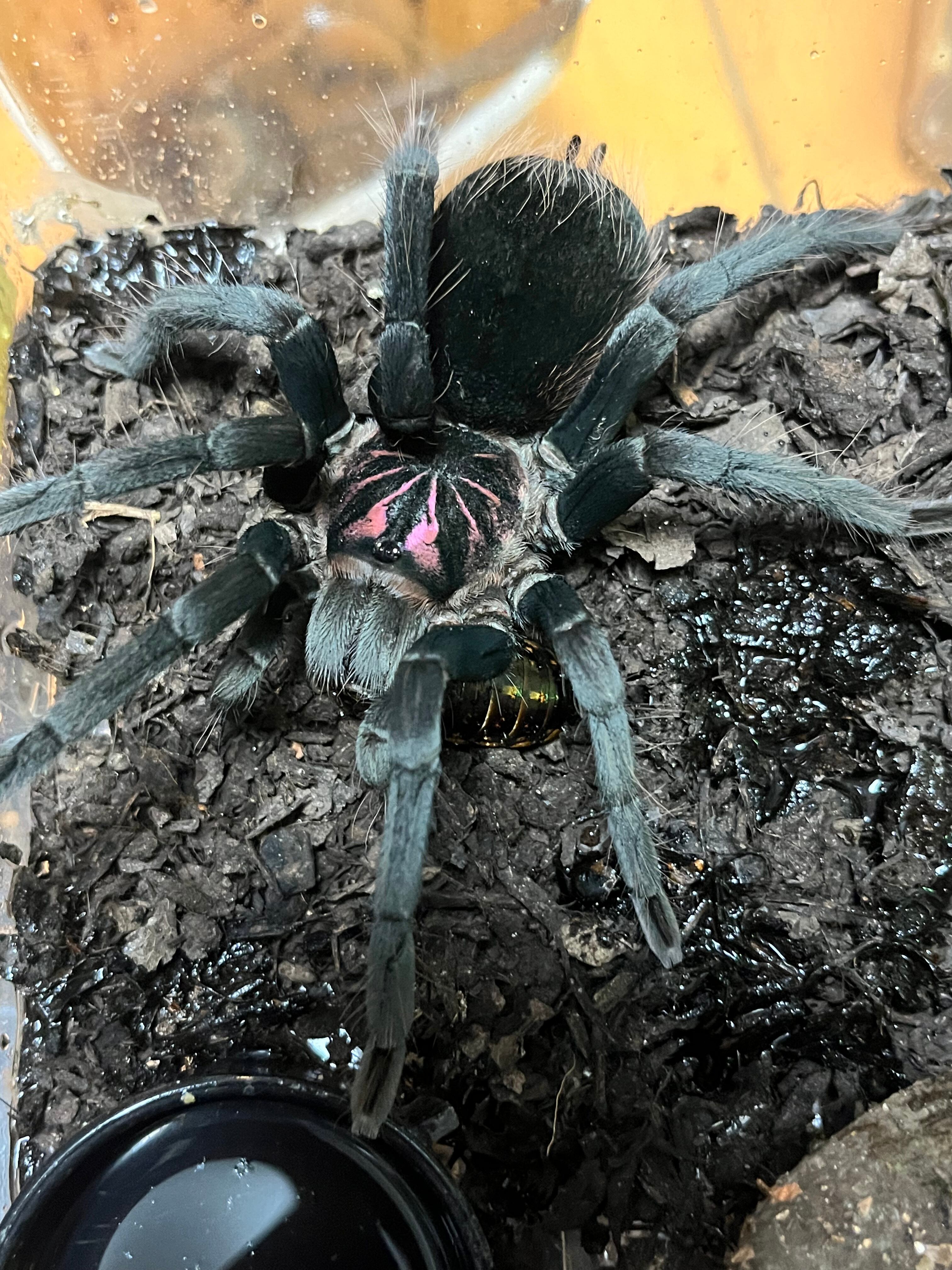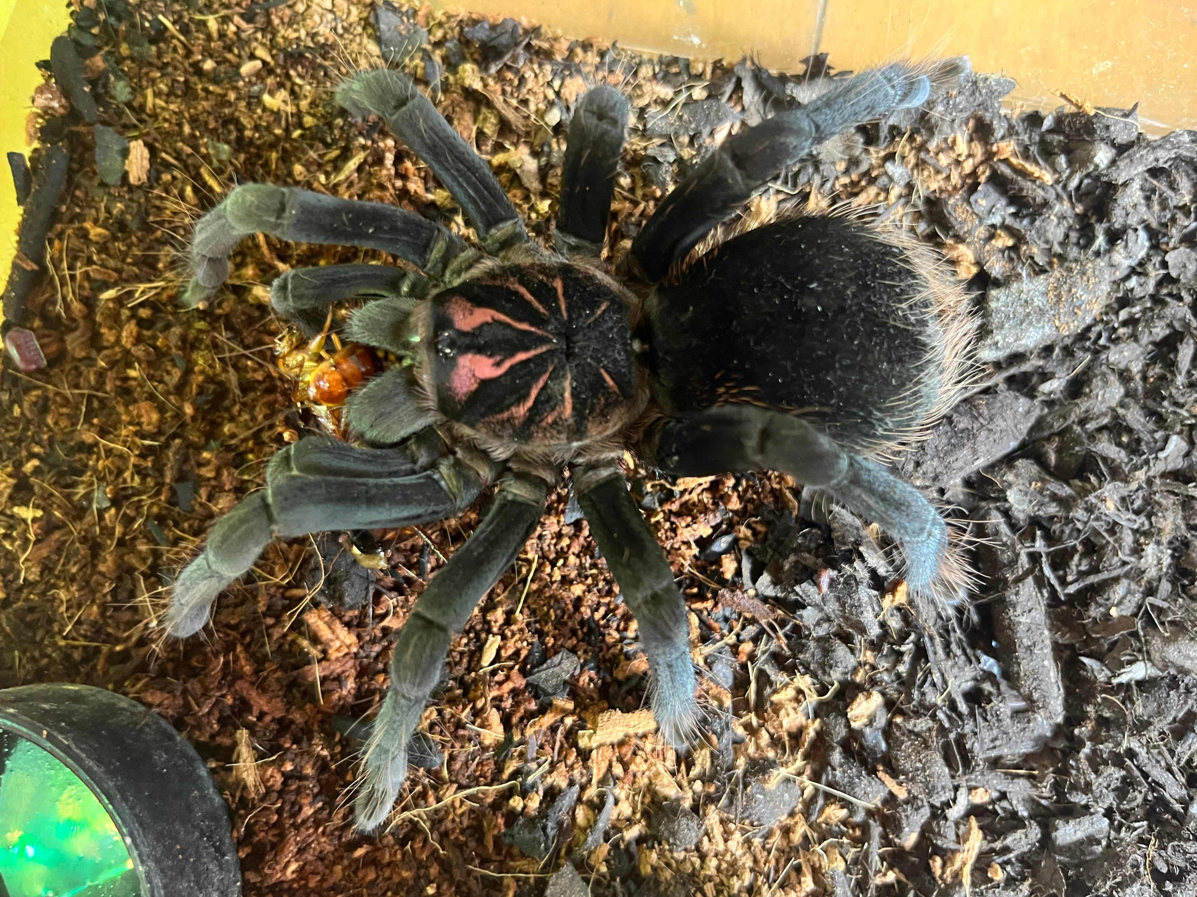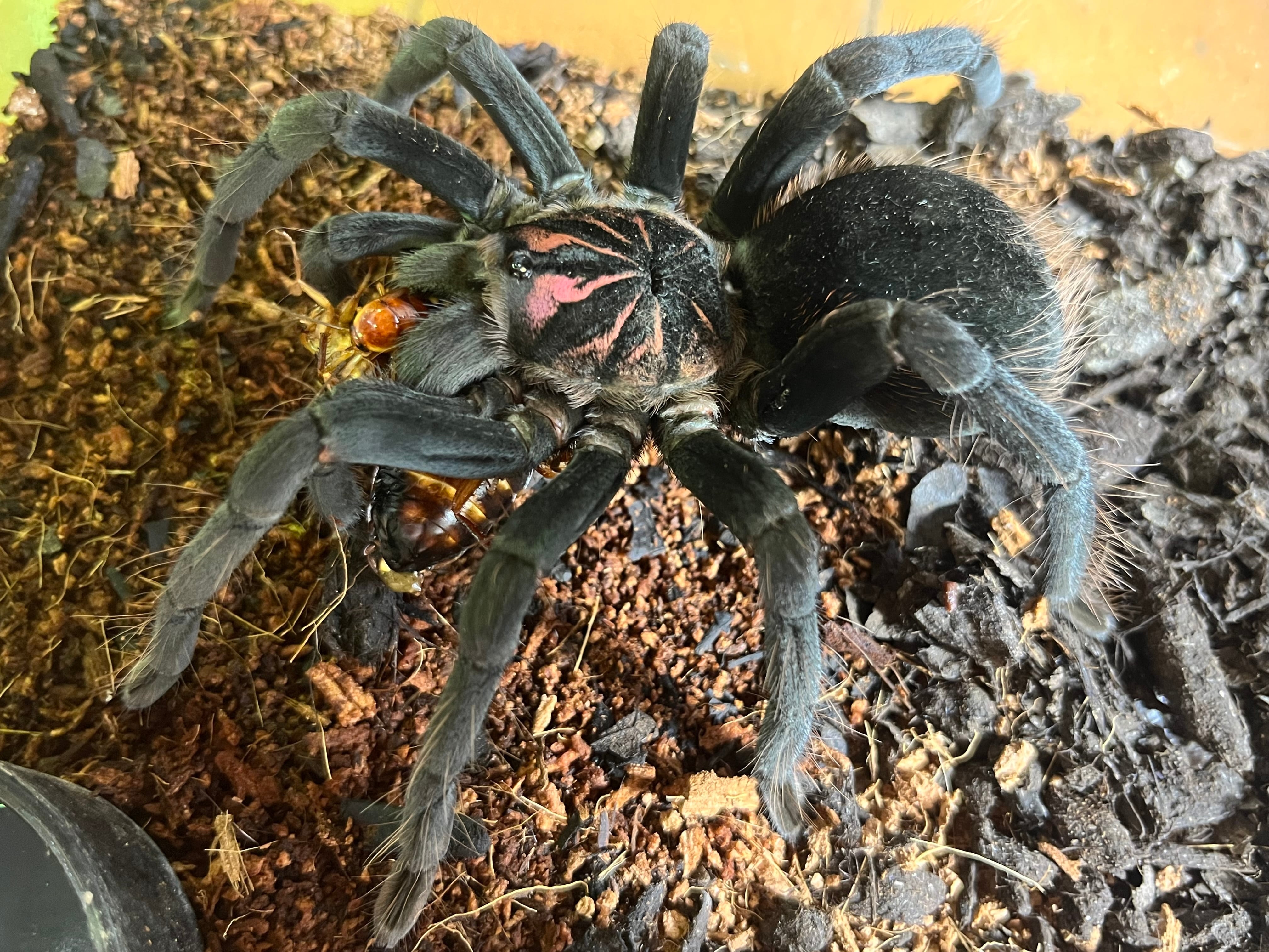 申し訳ありませんが輸送に伴うグレードダウン及び死着保証はございませんのでご了承願います。画像の交接済♀+まだ性成熟していない♂でお送りします。 ♀は4/26,8/19、に脱皮しています。 交接済の♂は噛まれて死んでおります。パンフォベテウス属やゼネスティス属は脱皮する度容姿が変わっていきますので脱皮するにつれお尻がつるりとするとおもいます。 LS23cmくらいまでいくポテンシャルがあります。 成体を見たことありますがかなりでかかったです。Xenesthisの中で1番餌喰いがよくデュビア成体を2匹一気に食べています。