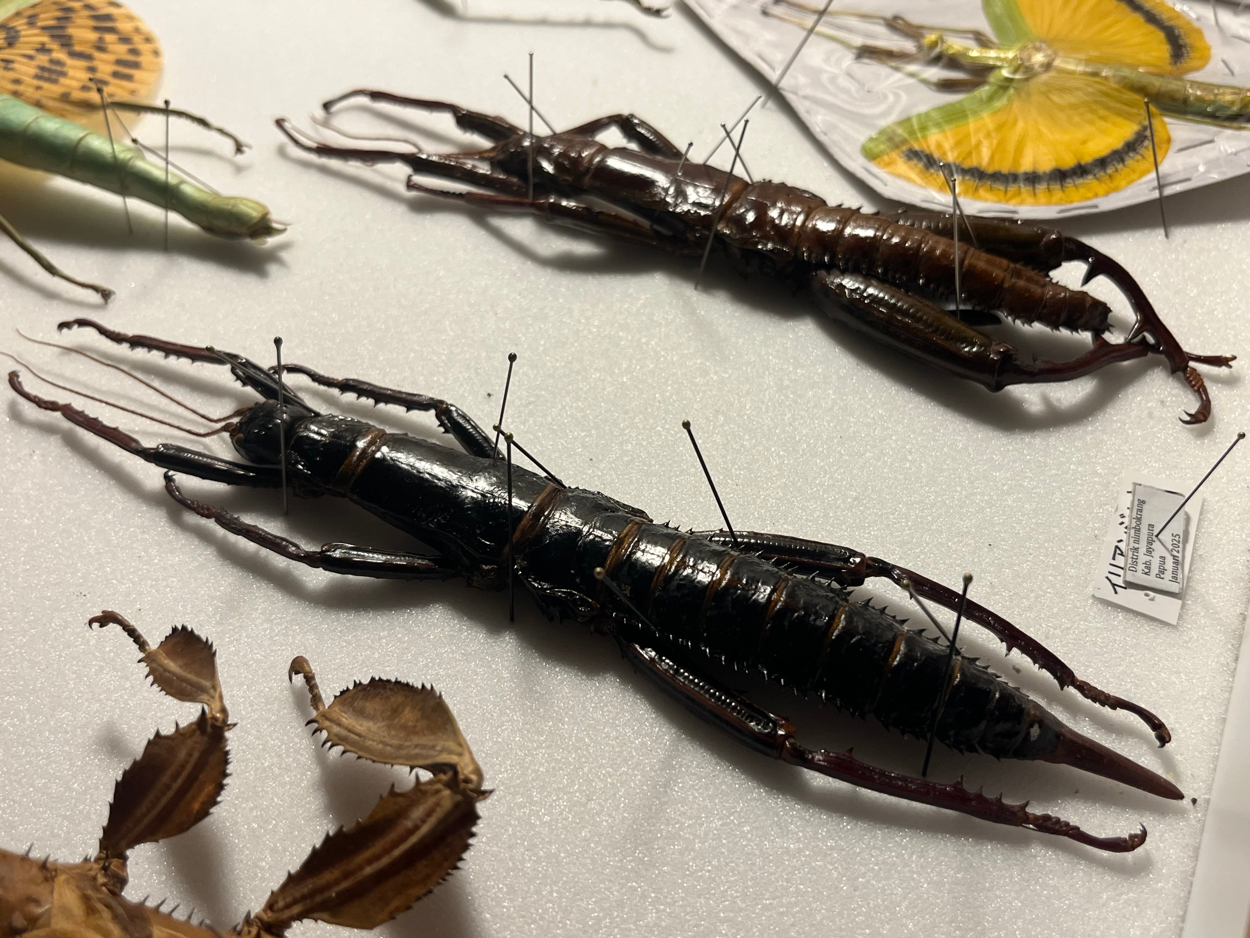 1925年に一旦絶滅したとされるも、2001年に再発見された「最も希少な昆虫」とされるロードハウナナフシに似ているオバケフトナナフシです。