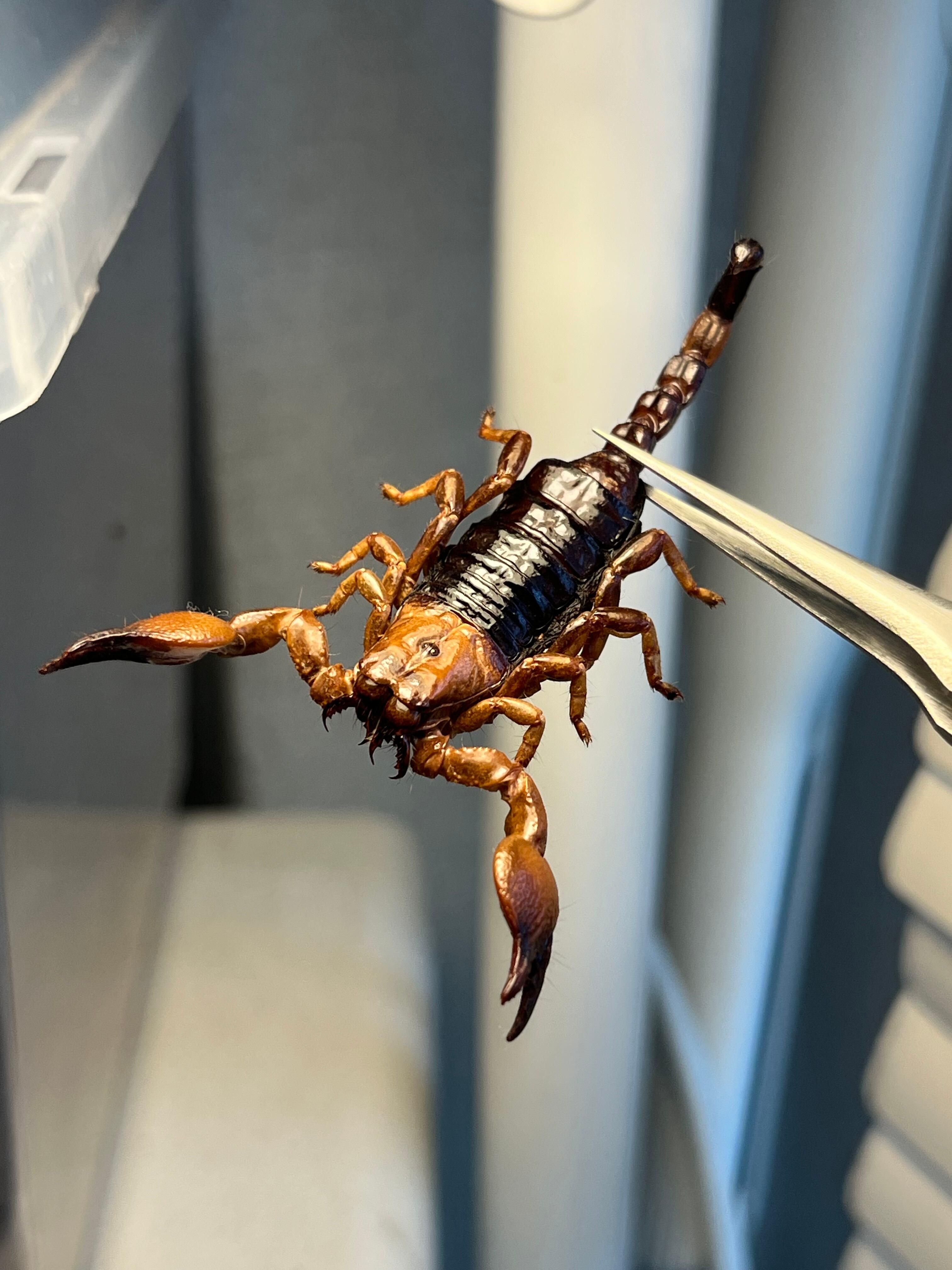 レッドクロースコーピオンのように赤い腕が特徴的なサソリです。