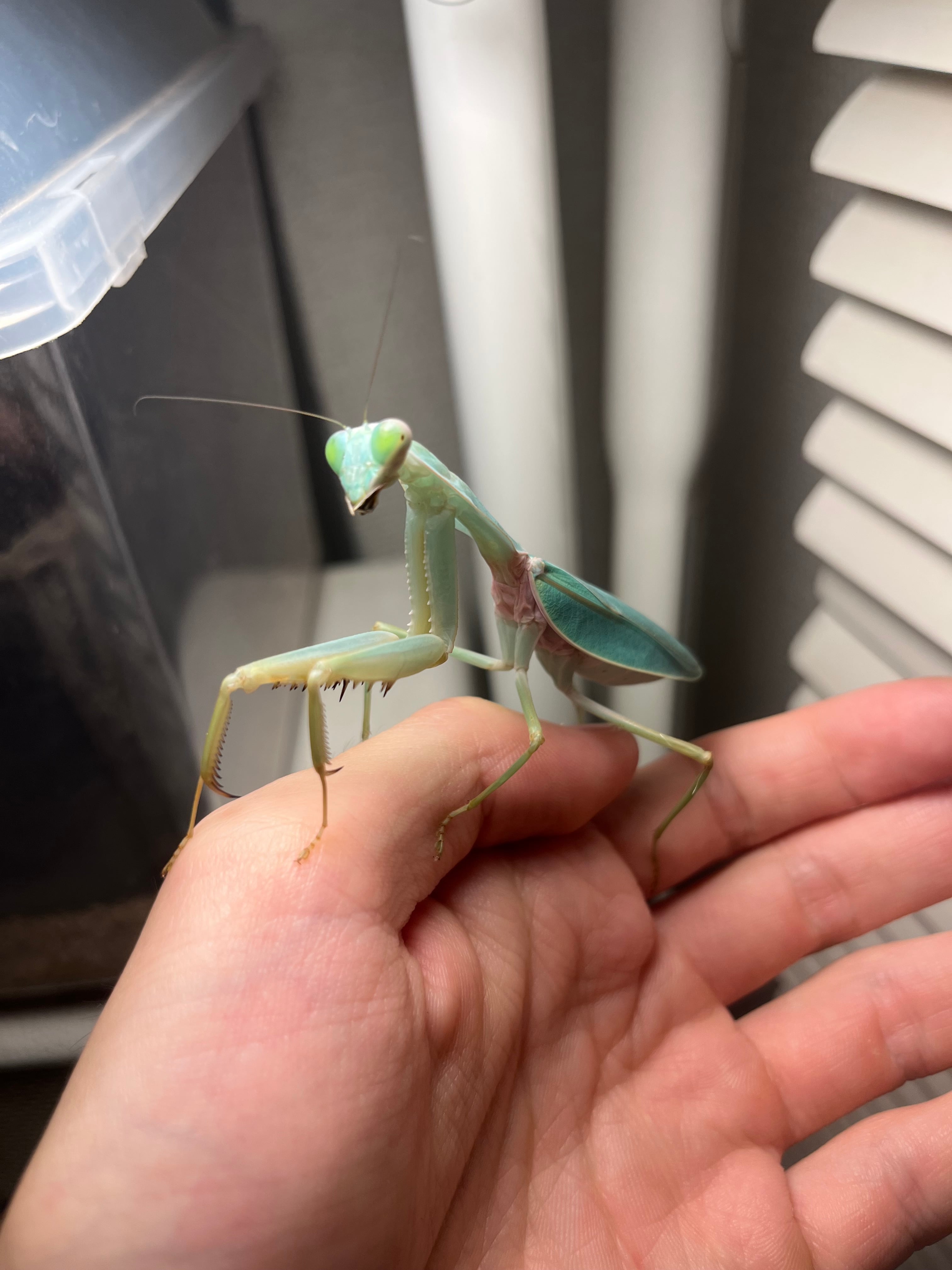 画像個体の♀成体を配送します。9/24に羽化しています。
