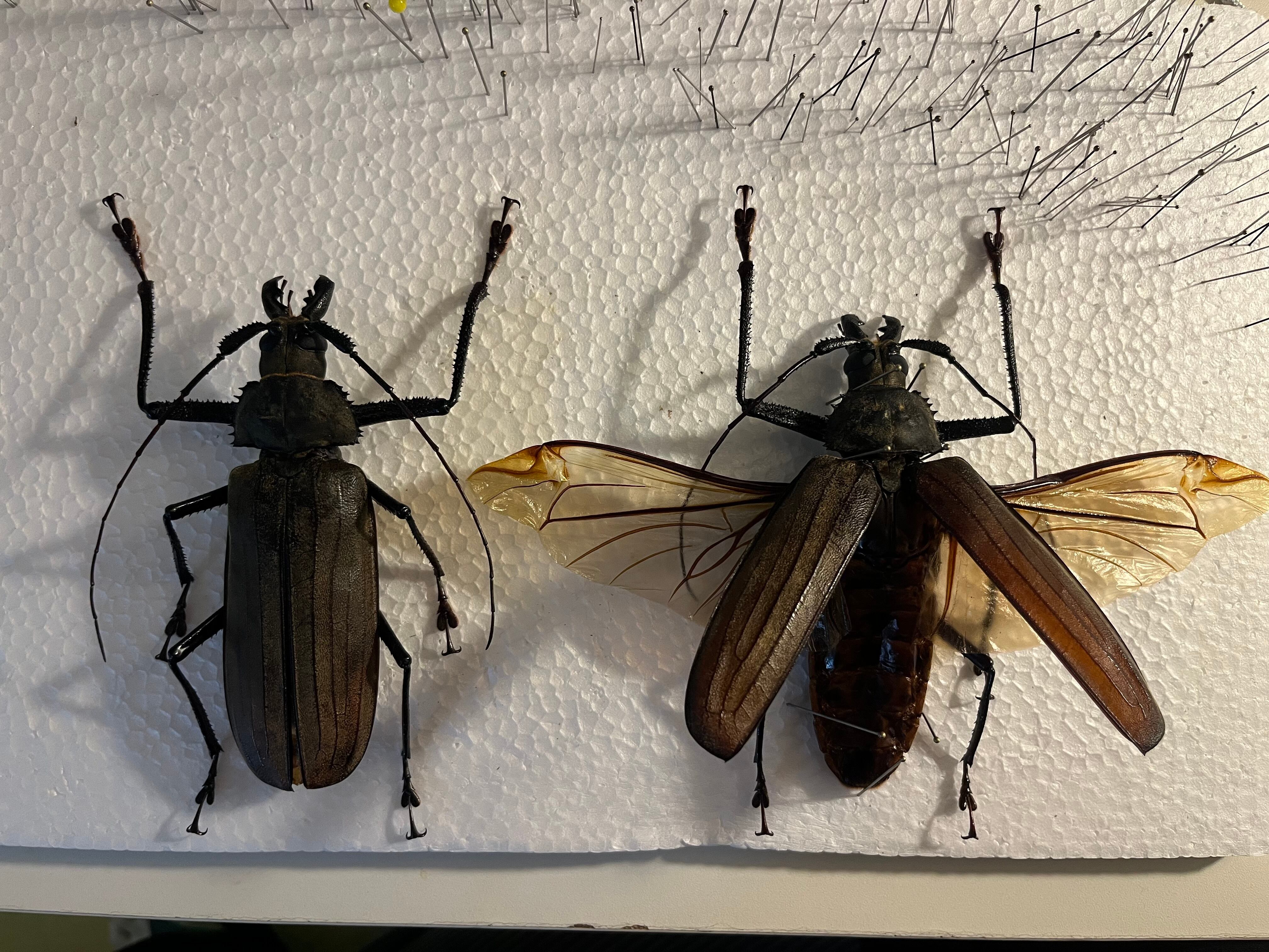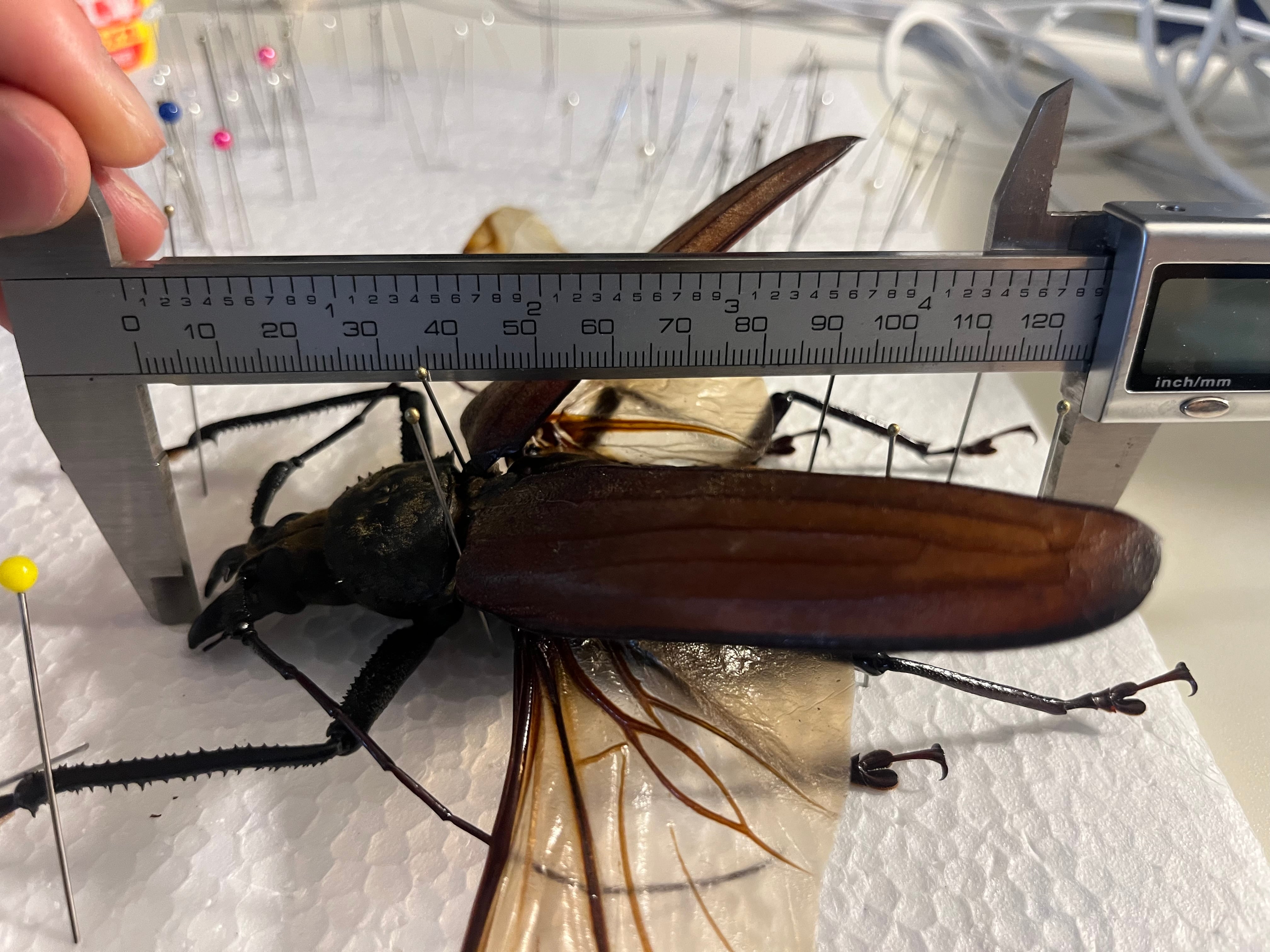 【開翅125mm】スジバネトゲフチオオウスバカミキリ ブルウスバカミキリ Xixuthrus 標本 昆虫標本 甲虫 セスジオオウスバカミキリ クワガタ