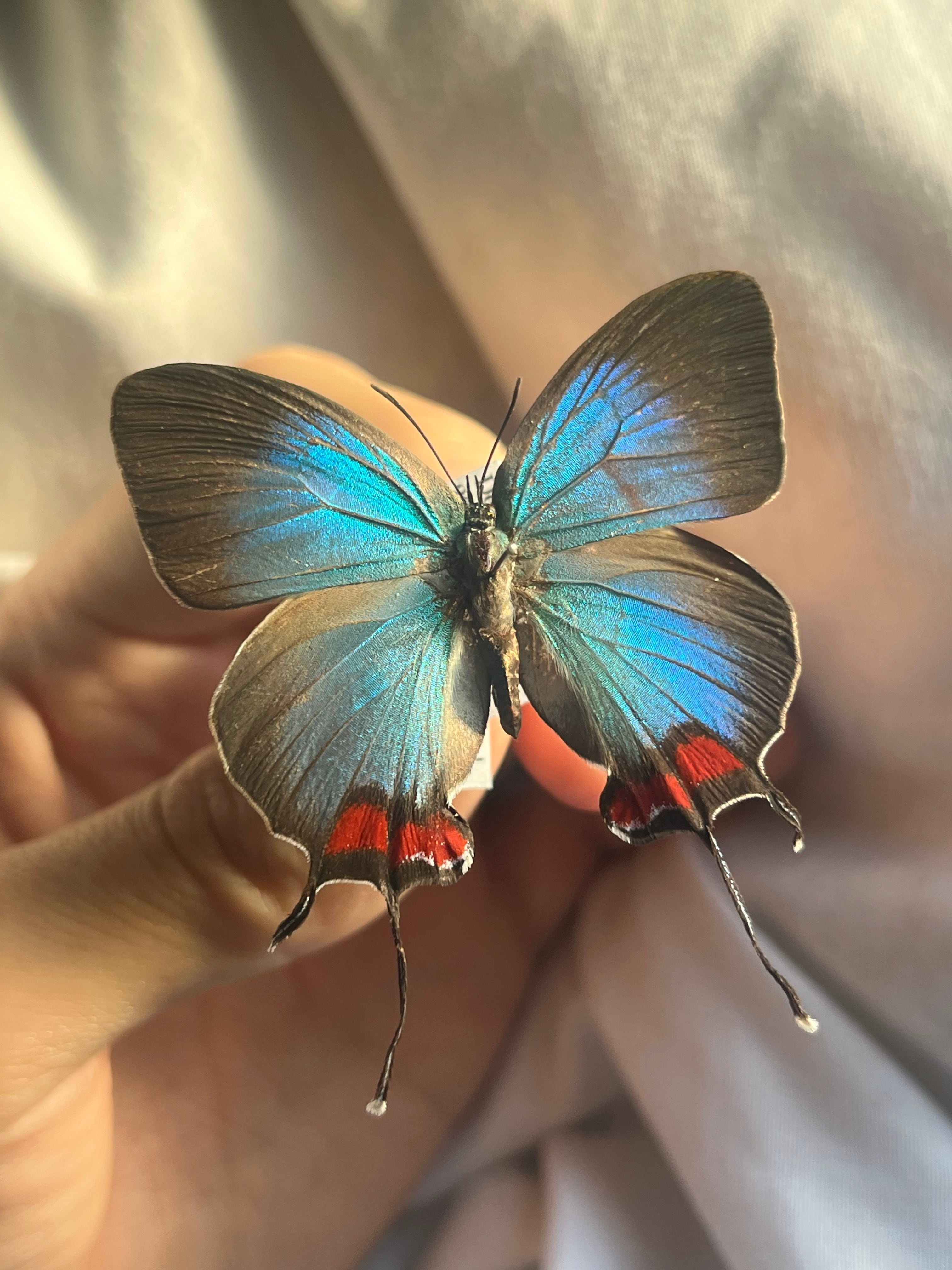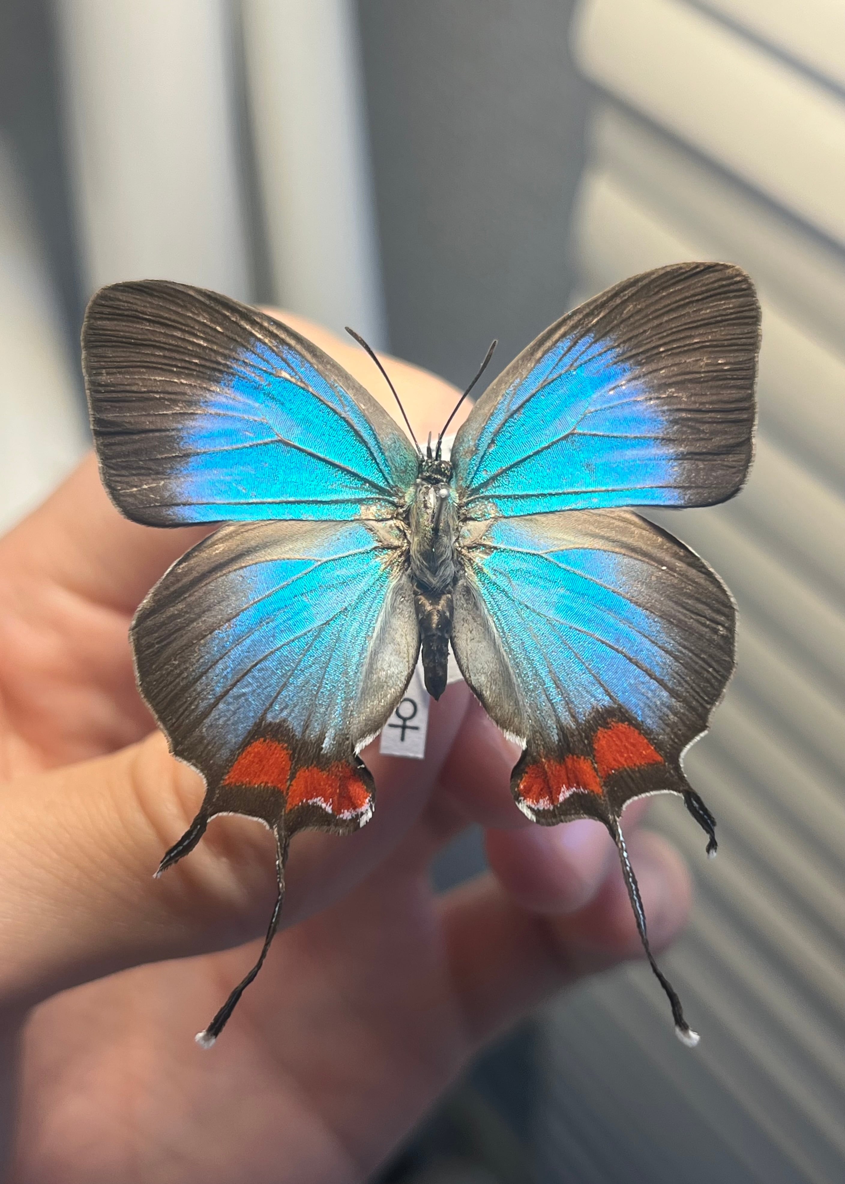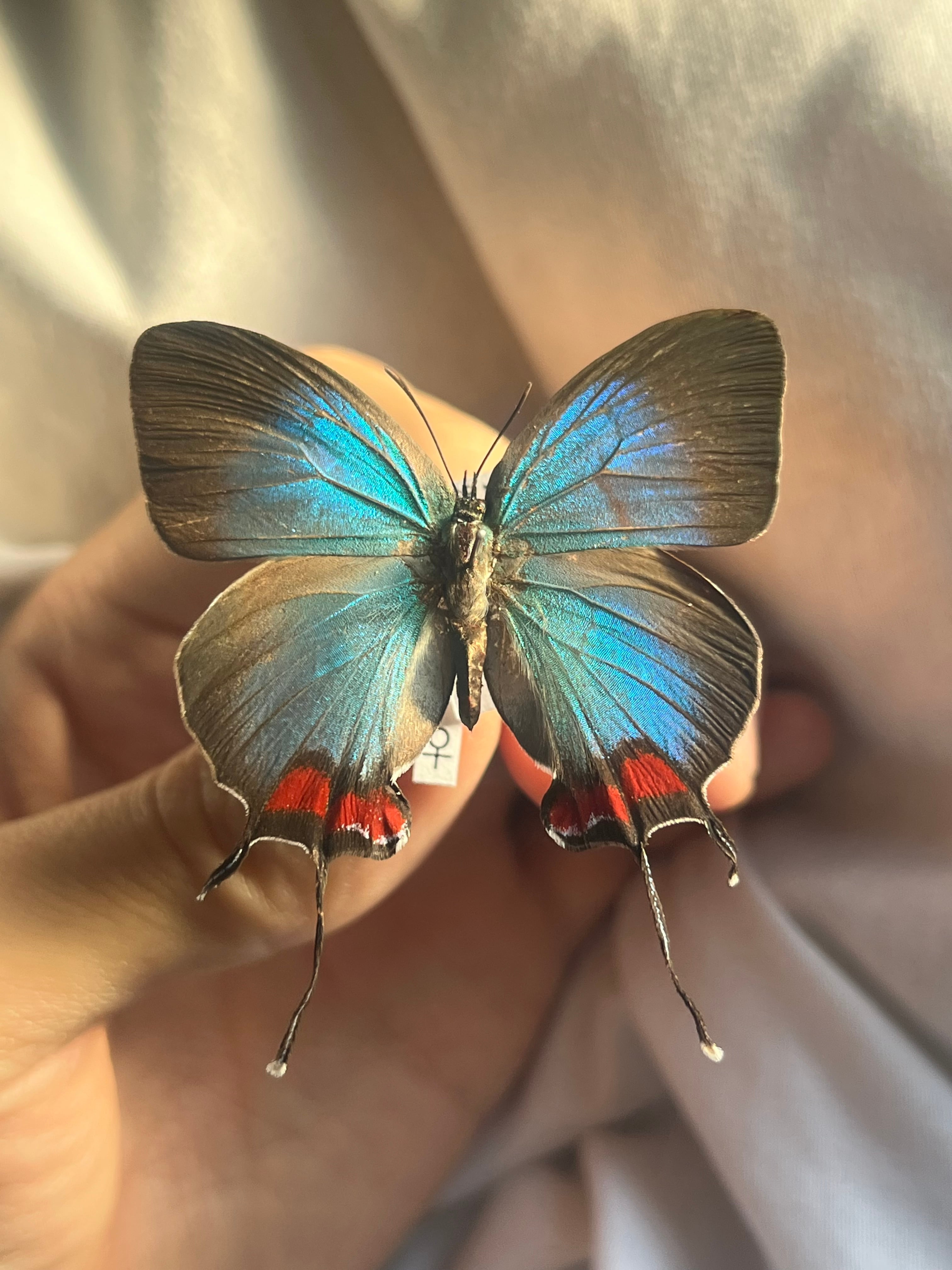 【♀】オオウラミドリシジミ オオクジャクシジミ モルフォチョウ モルフォ蝶 アゲハチョウ 蛾ピカソモスモルフォチョウMorpho昆虫標本