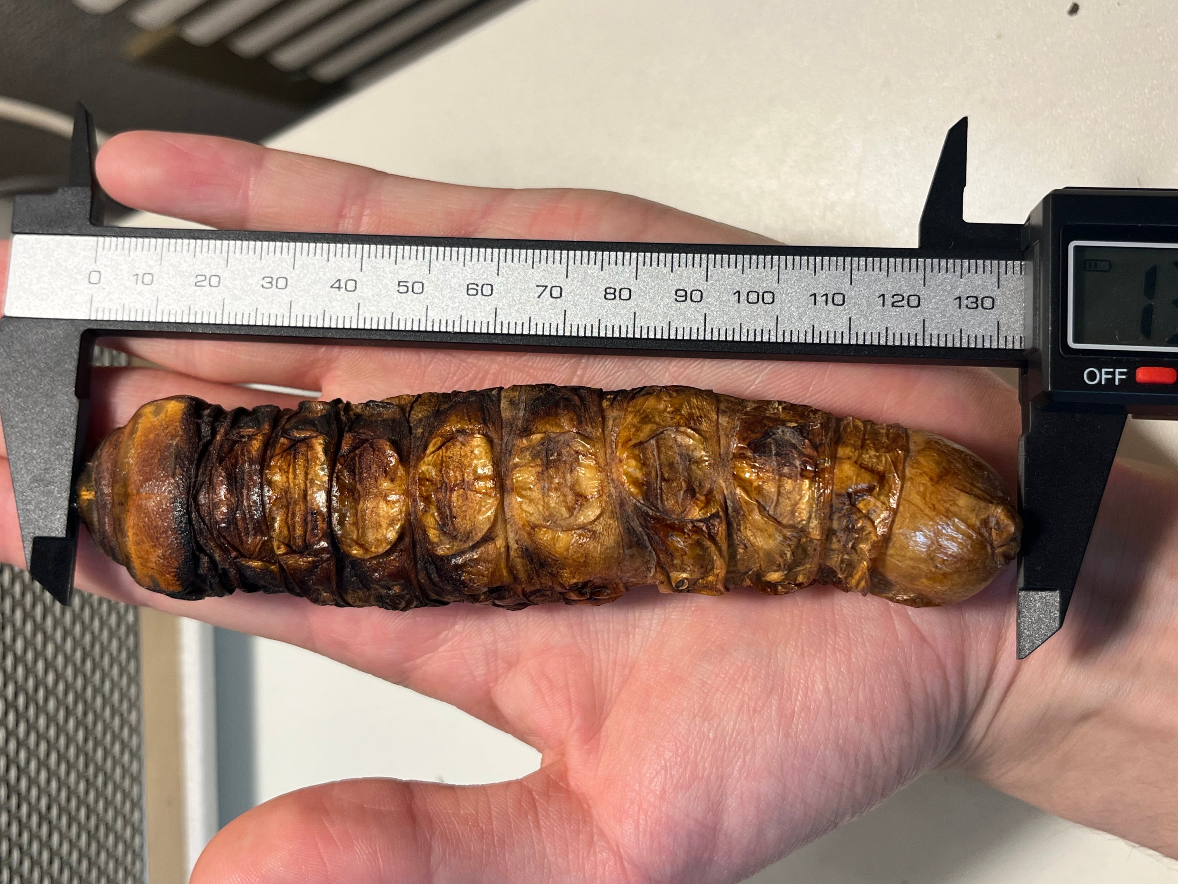 私が計測したところ頭胴長で133mmでした。