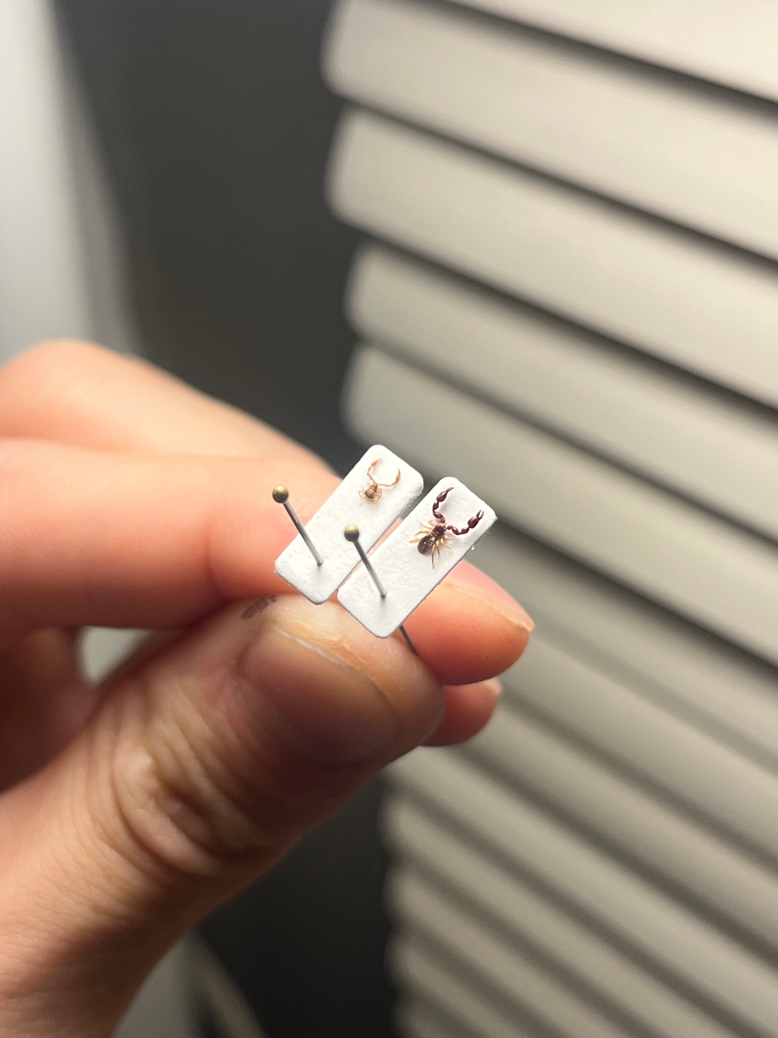 申し訳ありませんが輸送に伴うグレードダウン保証はございませんのでご了承願います。2匹のカニムシ標本をお送りします。