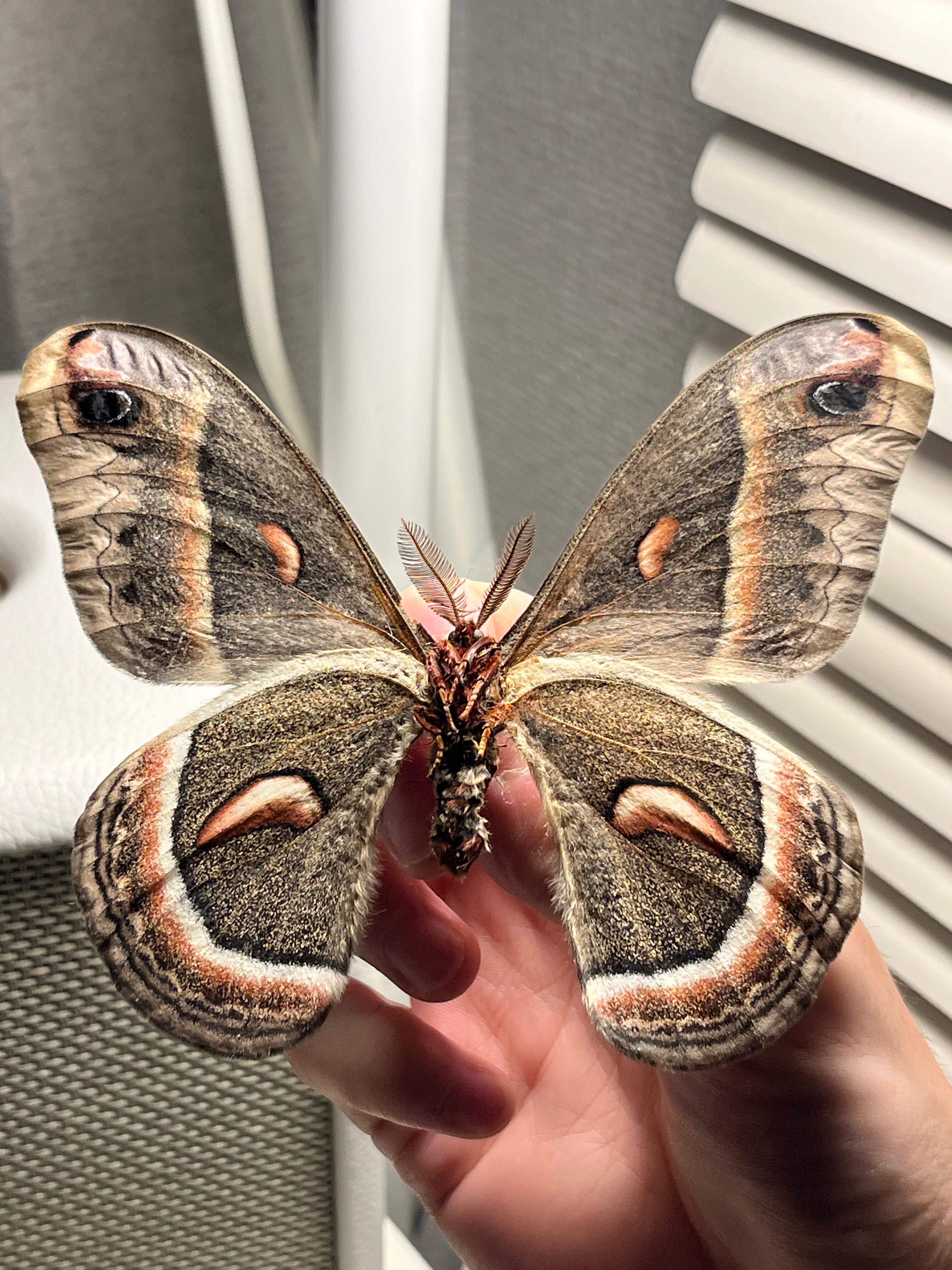 Hyalophora cecropiaは、北米最大の在来種の蛾です。ヤママユガ科(Saturniidae)に属し、雌の翼開長は13~18cm以上であることが記録されています。この蛾は主に北米東部全域に生息し、西はワシントン州、北はカナダのほとんどの州にまで分布しています。セクロピアガの幼虫はカエデで最もよく見られますが、サクラやシラカバなど、他の多くの樹木にも見られます。この種は、カール・リンネが1758年に著した『自然の体系』第10版で初めて記載されました。
