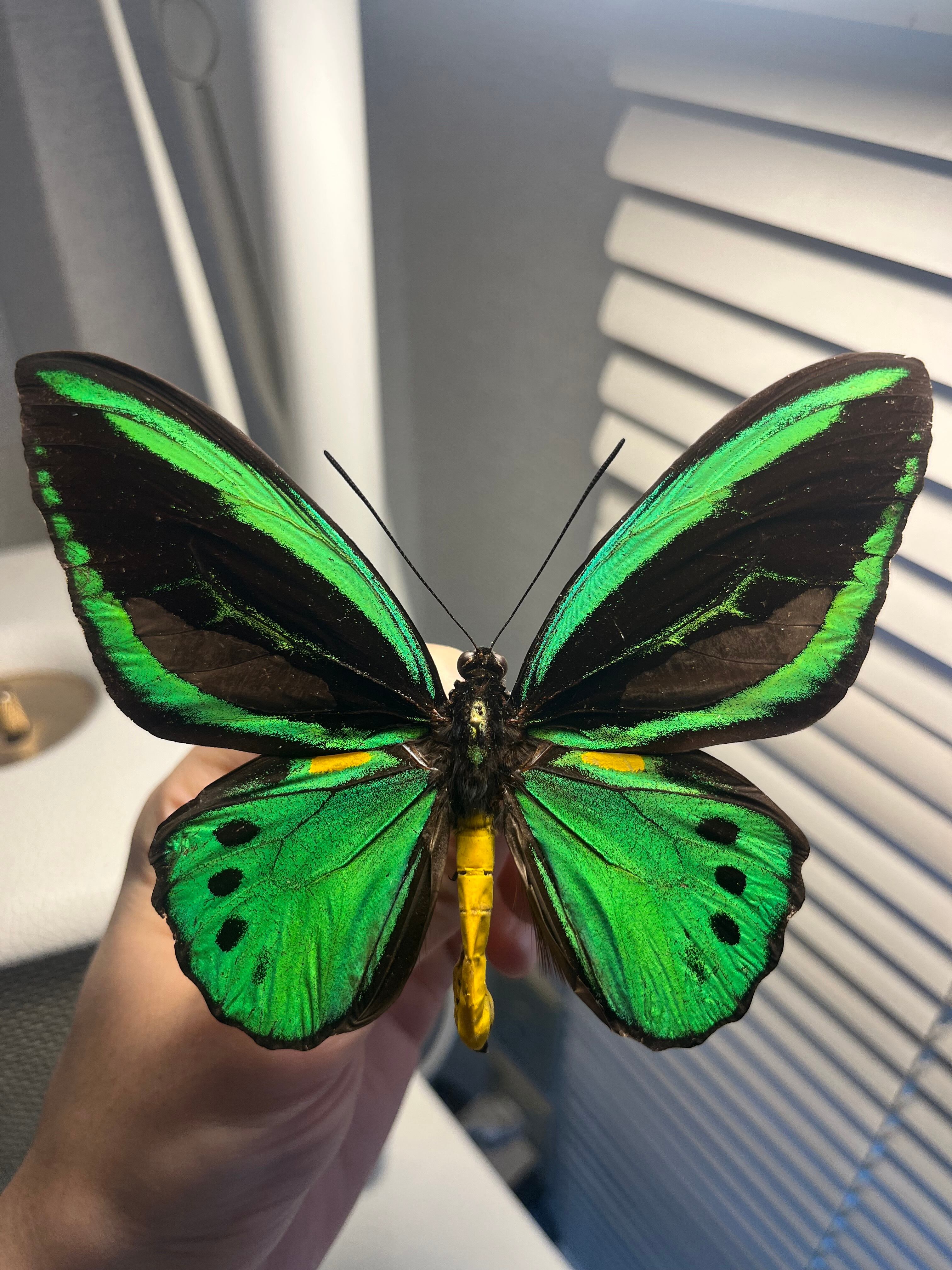 ミドリメガネトリバネアゲハ 展翅標本 外国産蝶標本 標本 蝶 採集品 アカエリトリバネアゲハ モルフォ蝶 タランチュラムカデサソリ