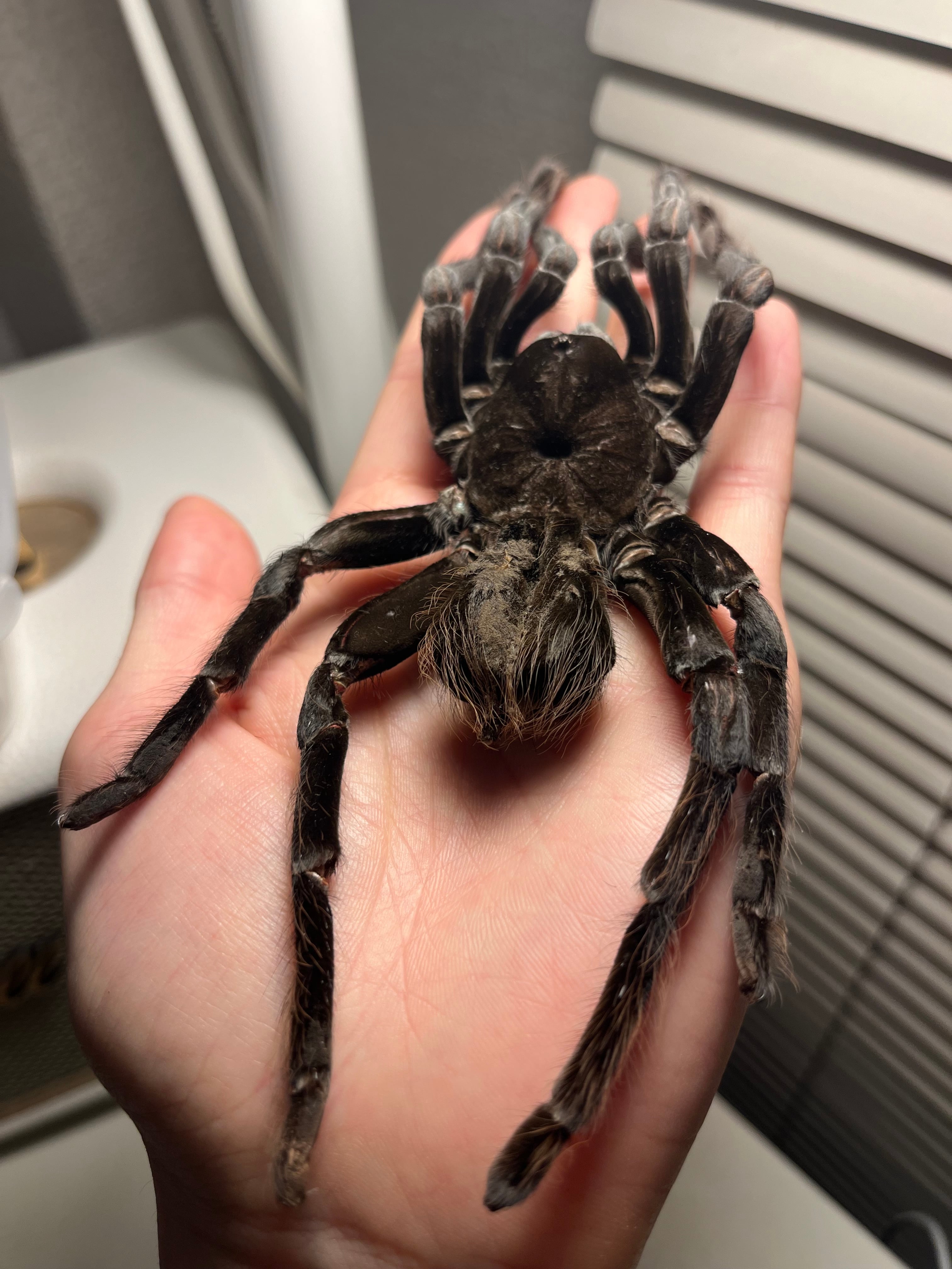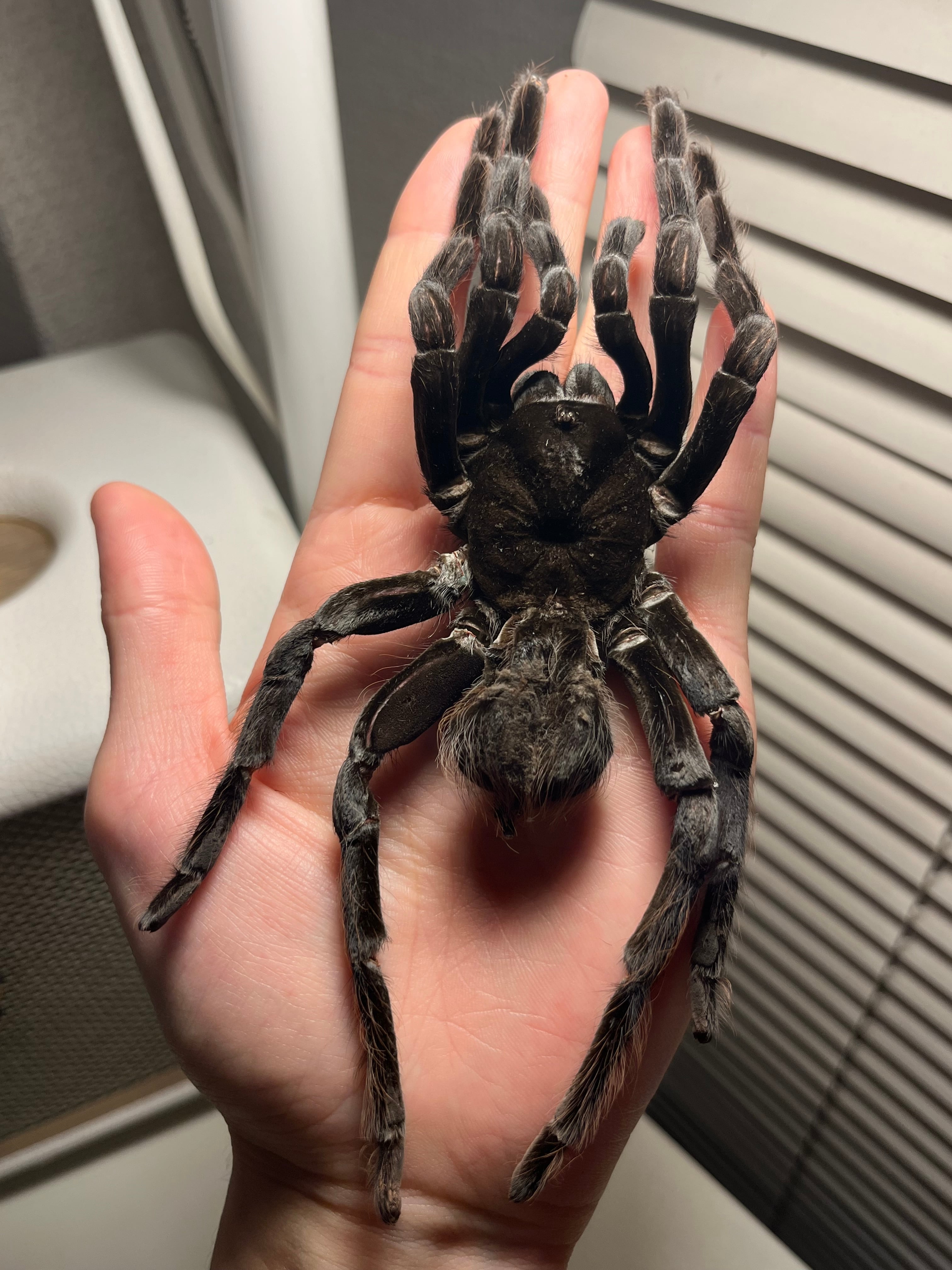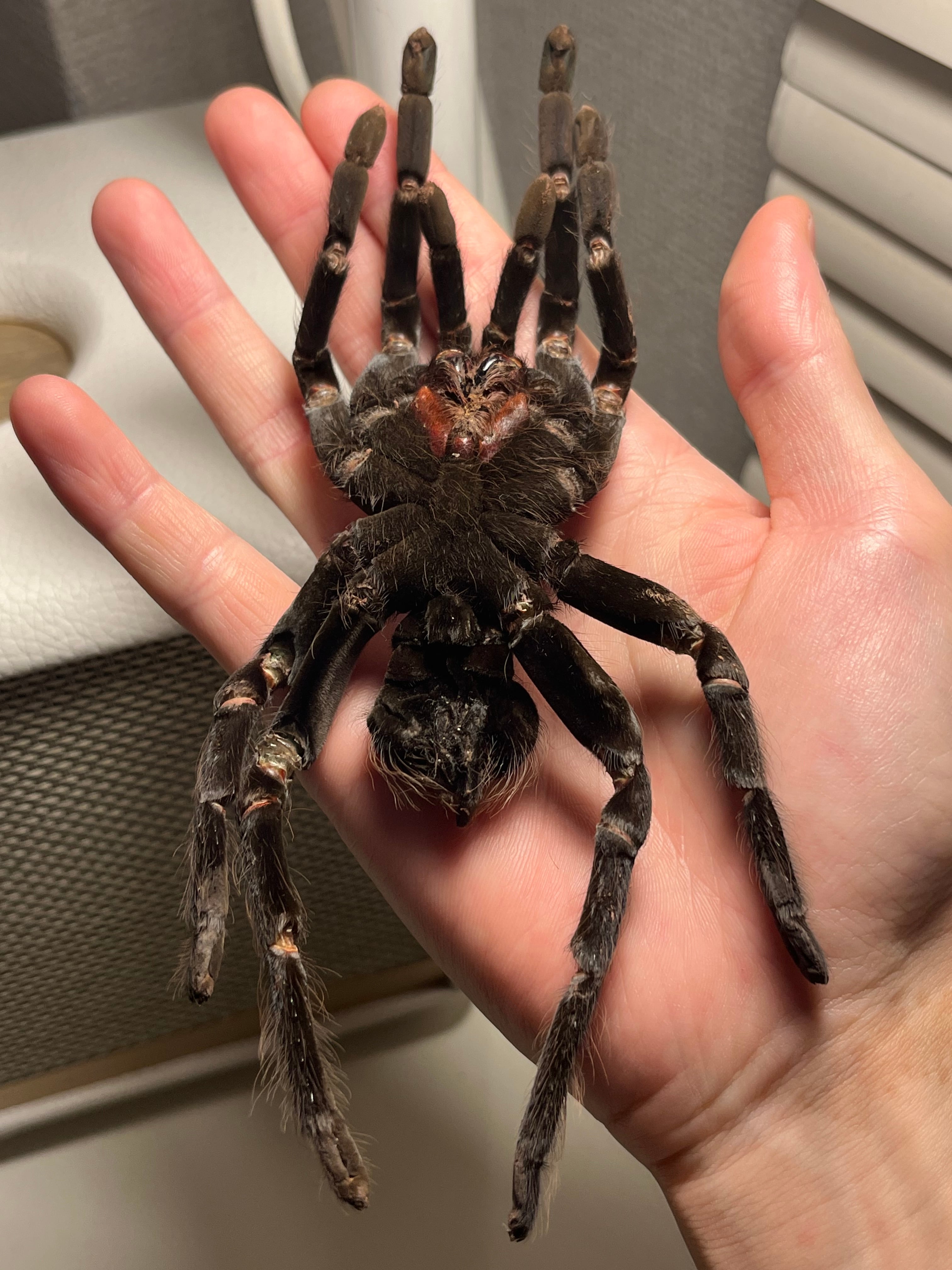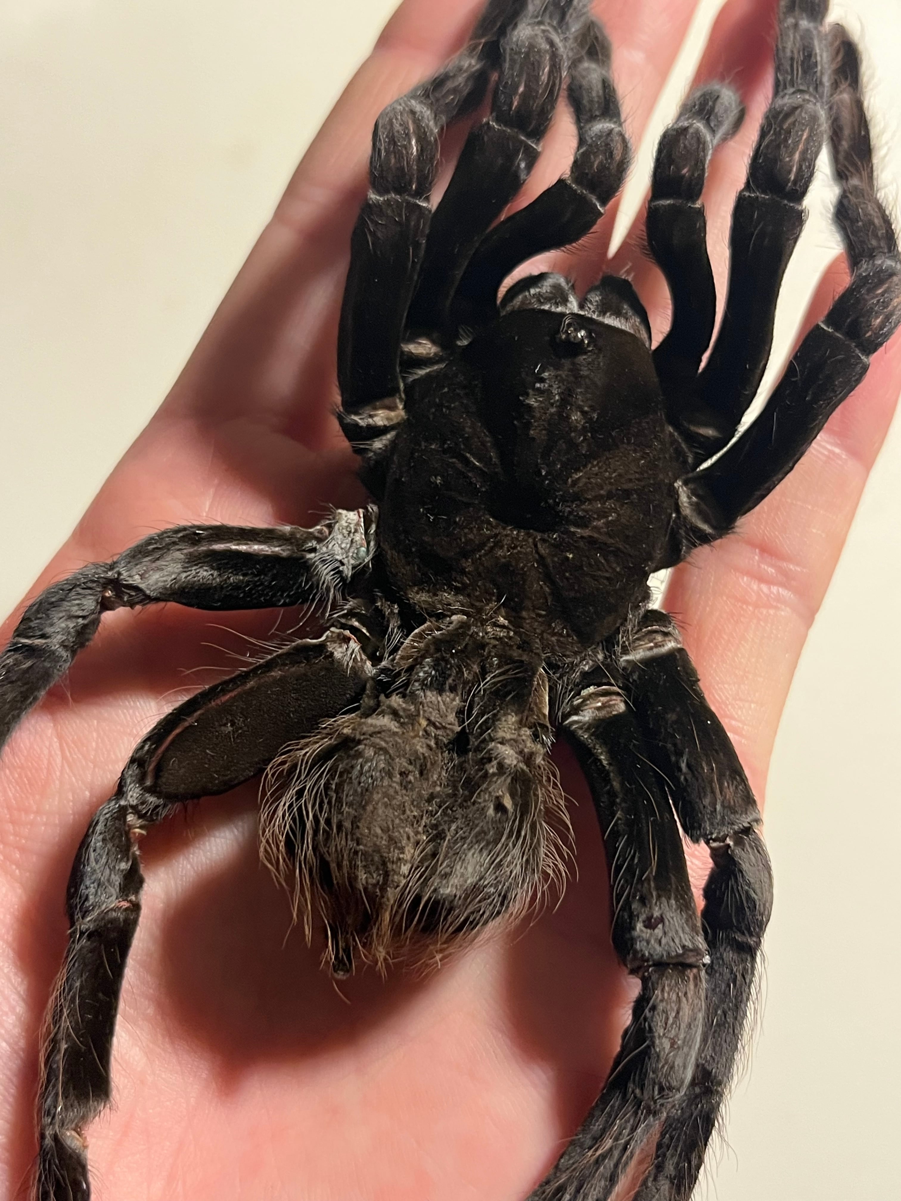 ♂は足が青くなり、♀は真っ黒になるタランチュラです。