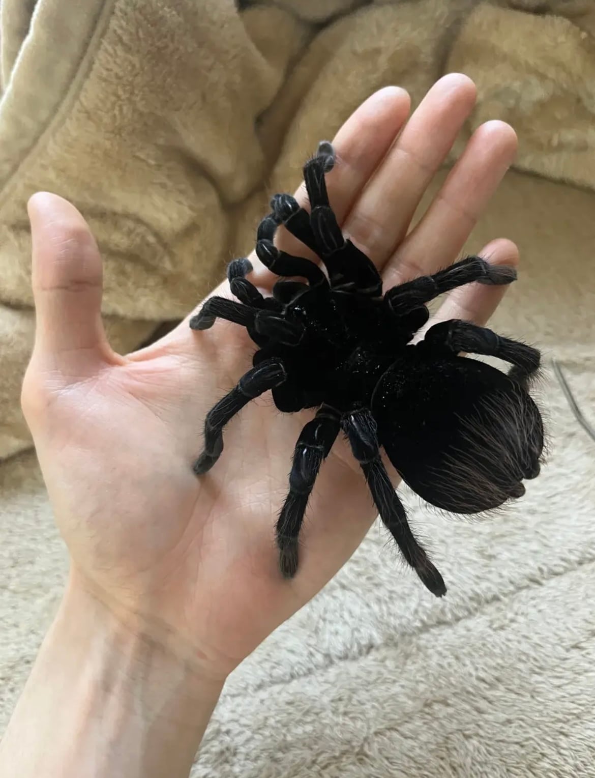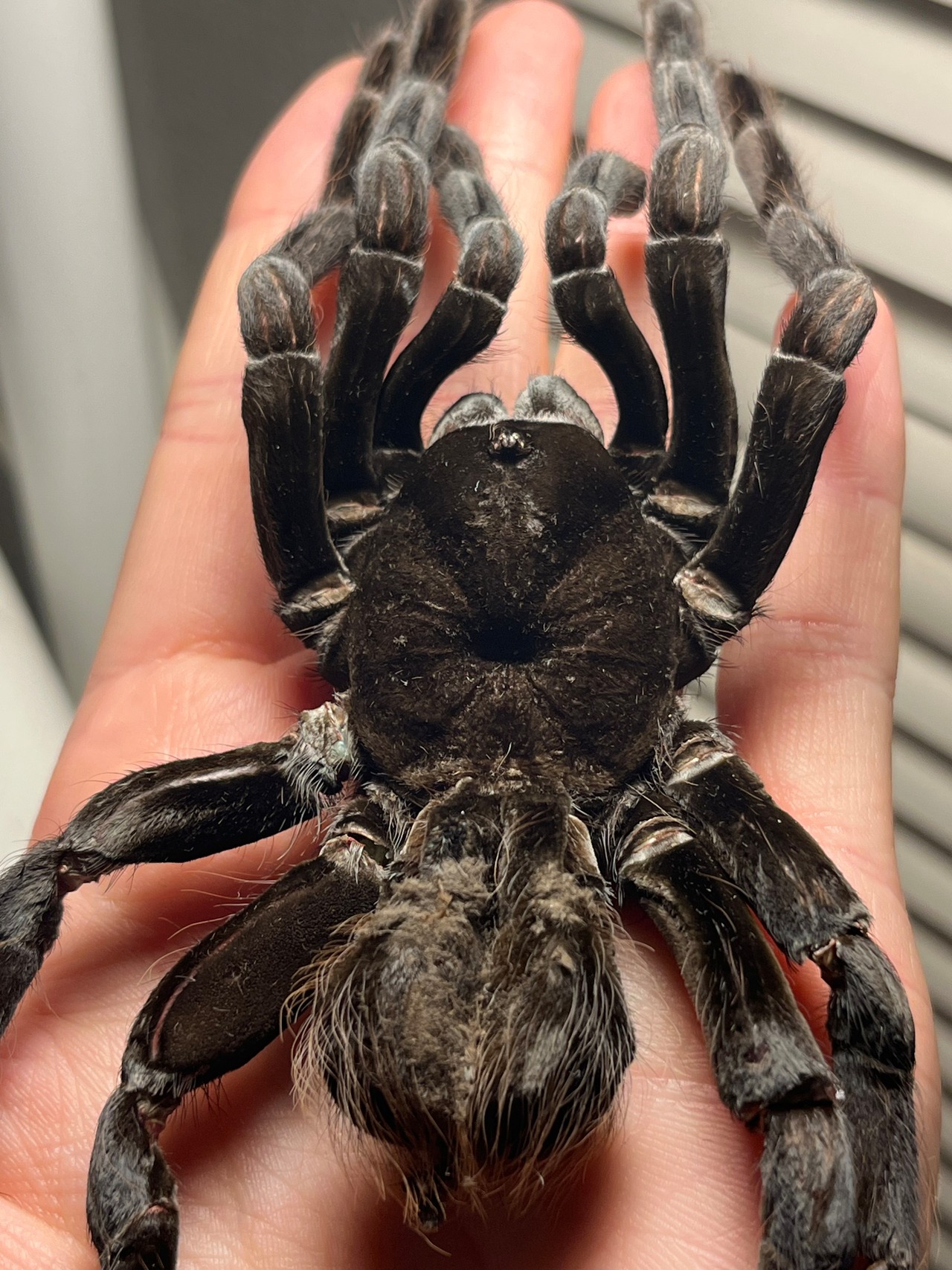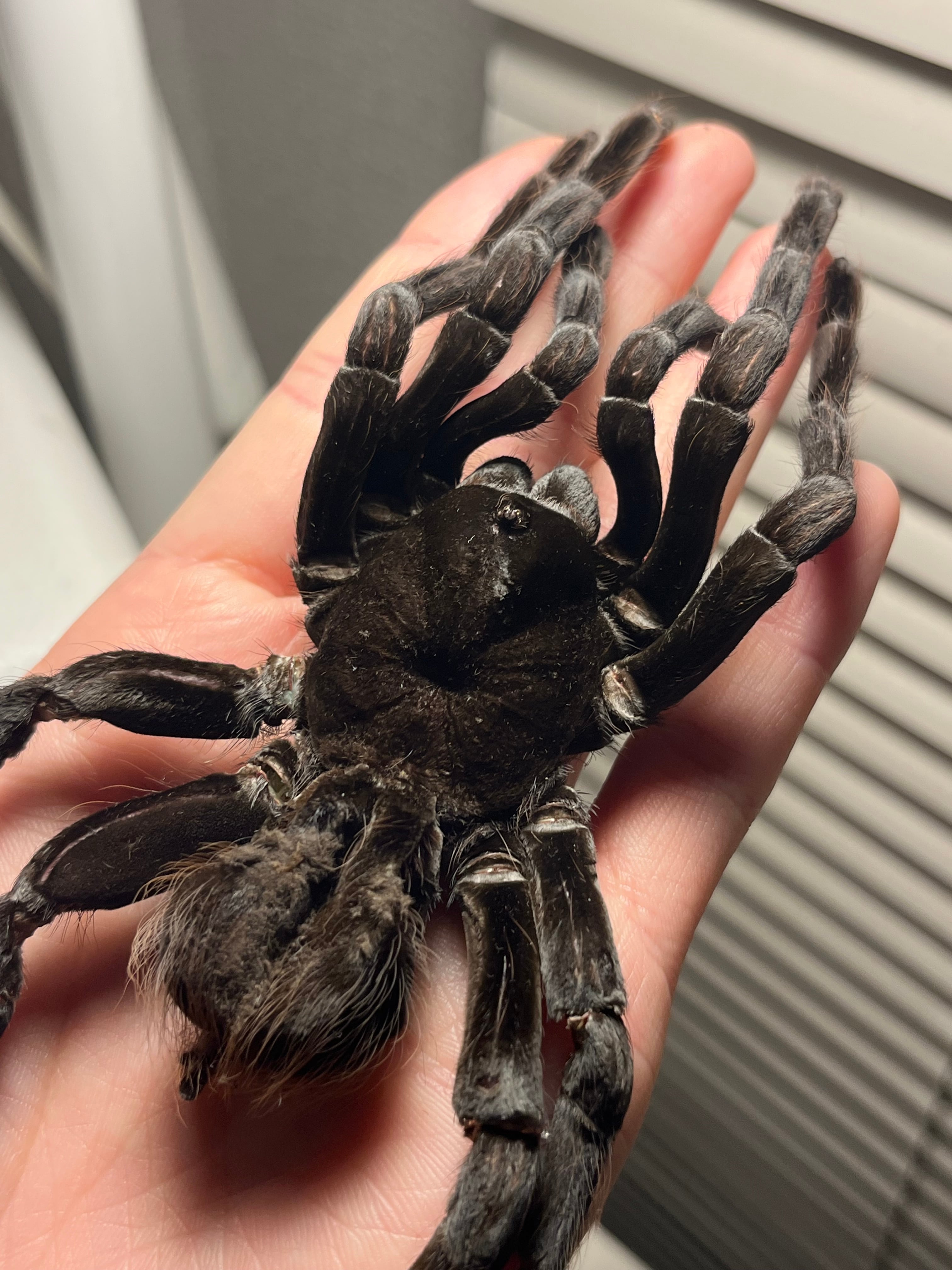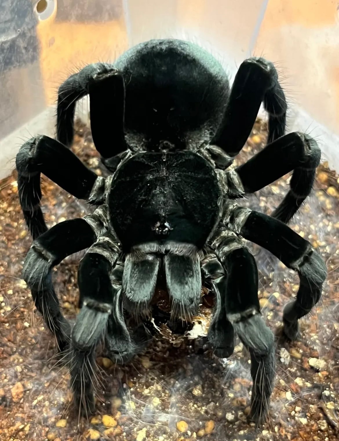 ♂は足が青くなり、♀は真っ黒になるタランチュラです。