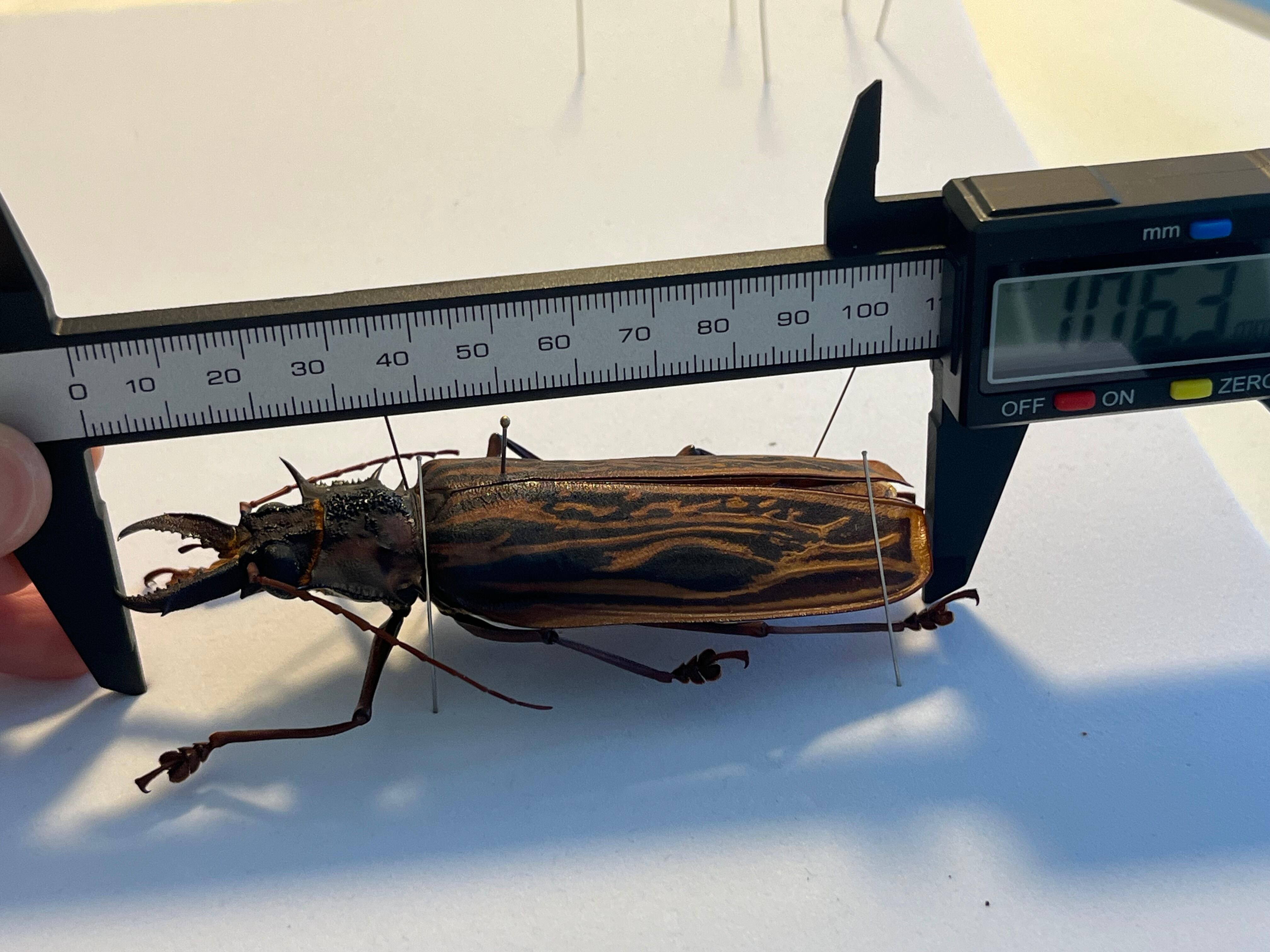 【106mm♀】オオキバウスバカミキリ標本 Macrodontia cervicornis昆虫標本 天牛 甲虫 タランチュラムカデセンチピードサソリカナブン