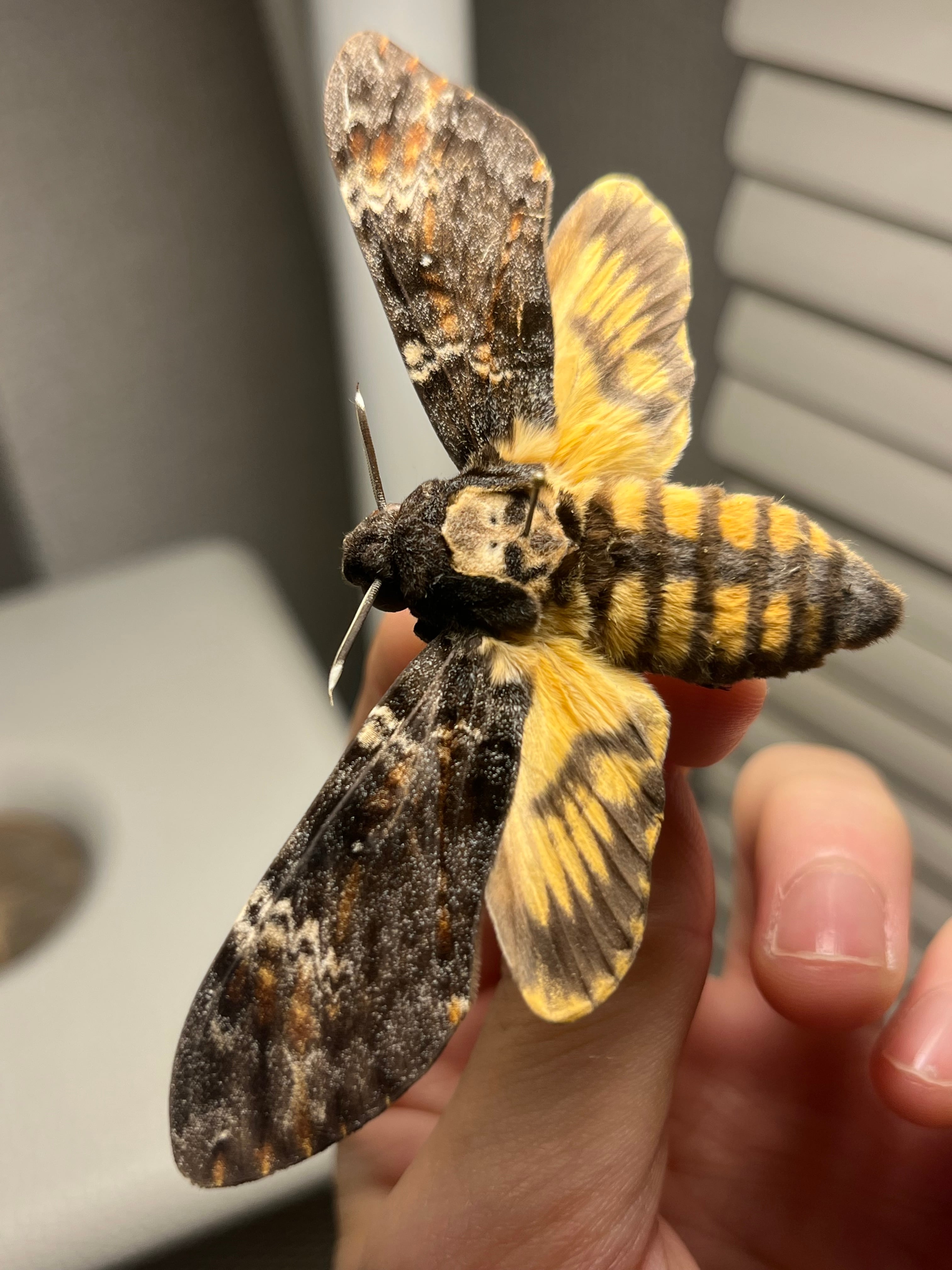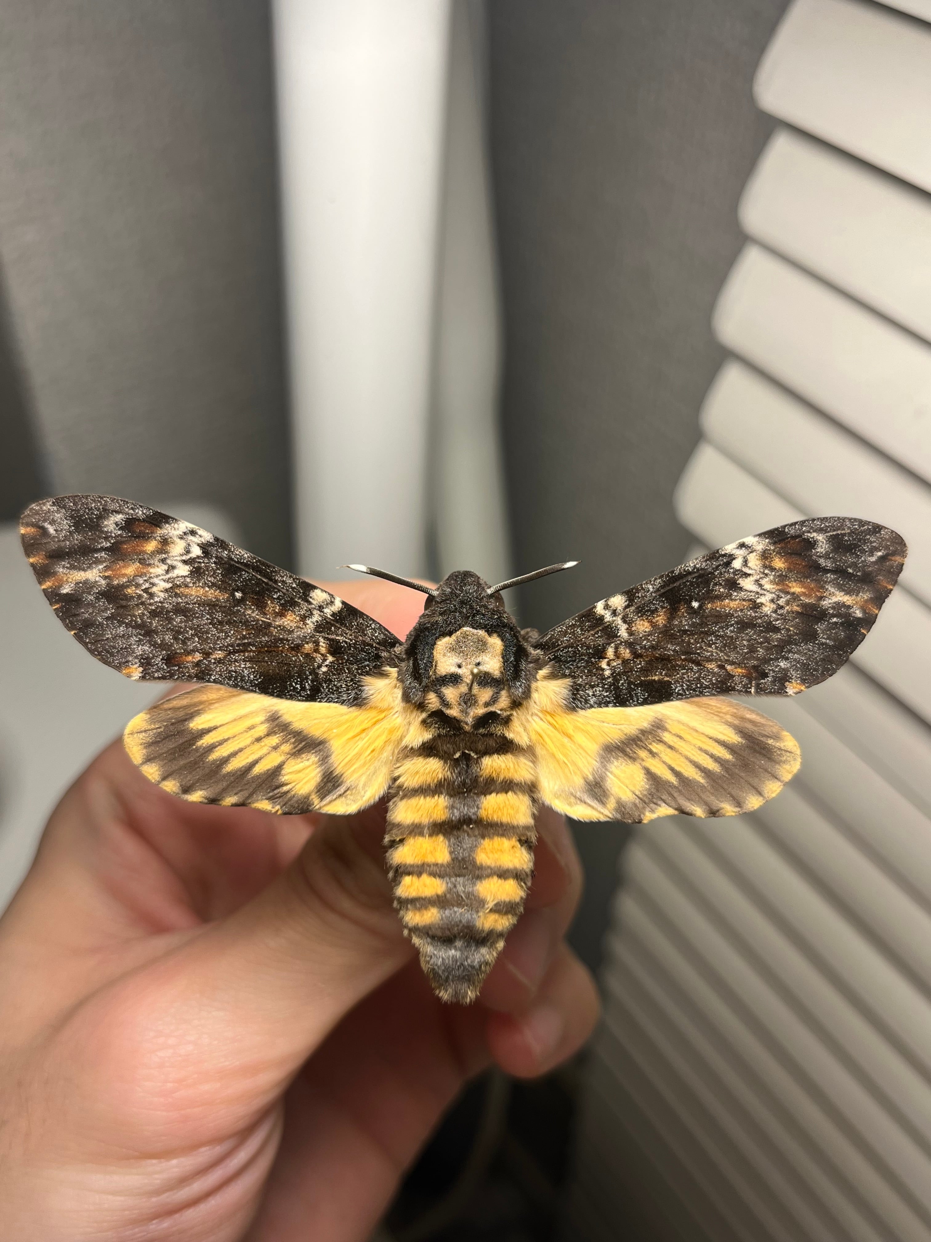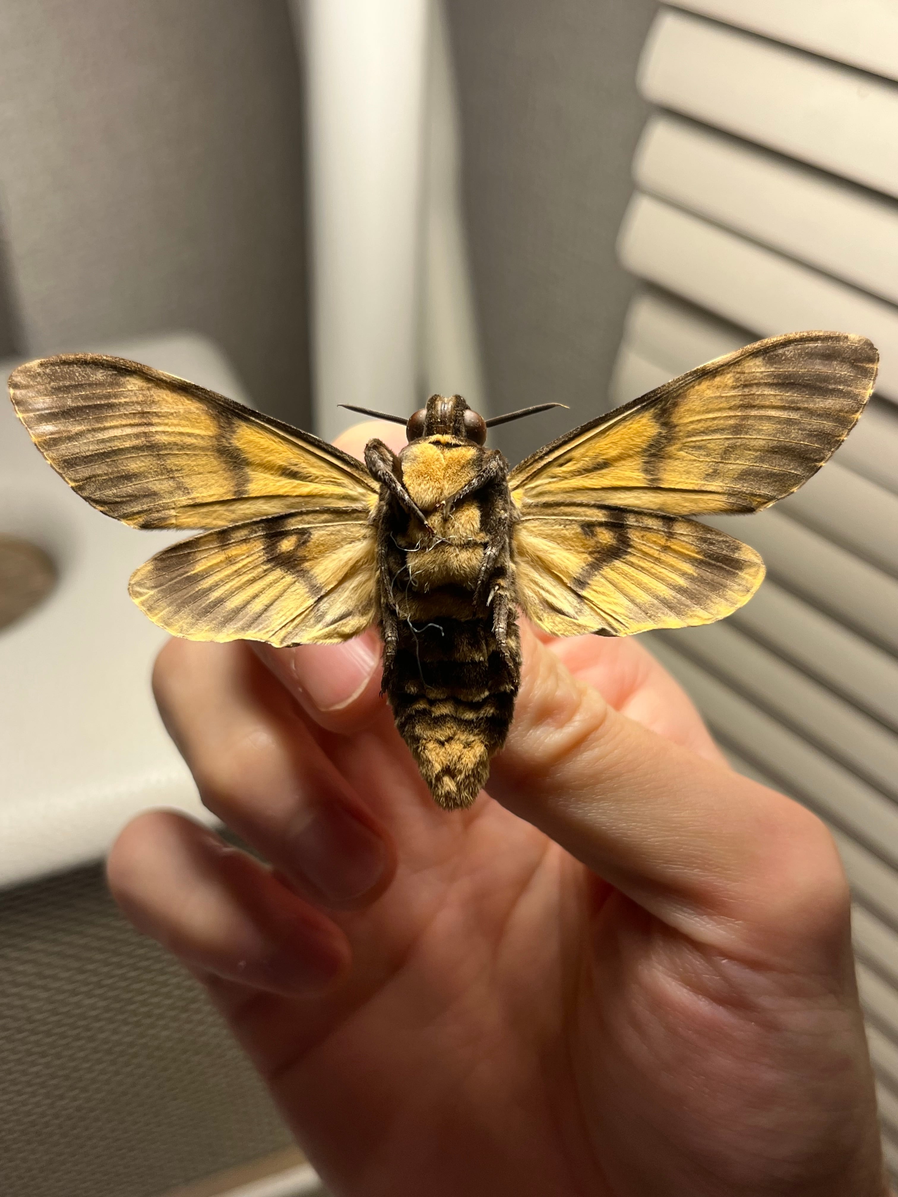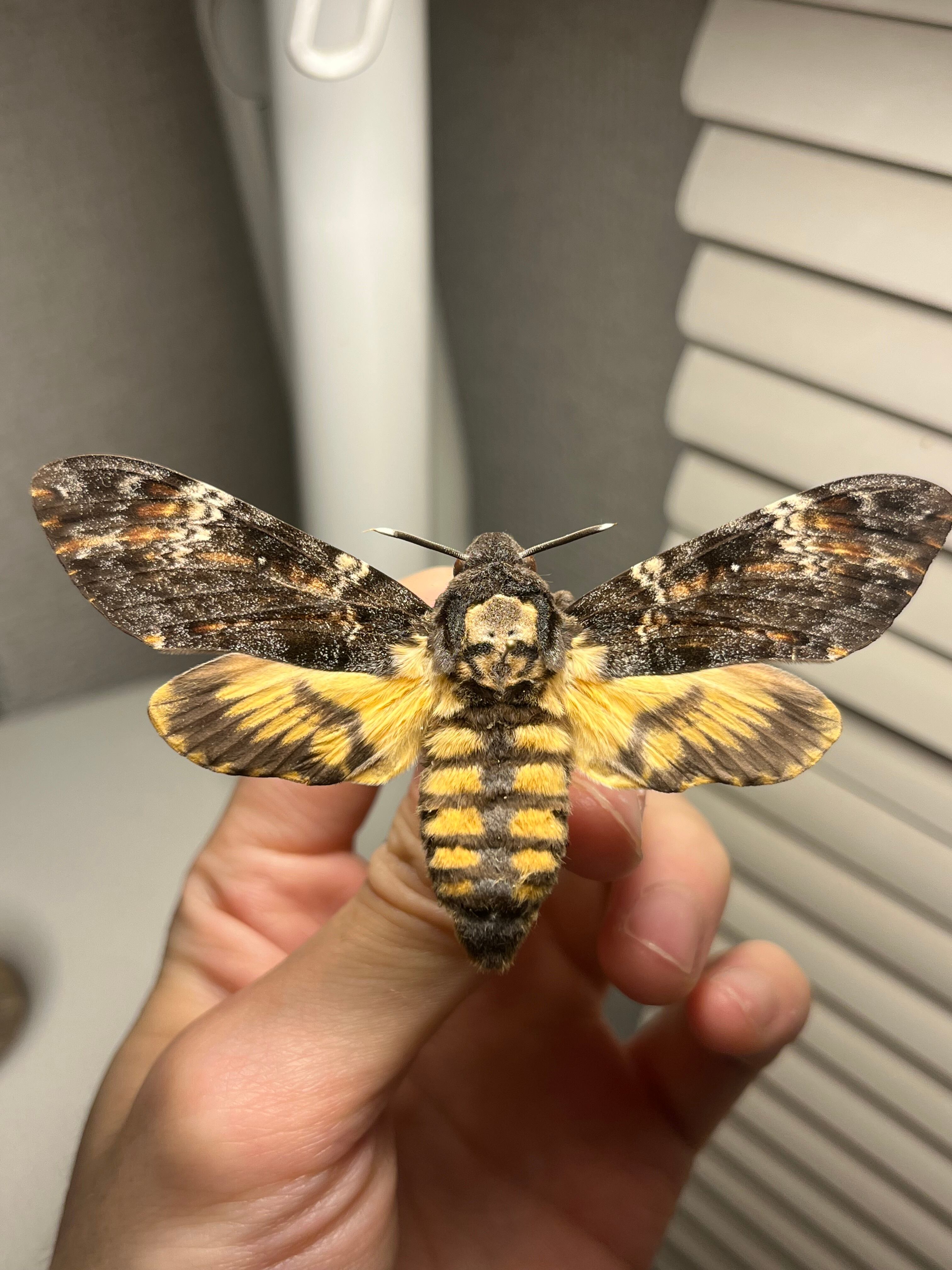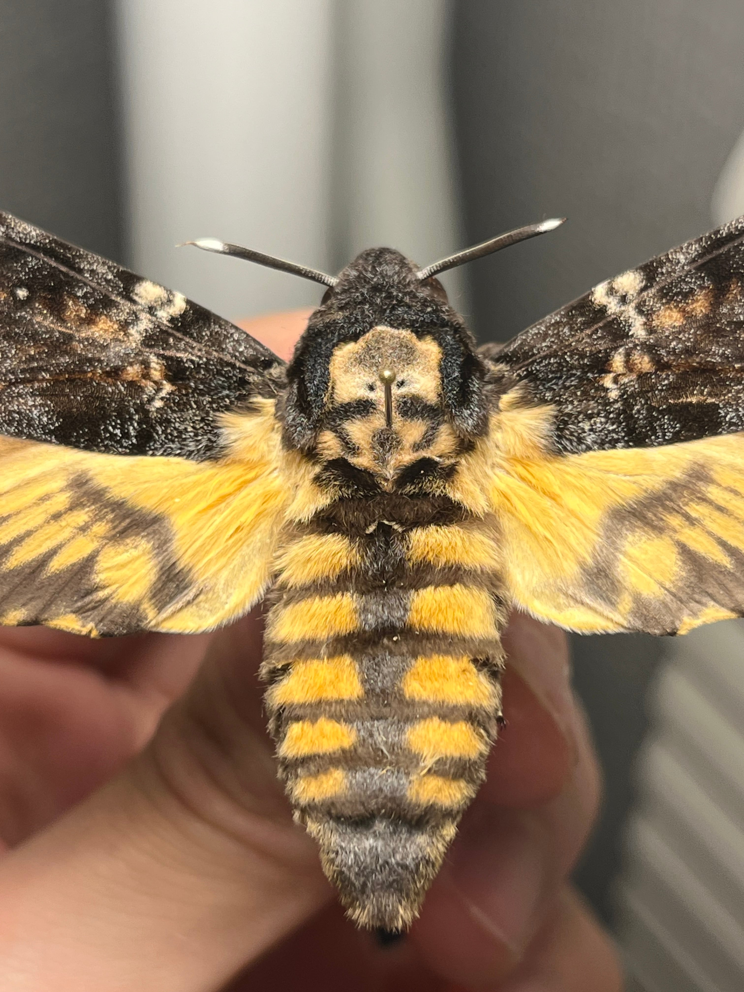 デスヘッドホークモスという名称は、アケロンティア属(Acherontia atropos、Acherontia styx、Acherontia lachesis)の3種の蛾のいずれかを指します。前者はアフリカ全土とヨーロッパに分布し、後者2種はアジアに分布しています。この一般名は主にアフリカ産の種を指します。これらの蛾は、胸部に人間の頭蓋骨を思わせる模様があることで容易に識別できます。大型の夜行性蛾で、茶色と黄色またはオレンジ色の体色をしています。3種は大きさ、体色、ライフサイクルがかなり似ています。