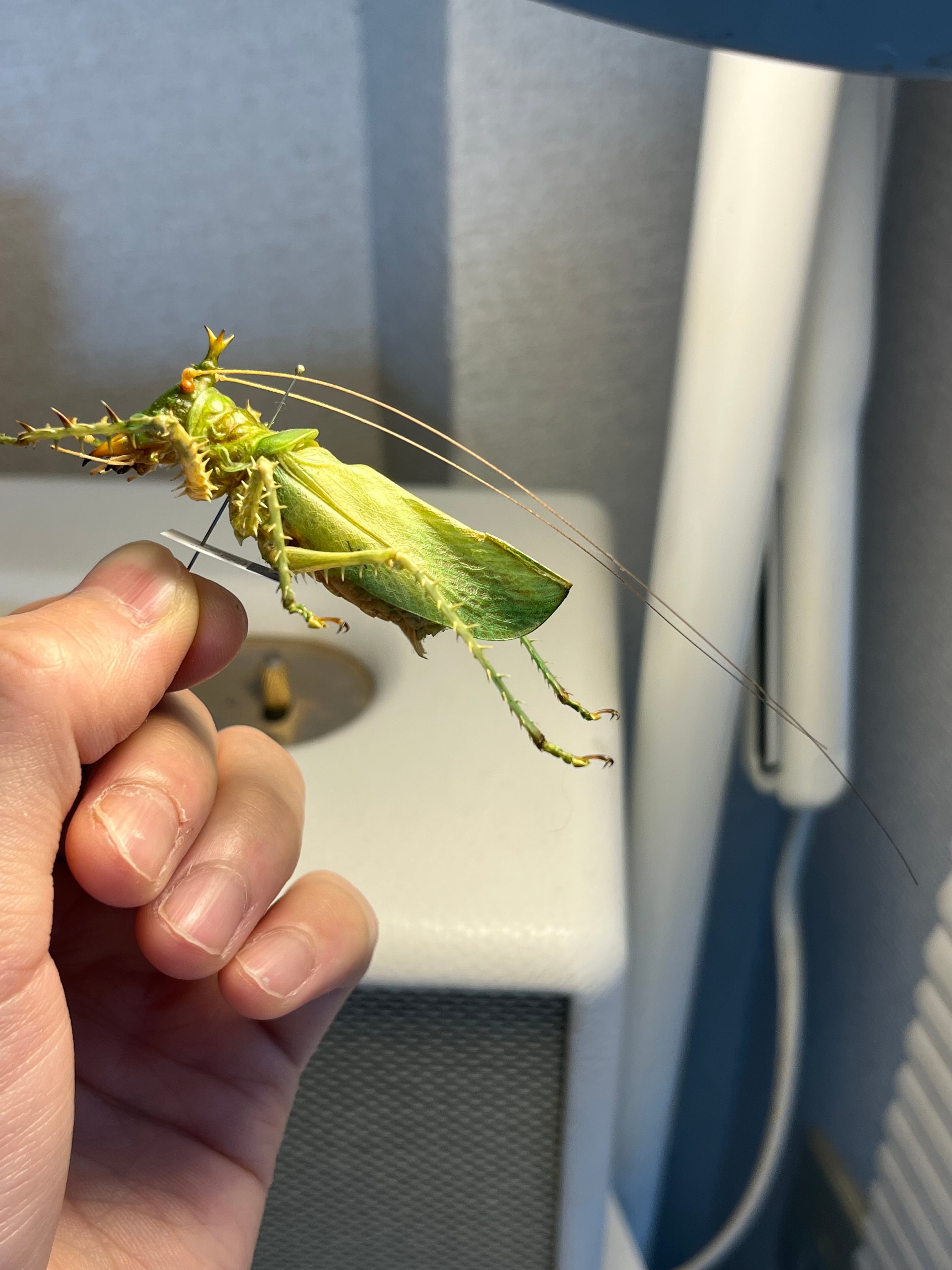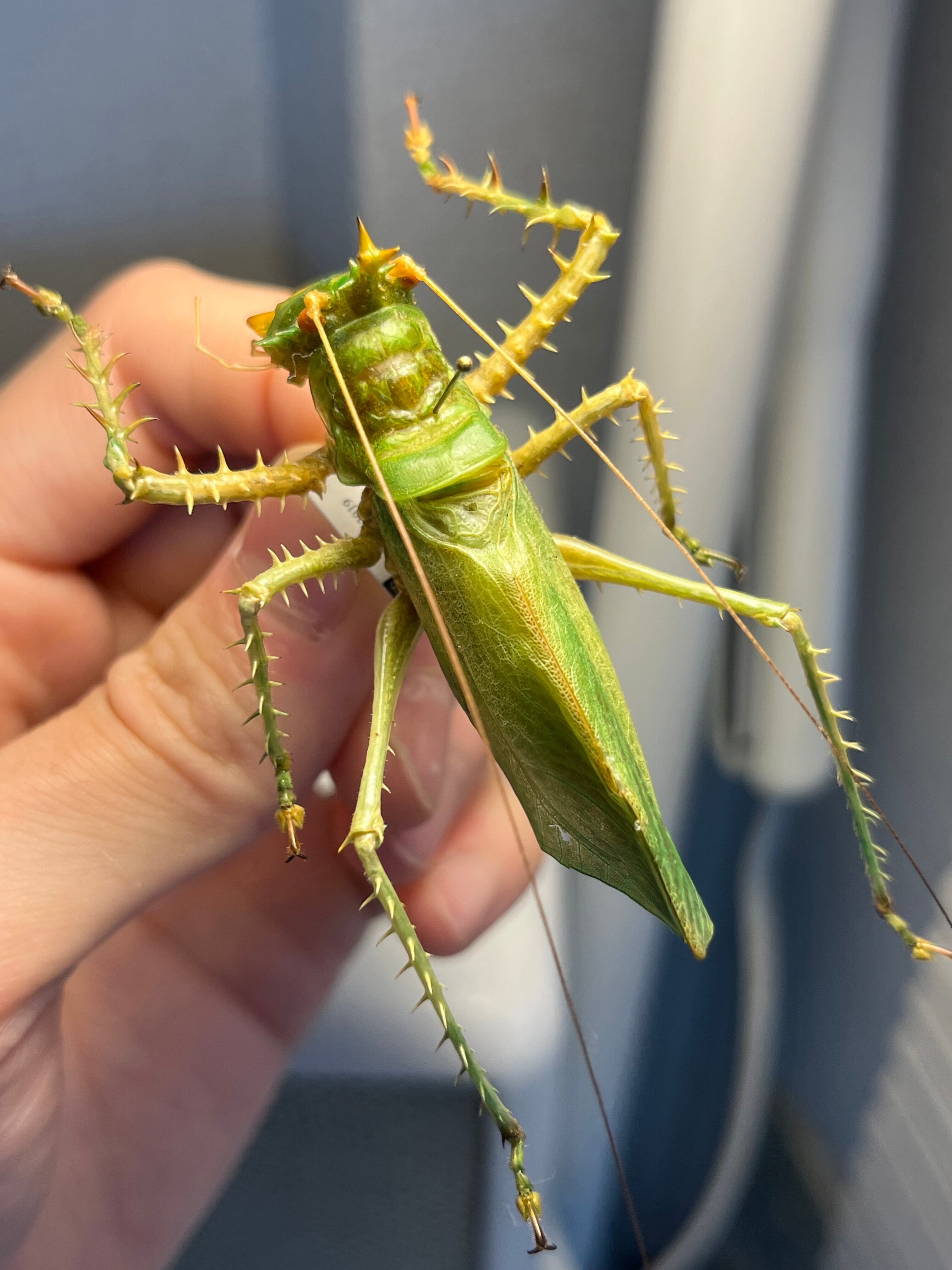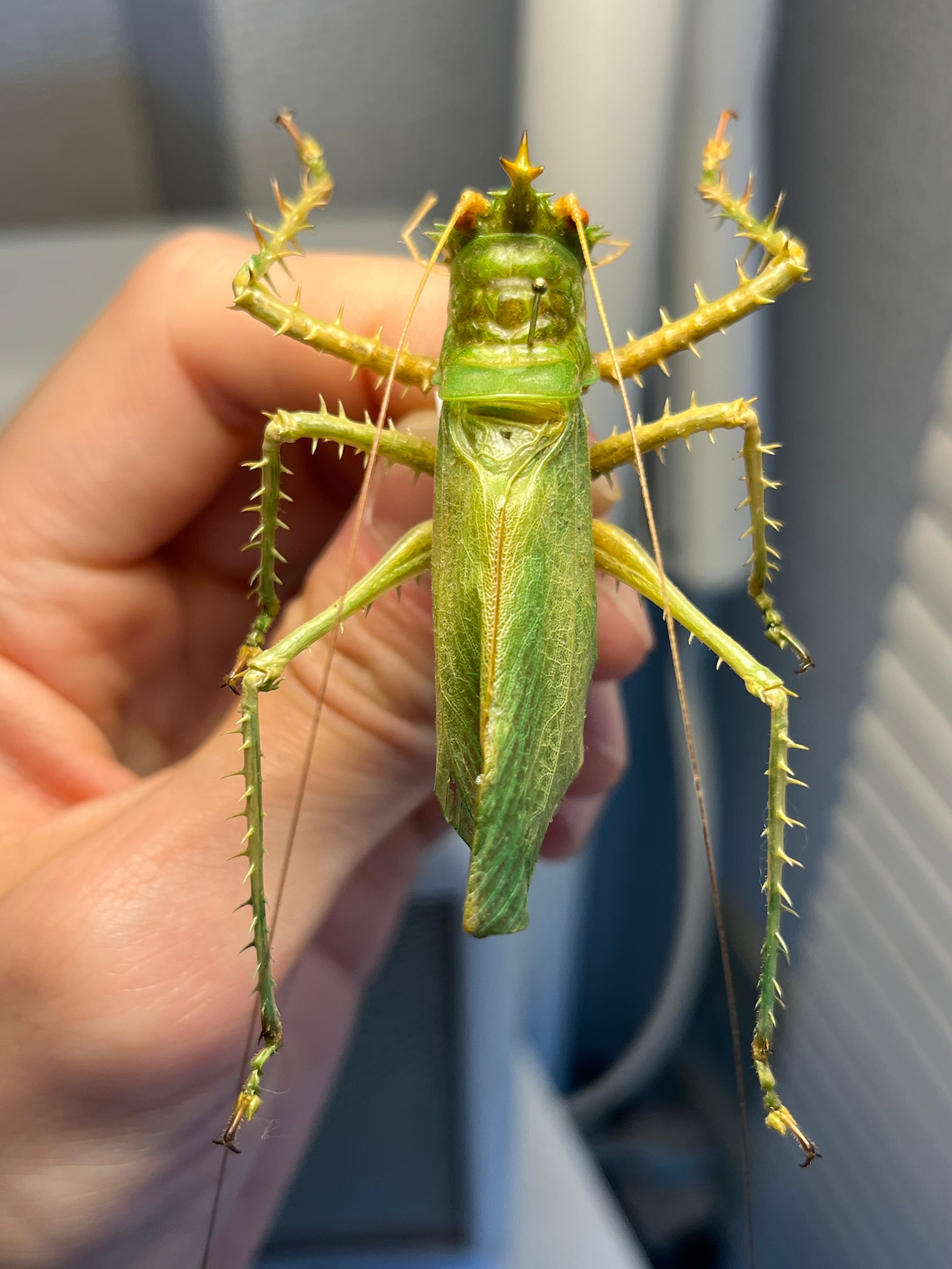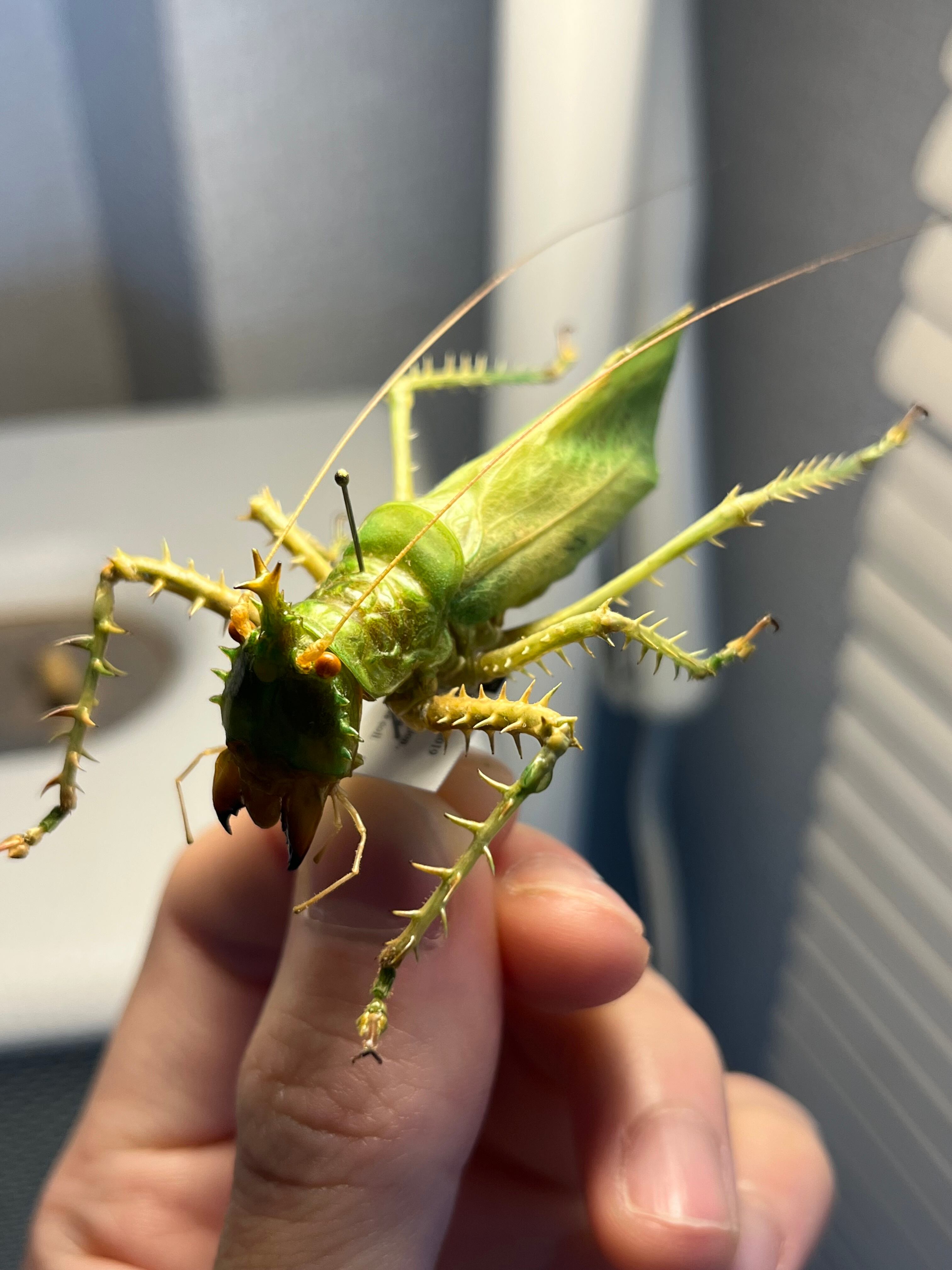 パナカンサス属の昆虫は、6本の棘のある脚を持ち、防御に利用します。この脚は敵を撃退し、獲物を捕らえるのに役立ちます。独特の緑色のおかげで、熱帯の樹木に擬態することができます。歯はありませんが、鋭い口で噛みつき、肉を切り裂くことができます。