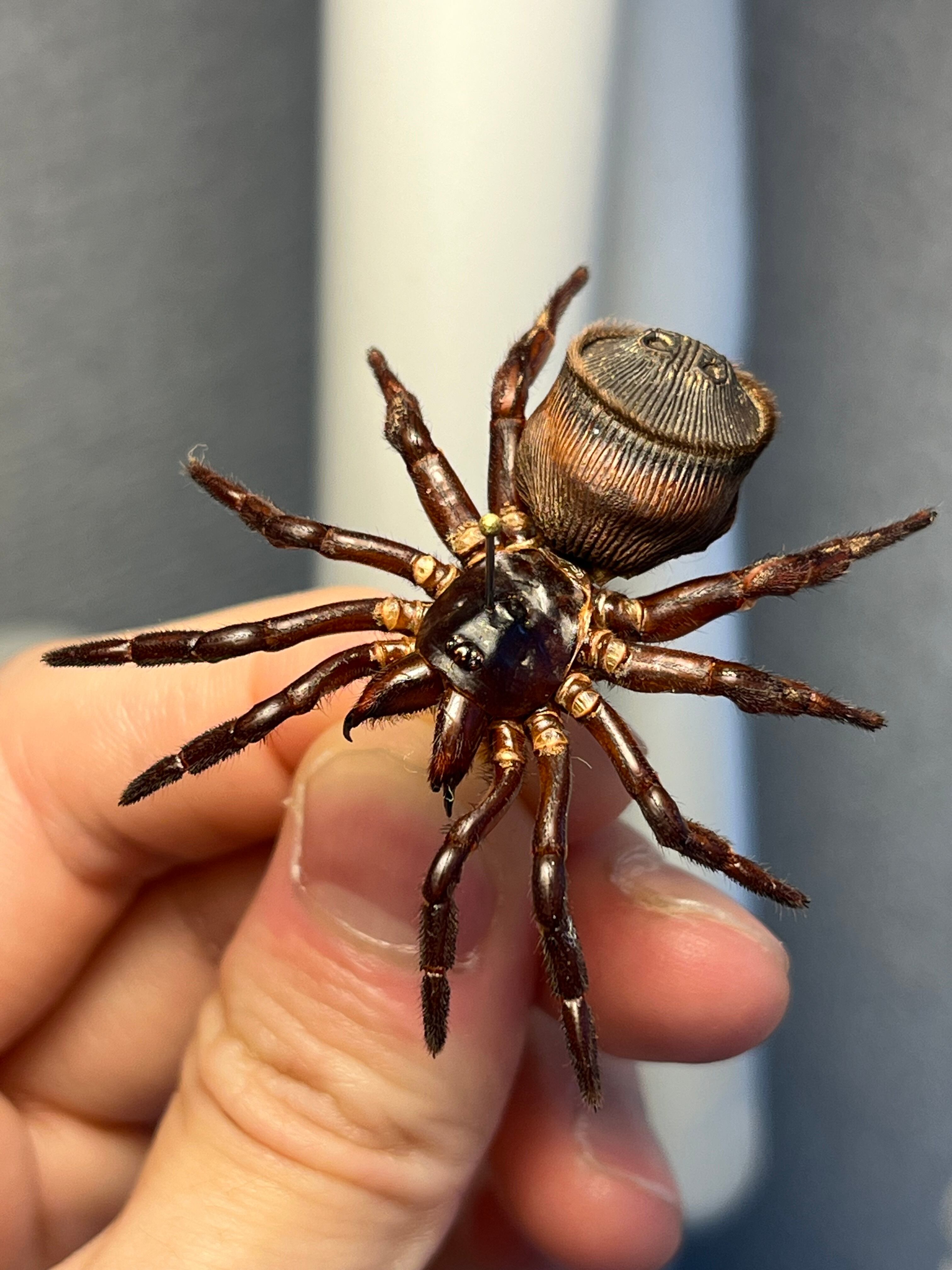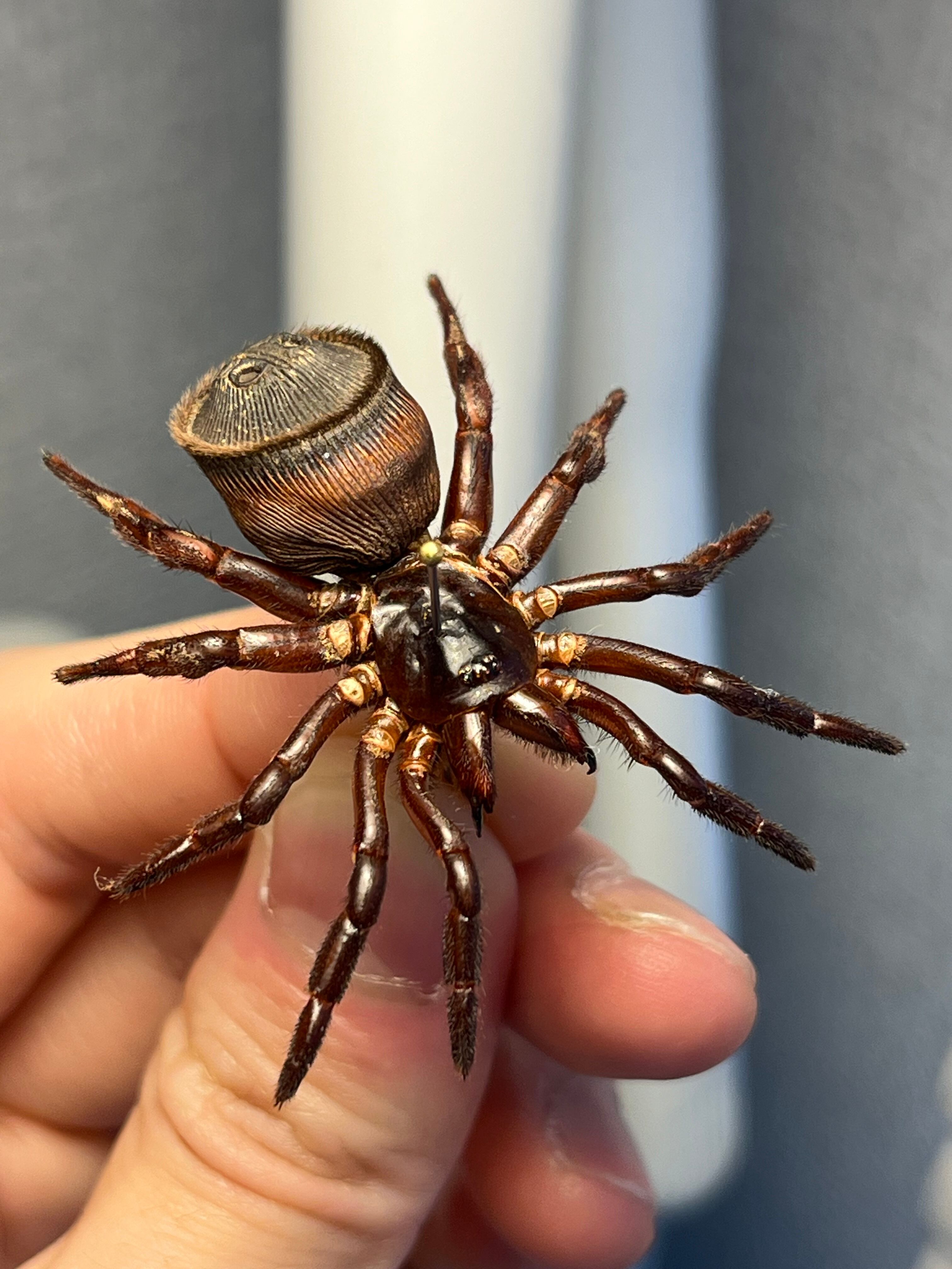 オレオみたいなお尻が特徴的なトラップドアスパイダーです。ハンコに見えるのでスタンプスパイダーとも呼ばれています。