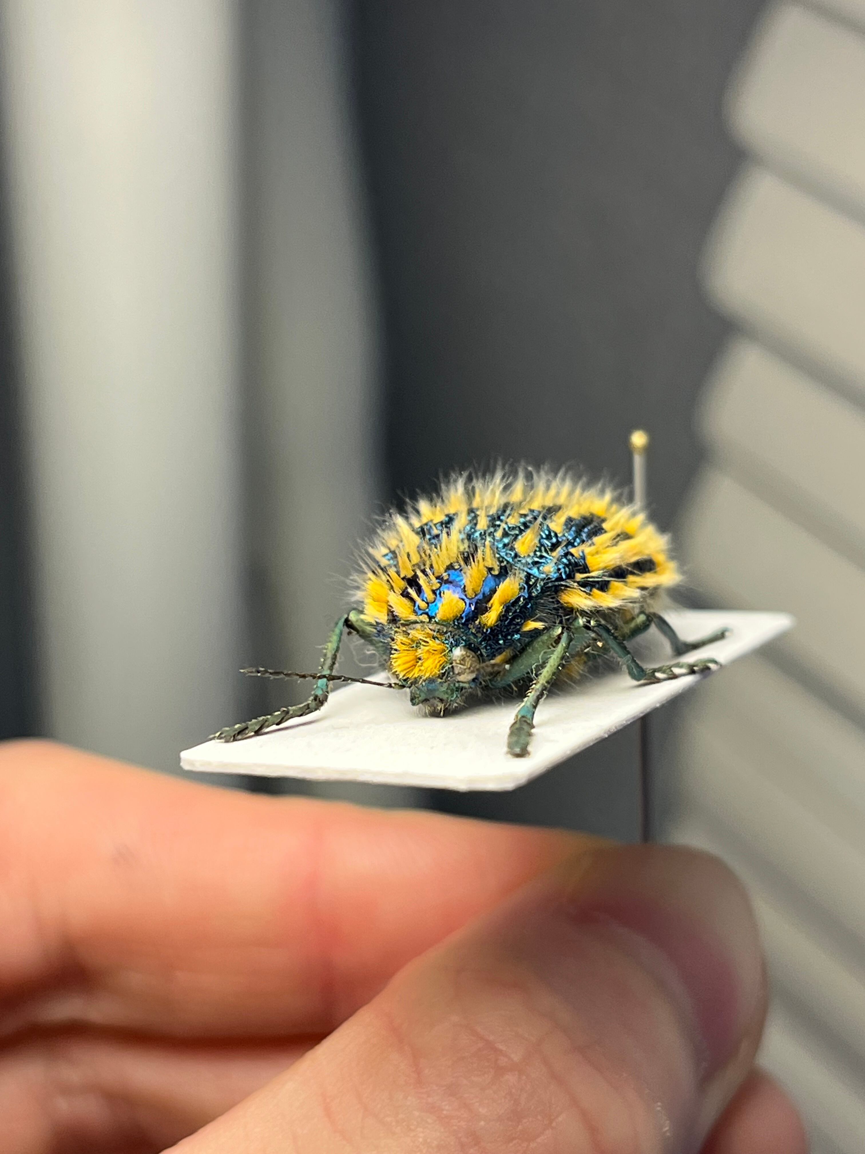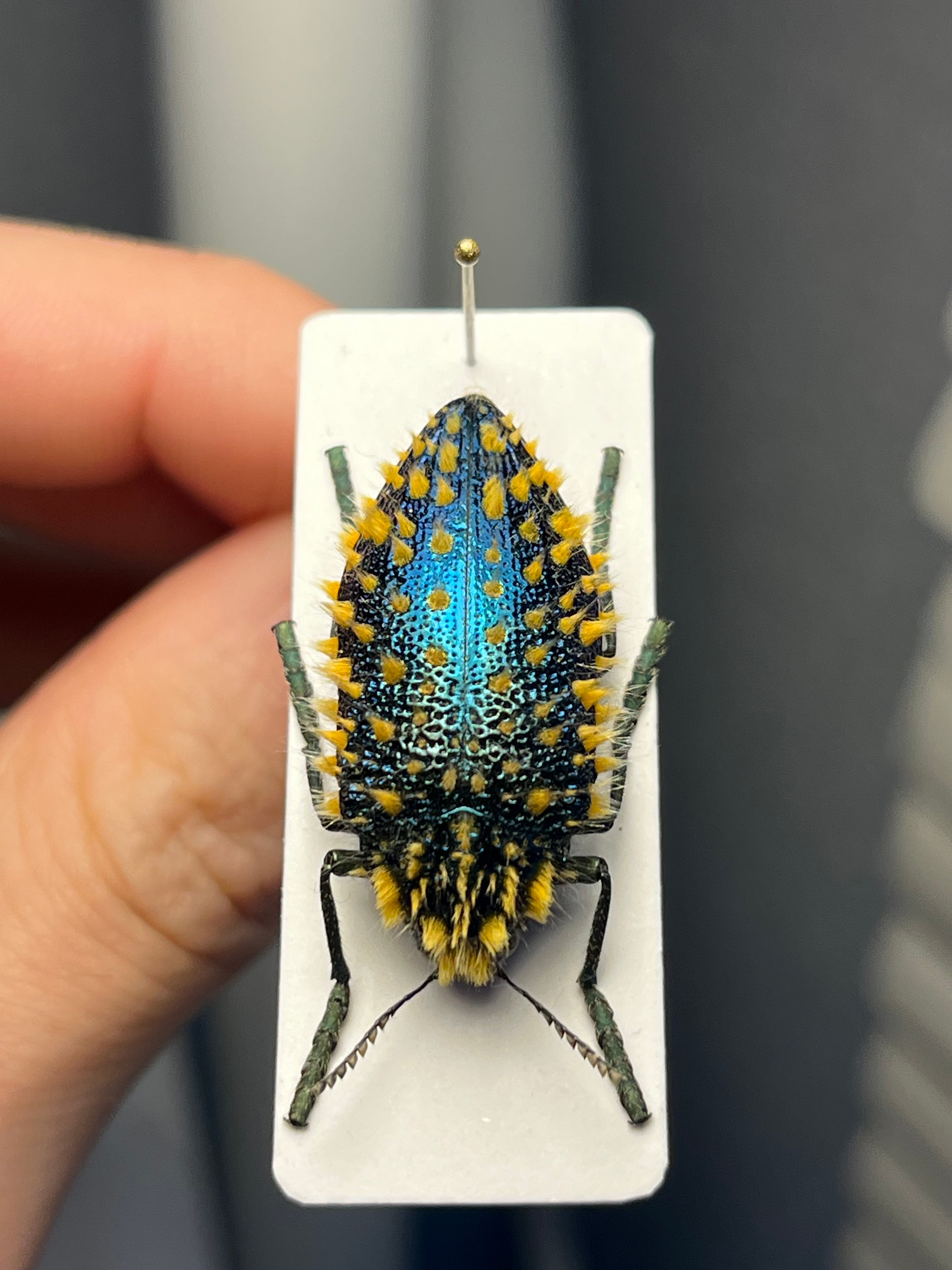今では新規で展足を受け付けていない昆虫標本作家の福井敬貴さんの2022年の作品で一才の妥協を許していない神がかり的な展足だと思います。台紙の裏にサインがあります。