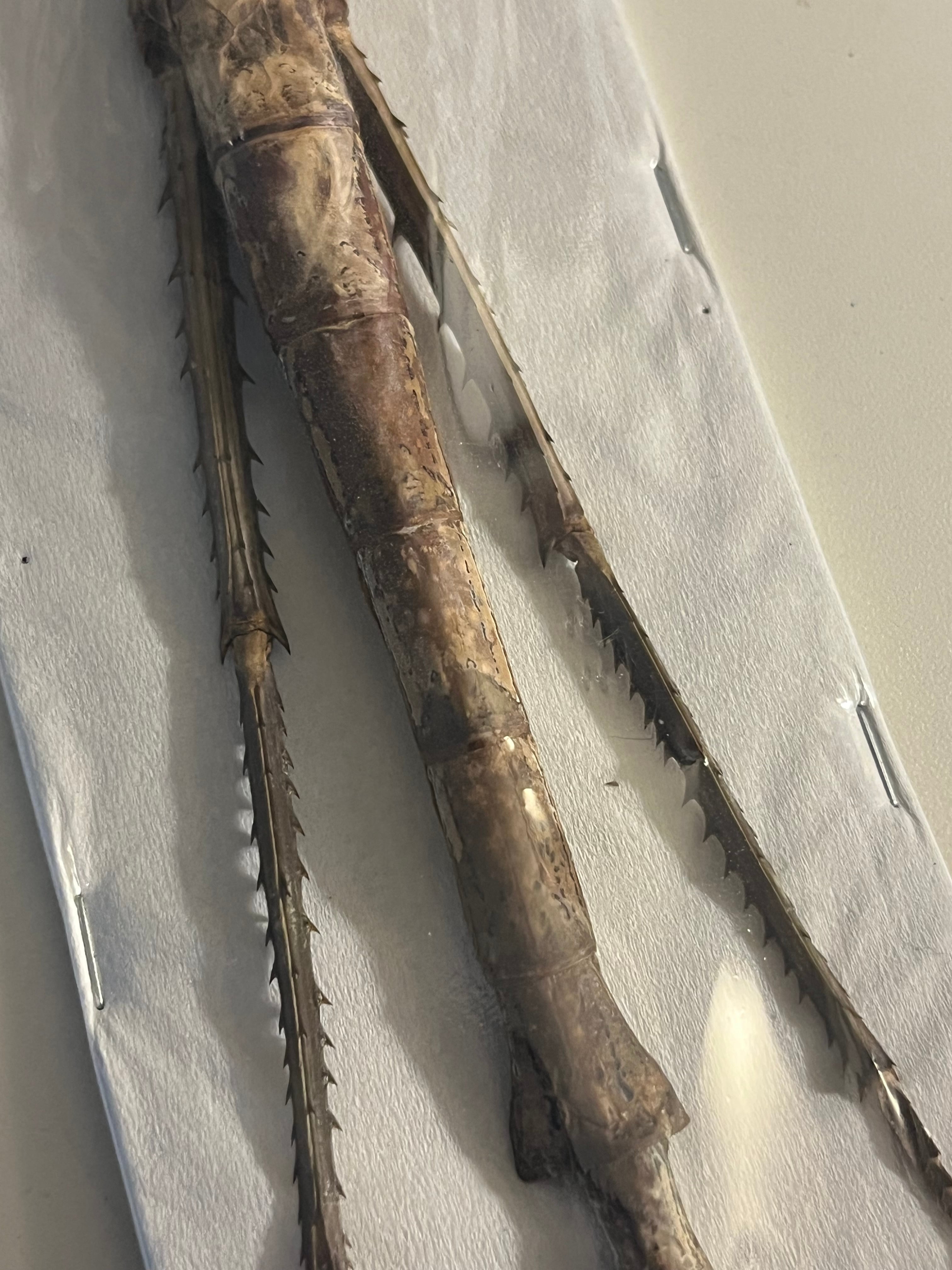 私が計測したところ全長340mm程でした。以前もこの種の標本を購入しましたがかなり状態が良く、特大サイズです。