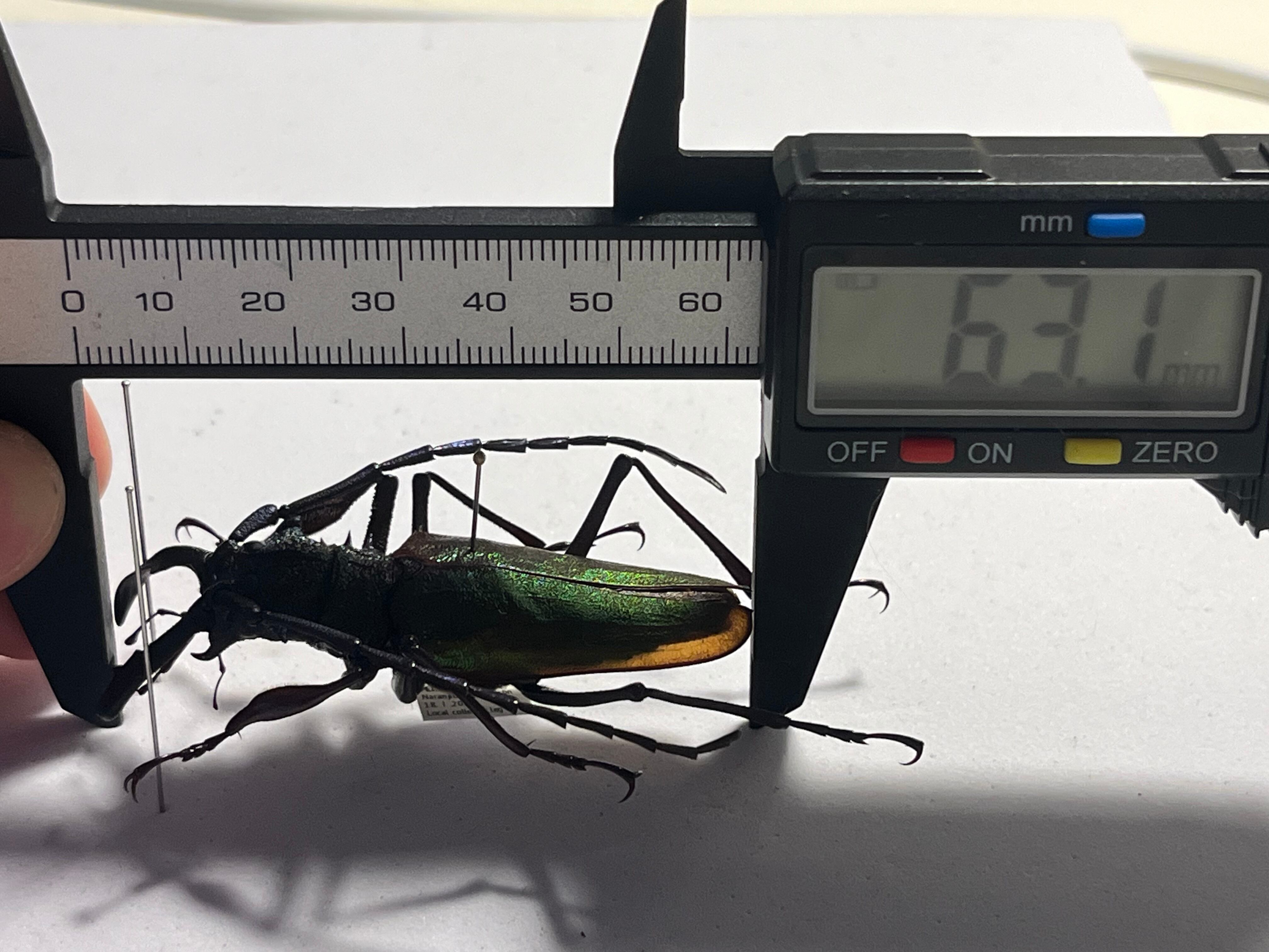 ペルー リオハ ナランホス サンアグスティン産の画像個体♂を配送します。2024年1月18日に採取されております。私が計測したところ63mmでした。