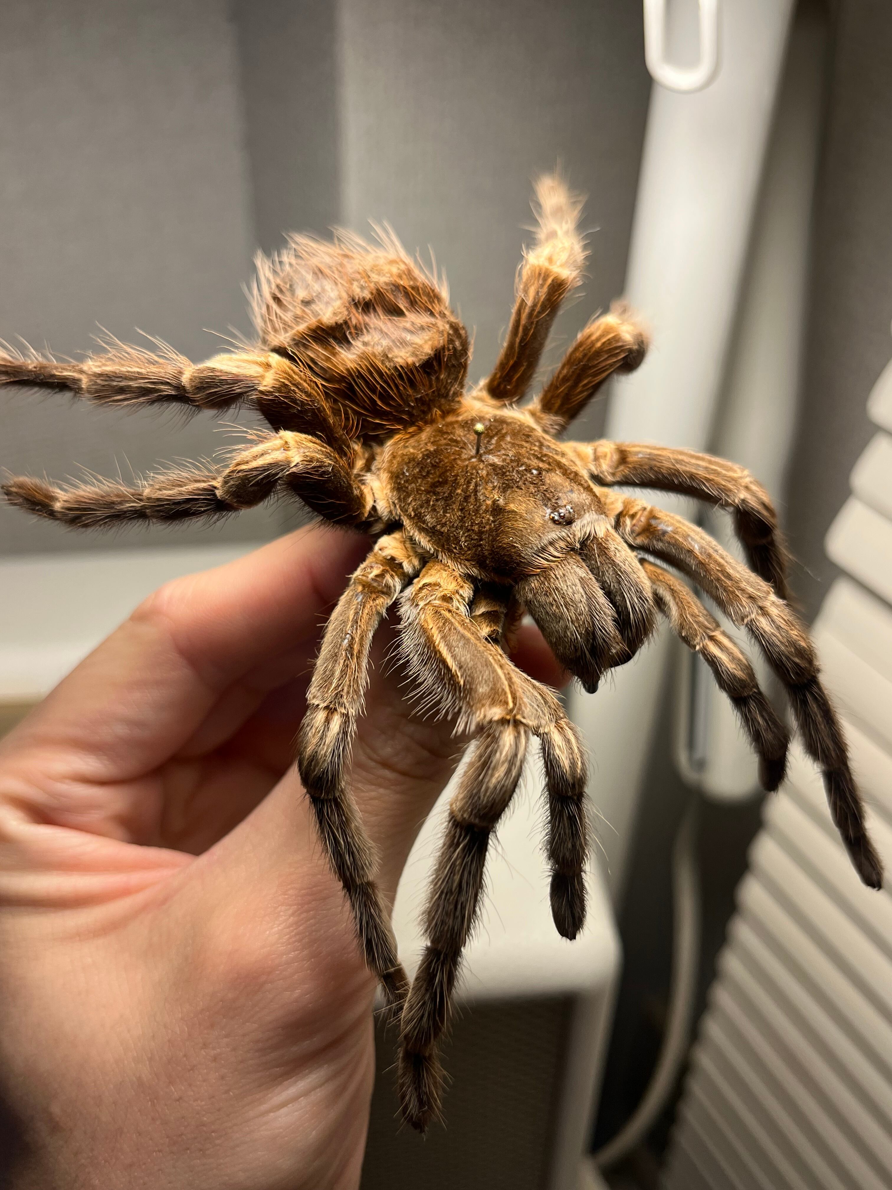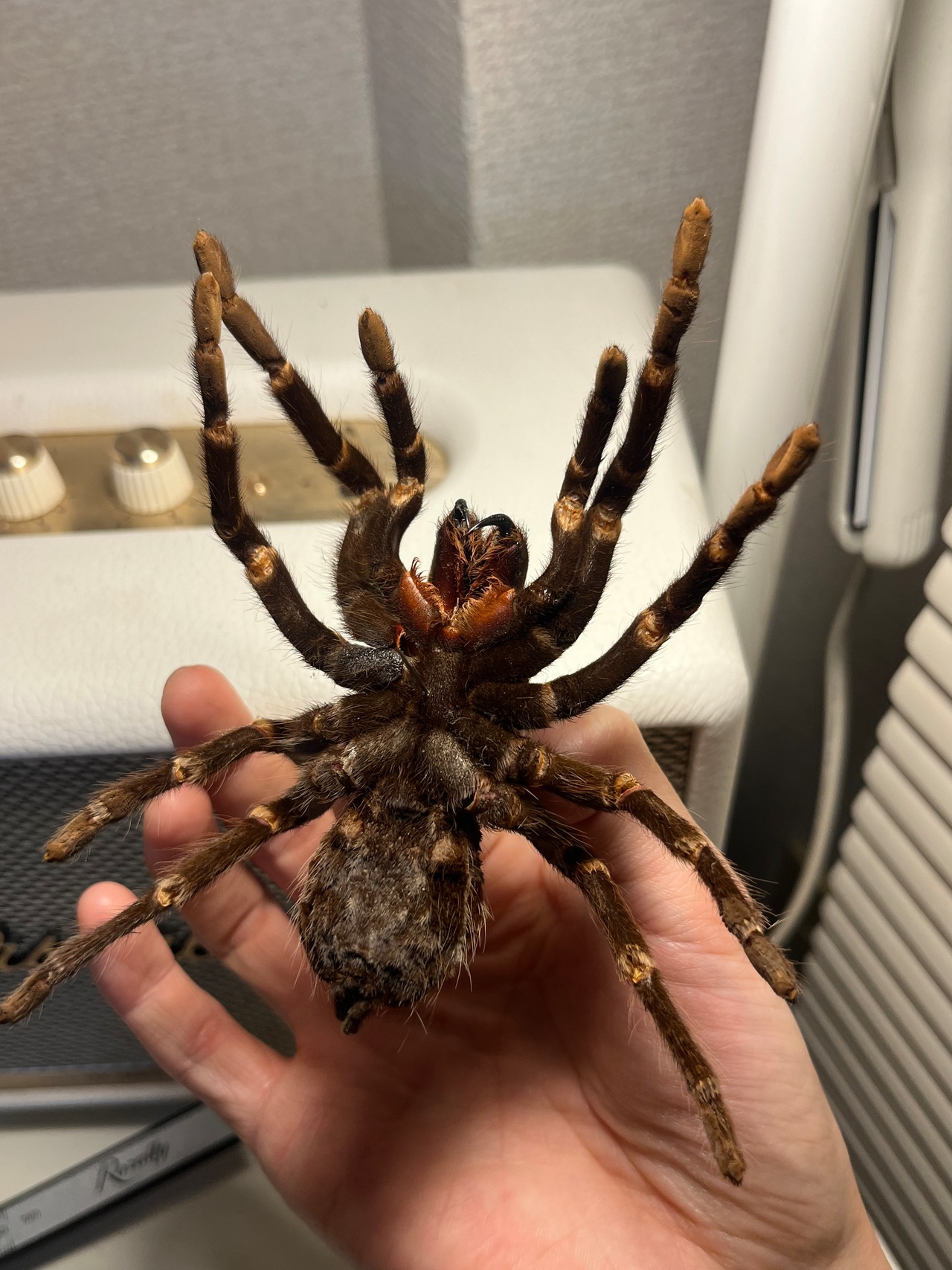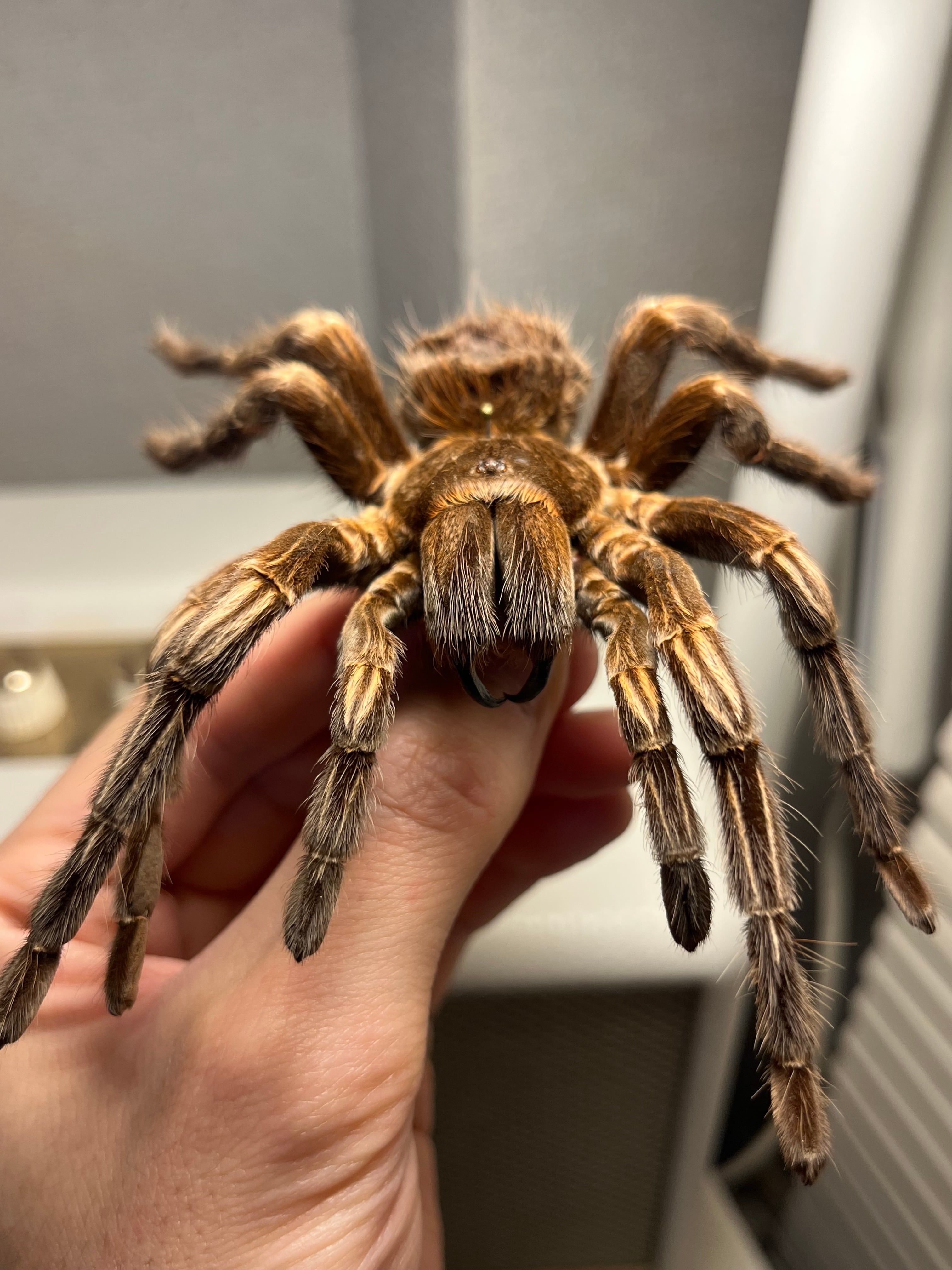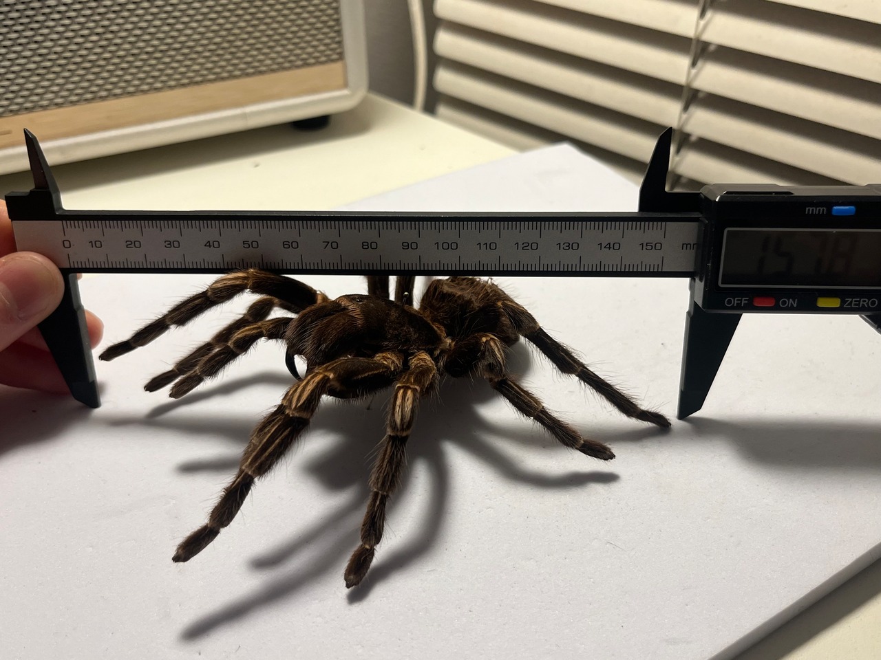 脚を広げて展足されてあるので、かなり迫力があります。タランチュラでは難しいハンドリング欲を満たせると思います。