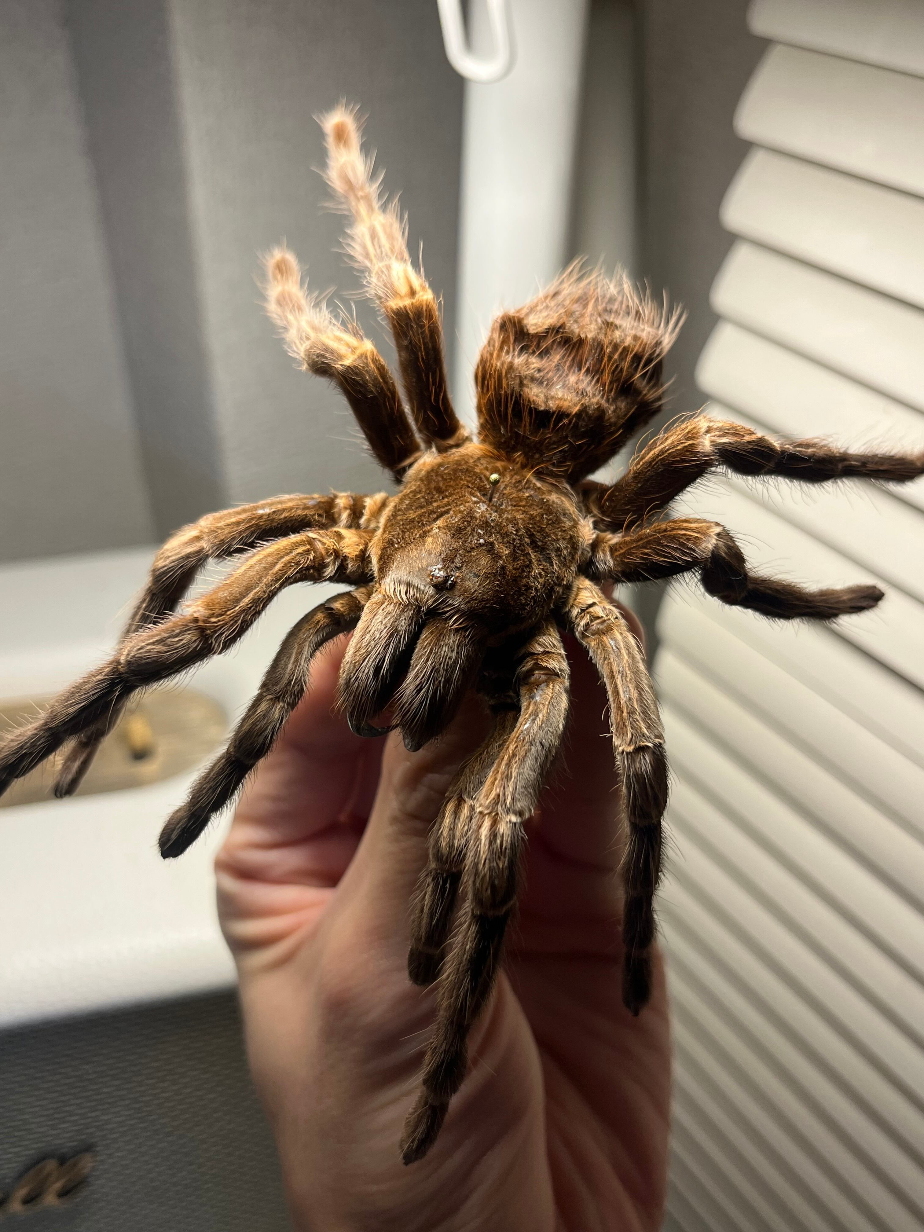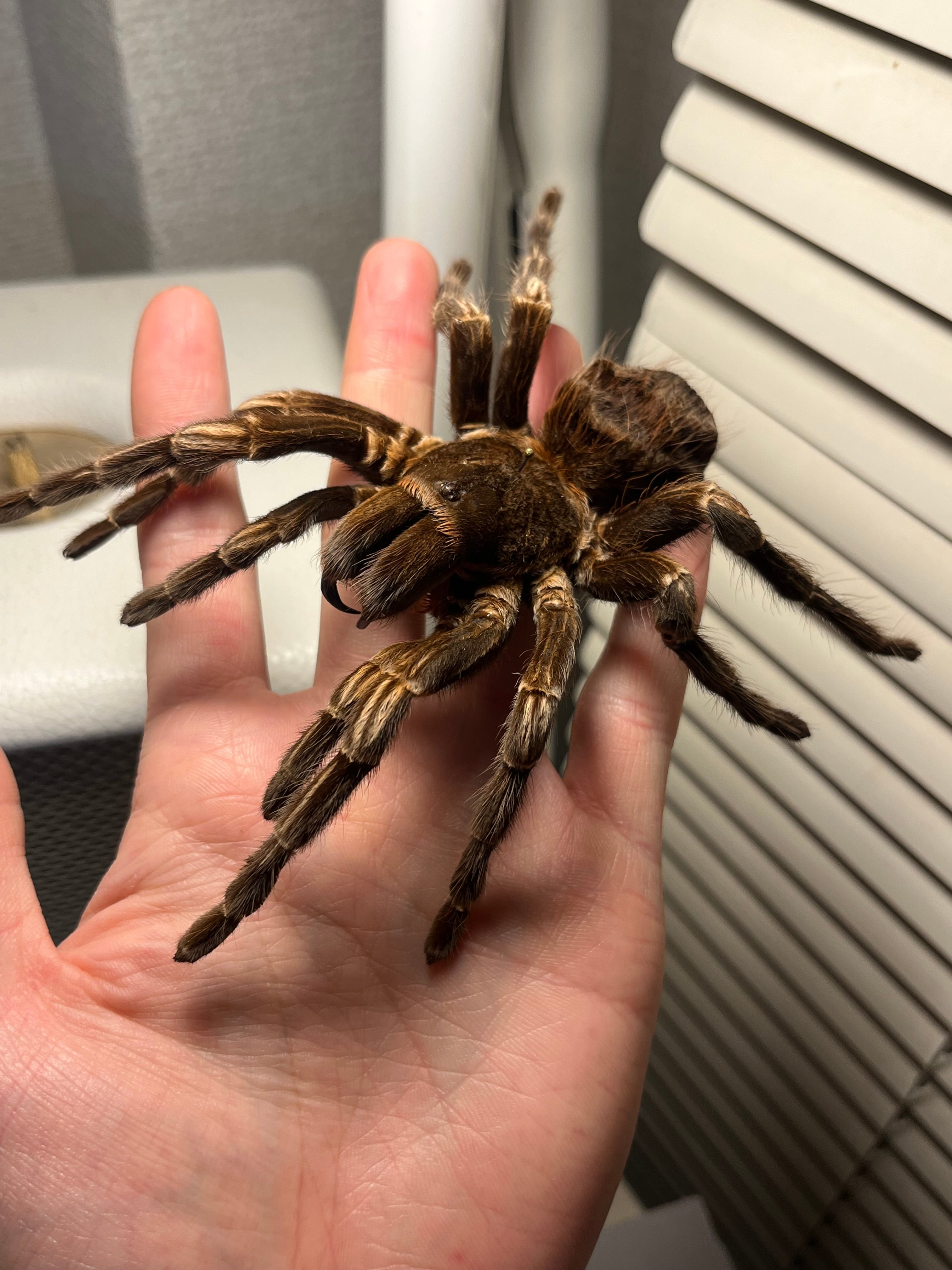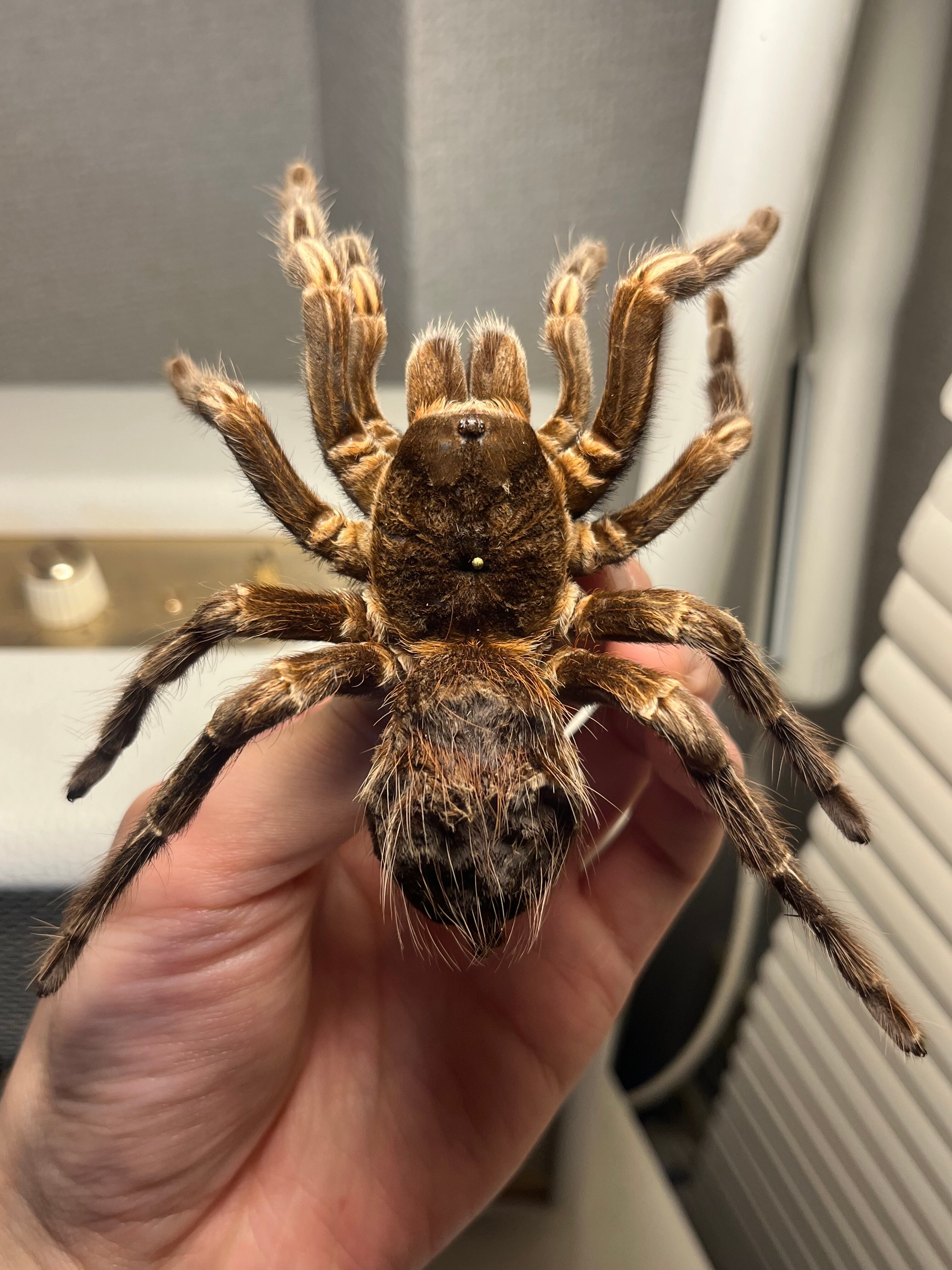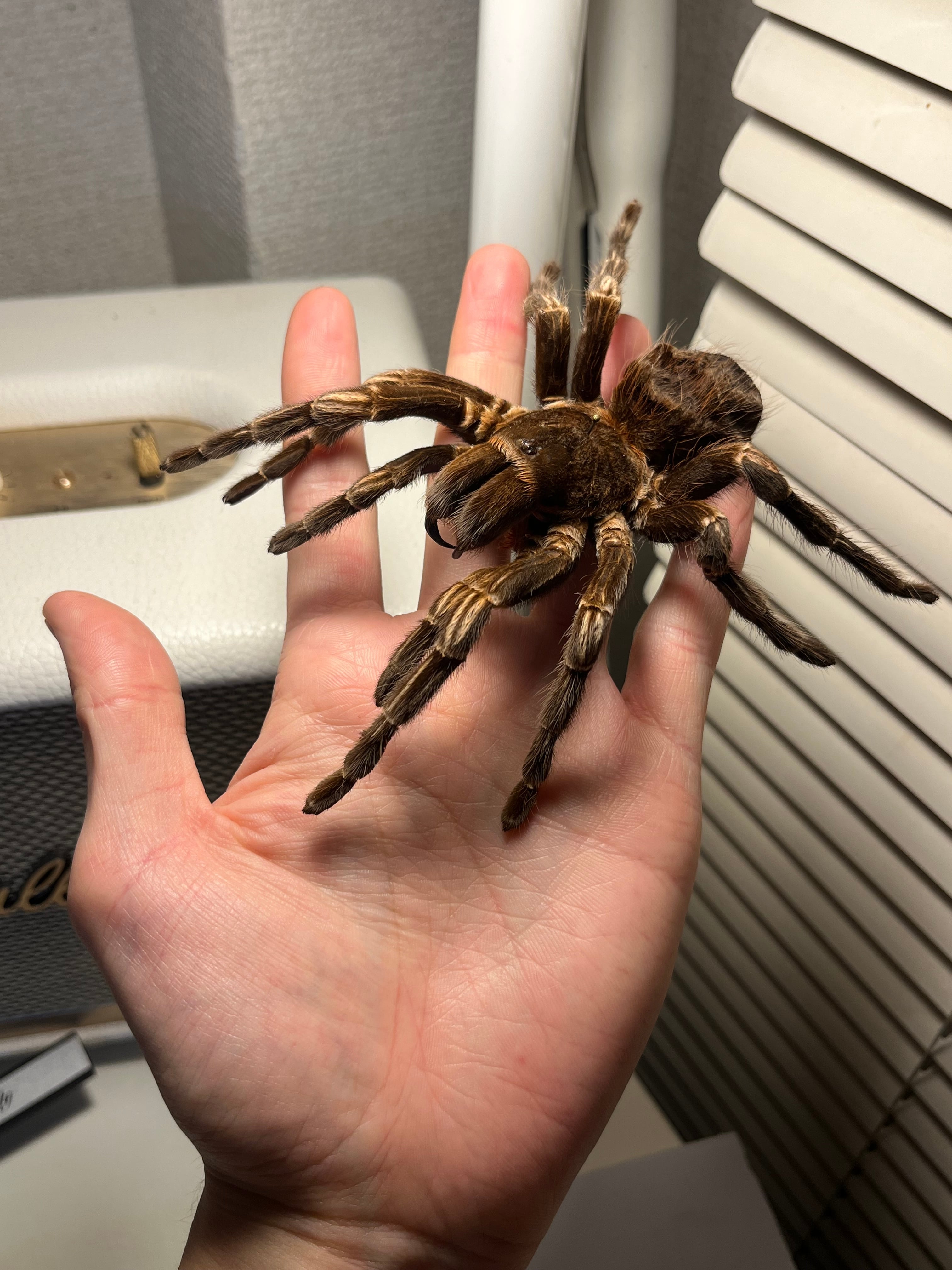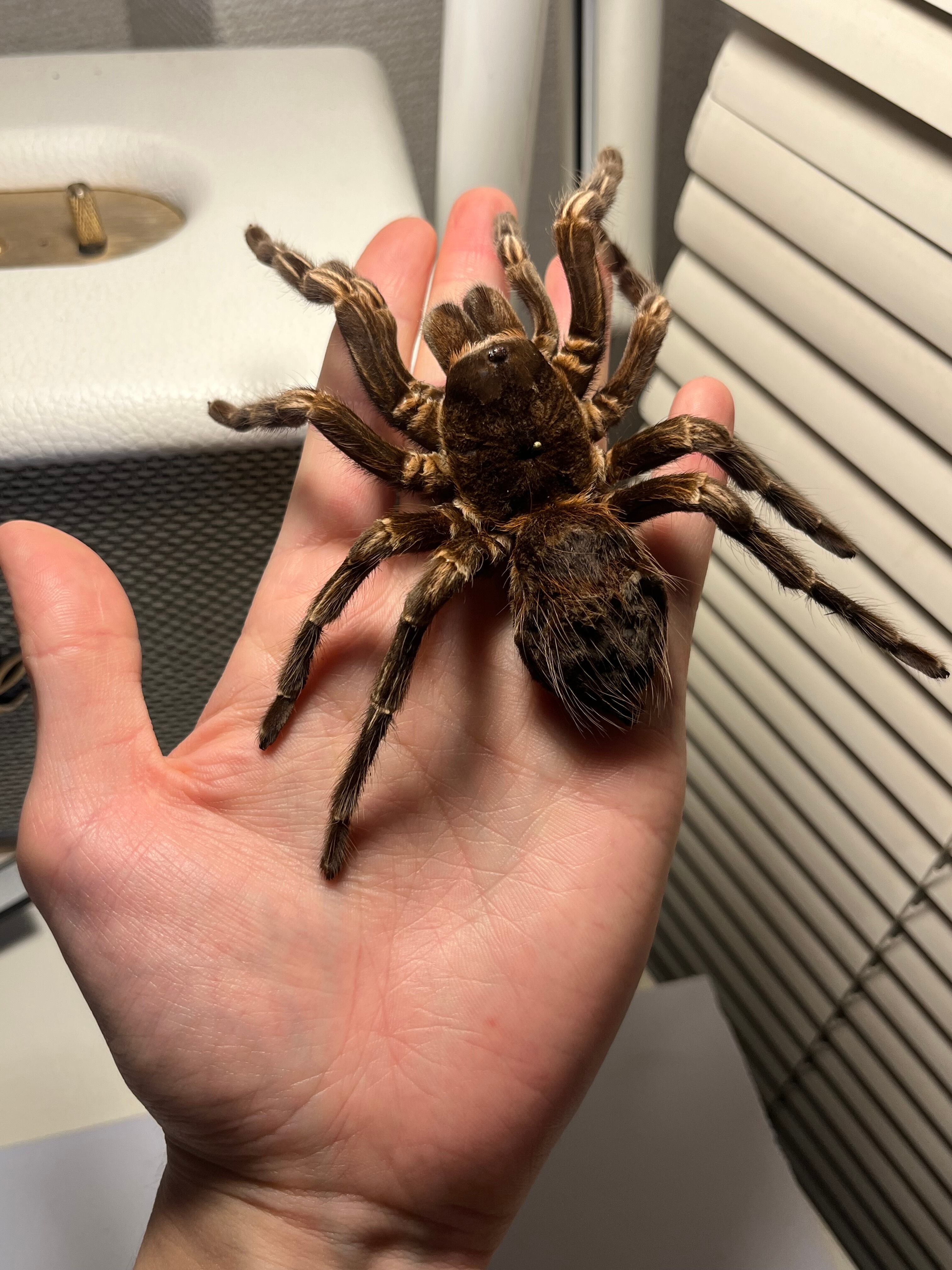 脚を広げて展足されてあるので、かなり迫力があります。タランチュラでは難しいハンドリング欲を満たせると思います。