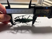 キンオニノコギリカミキリがこの種を示すコモンネームとして1番正しいみたいですが今ではルリオニカミキリが1番使用されているみたいです。英名が載っていないのでわからないです。