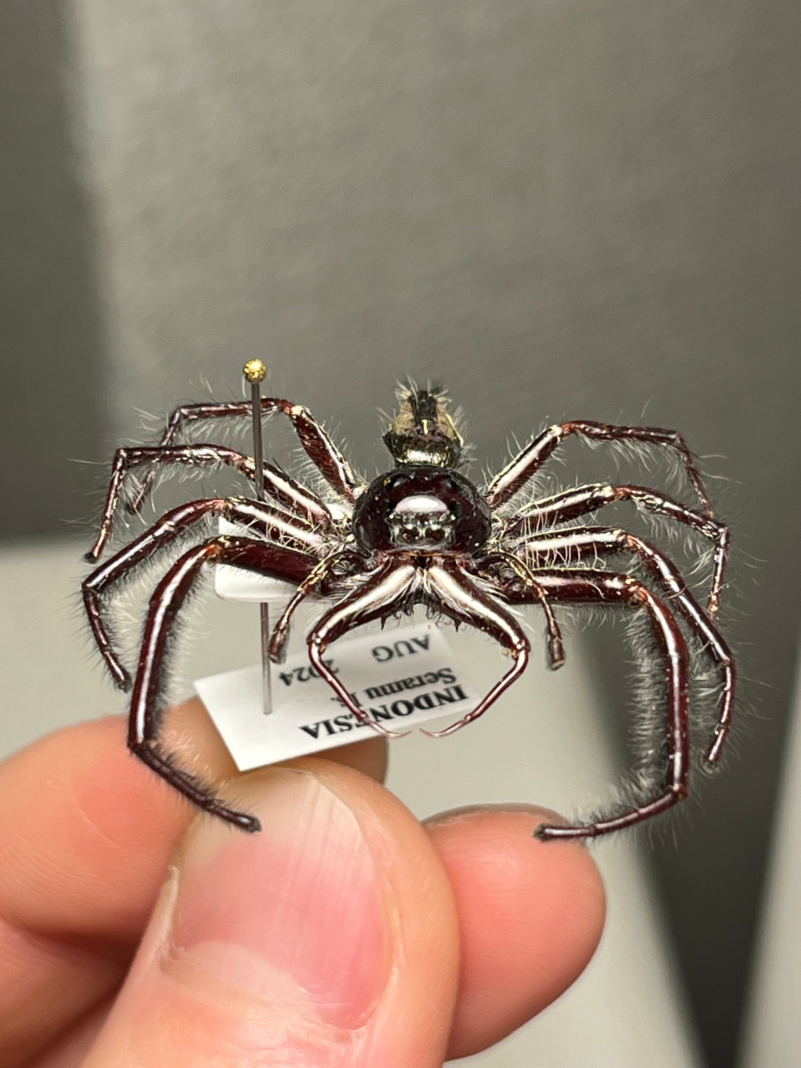 【蠅取蜘蛛最大種】ジャイアントジャンピングスパイダー ヒュッルス・ギガンテウス(Hyllus giganteus)?の昆虫標本 タランチュラムカデ蠍