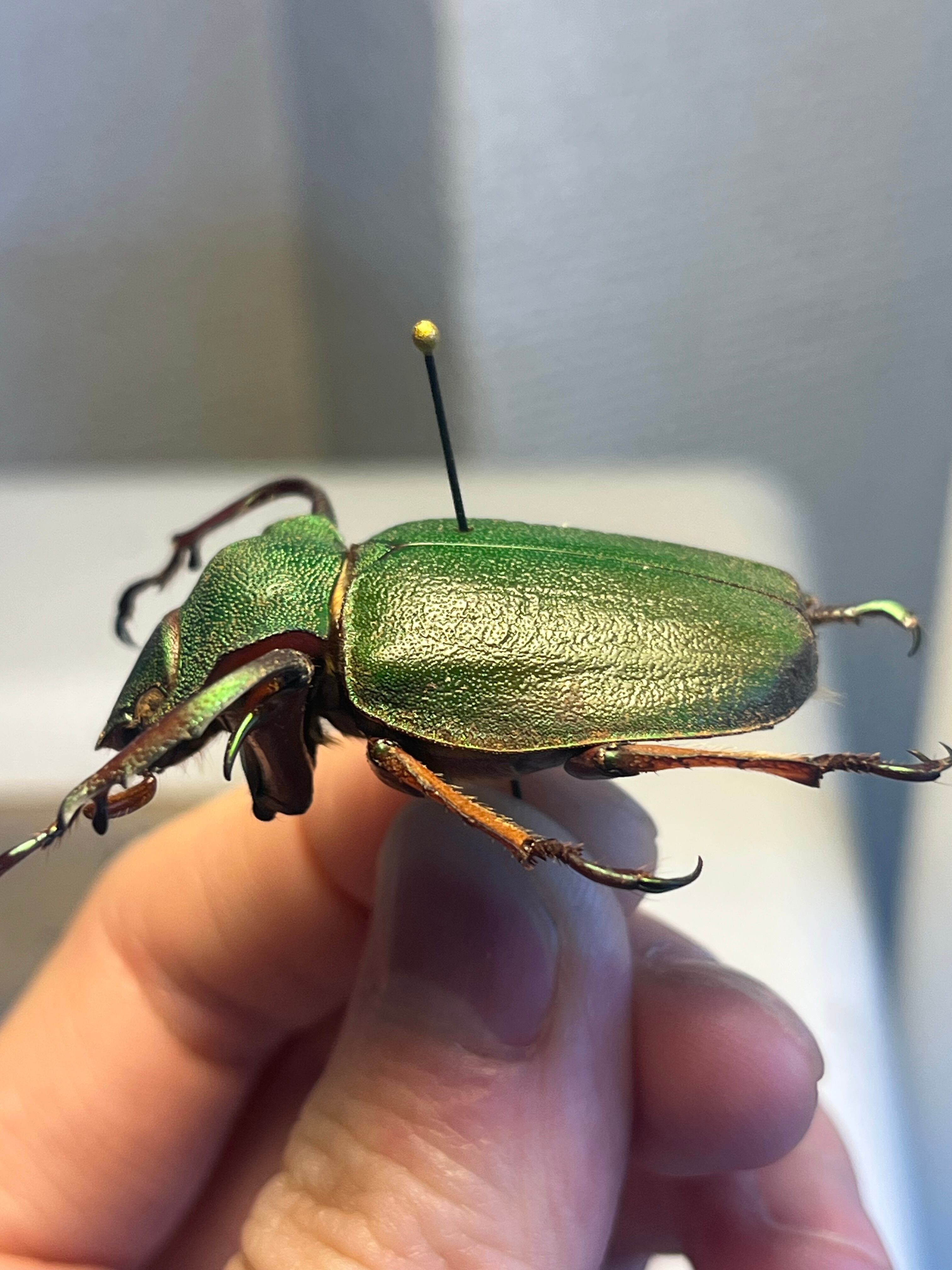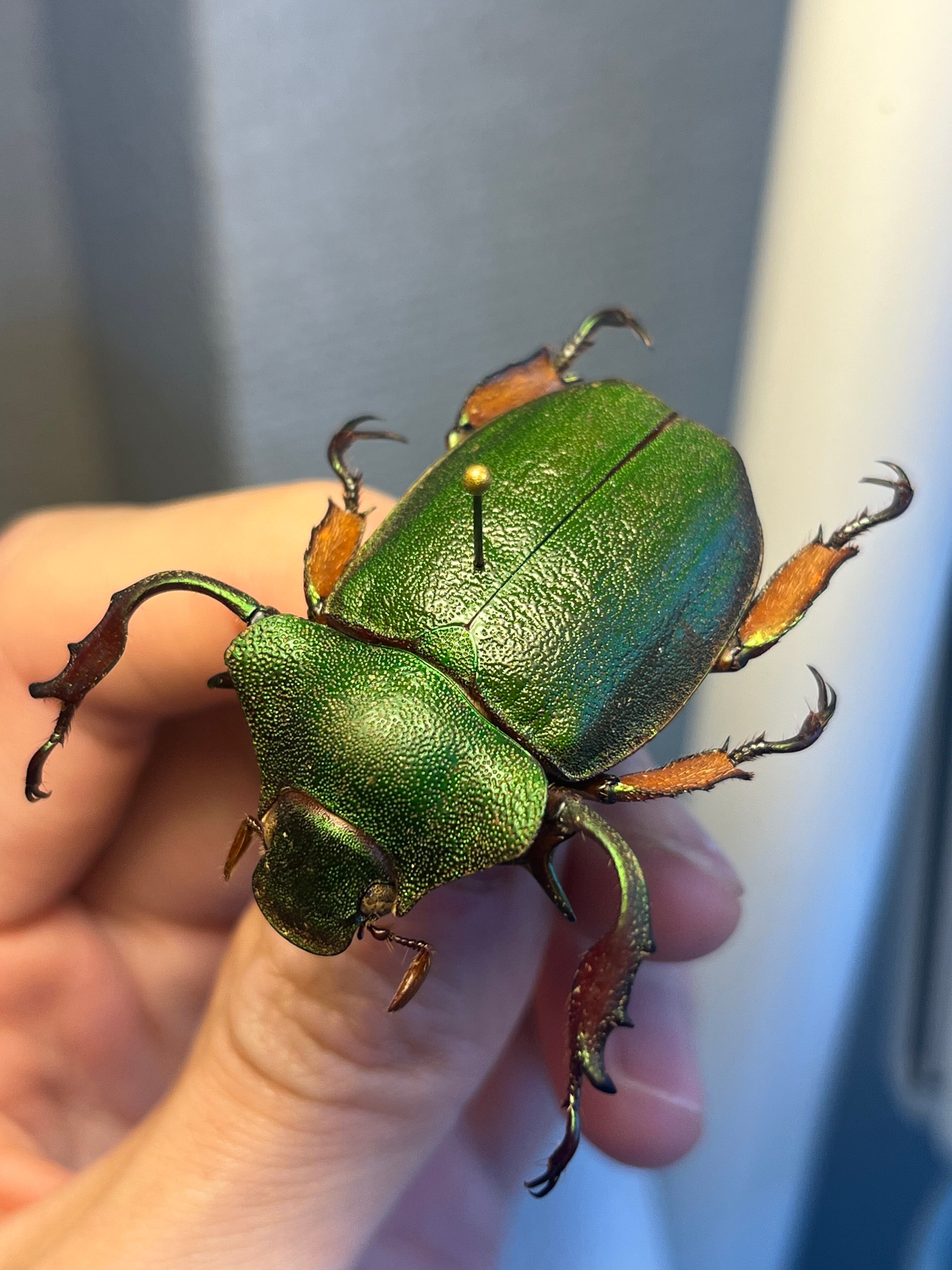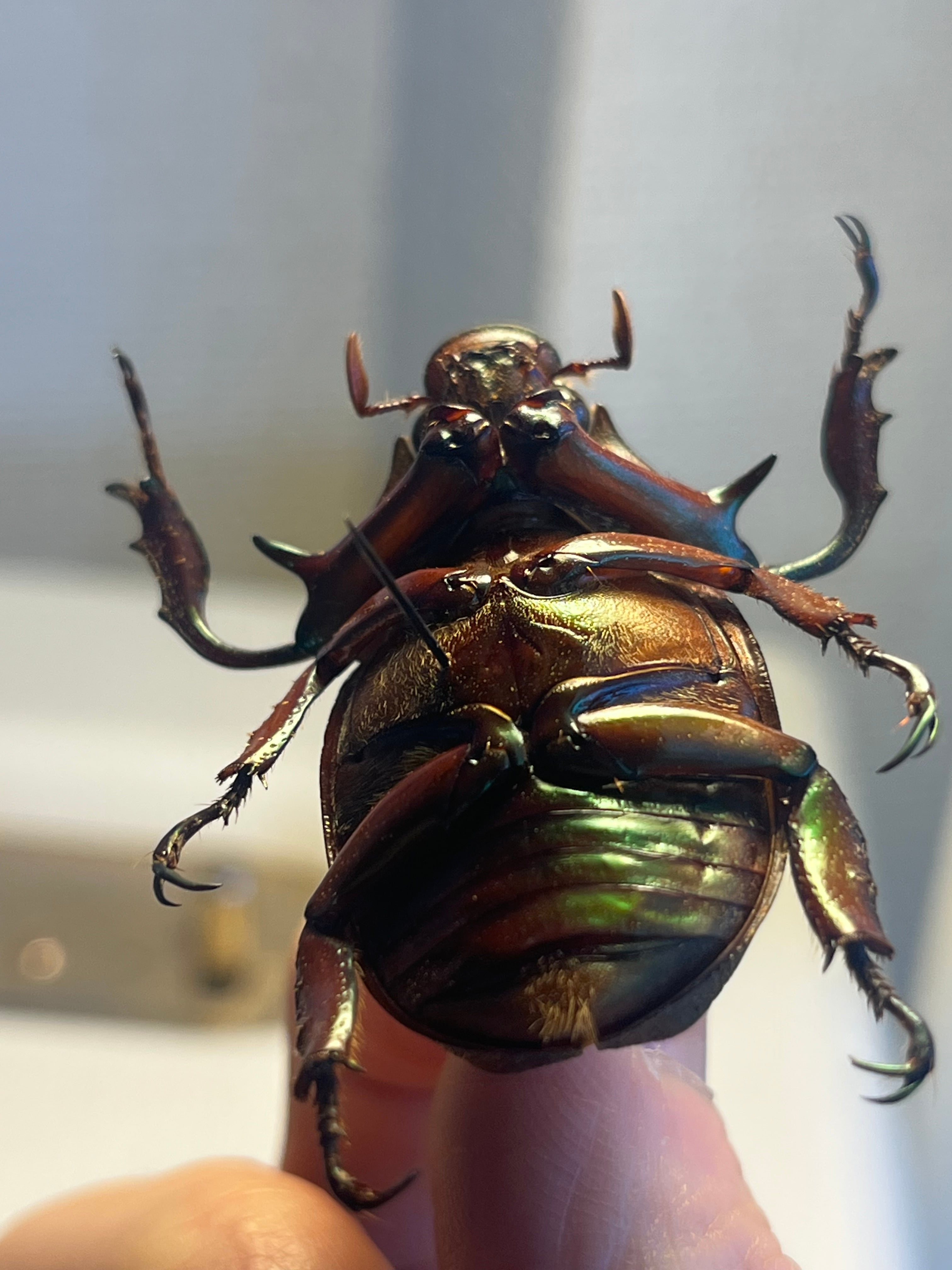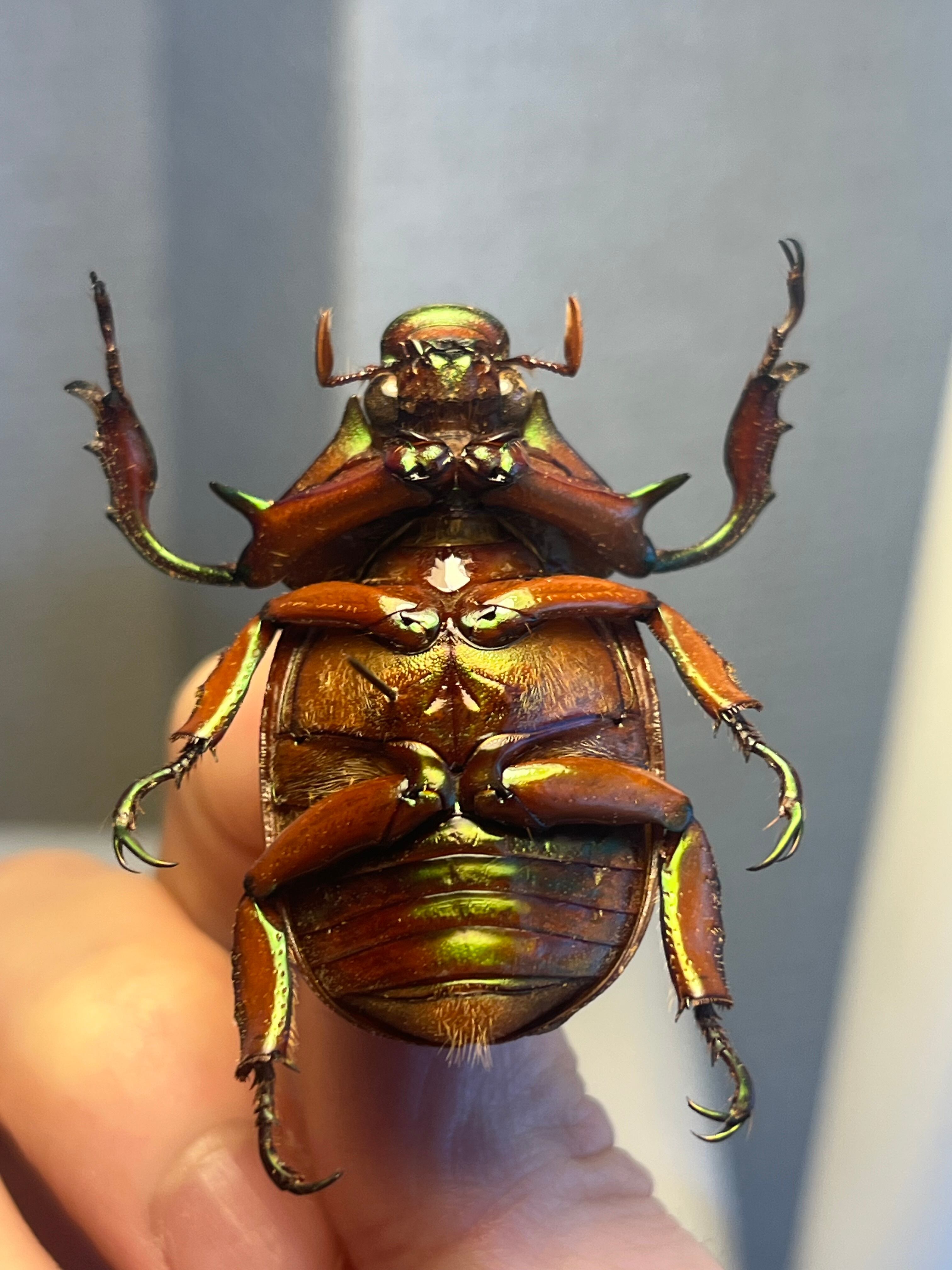足とお腹側の茶色に緑のメタリックがのります。