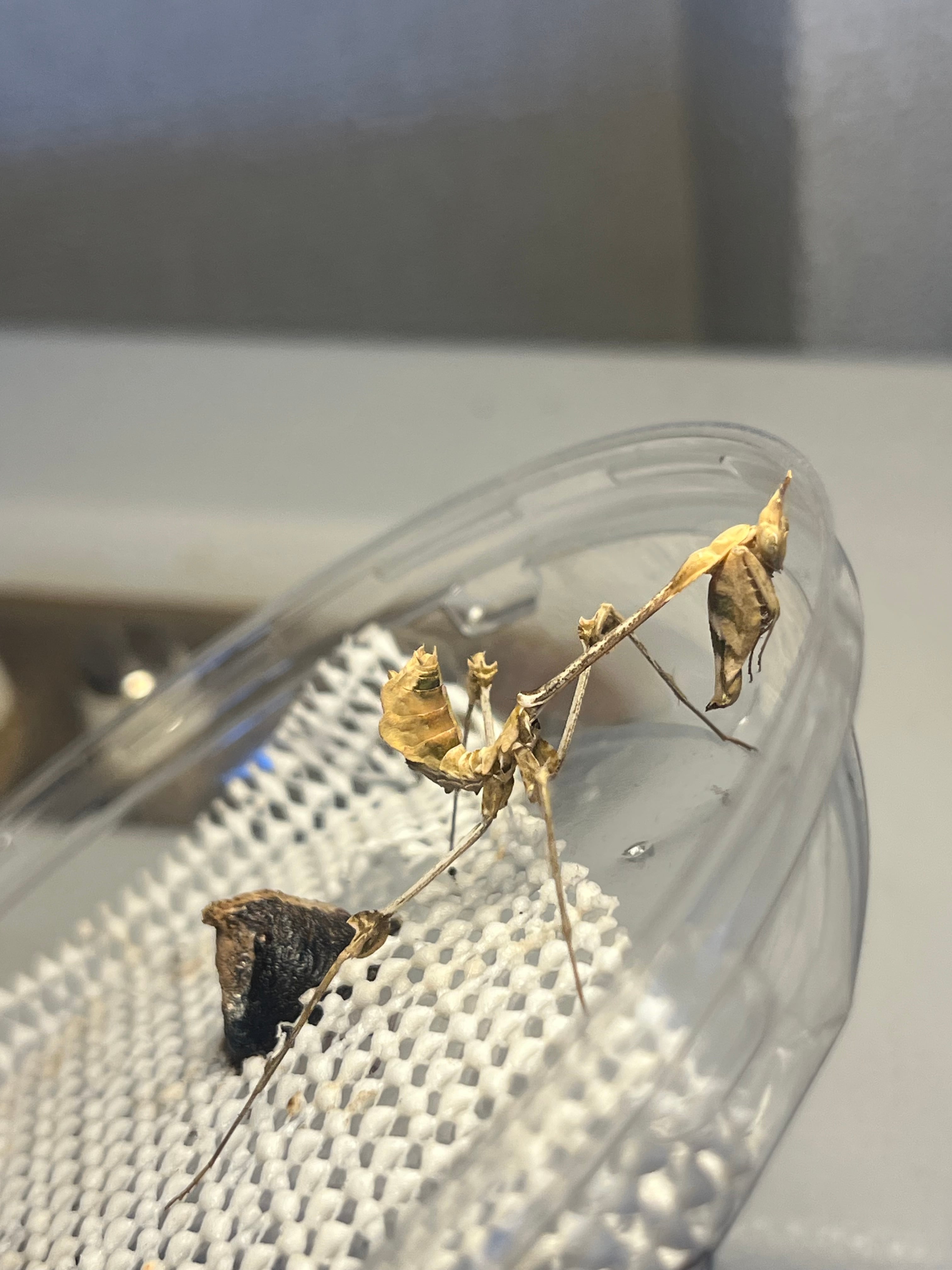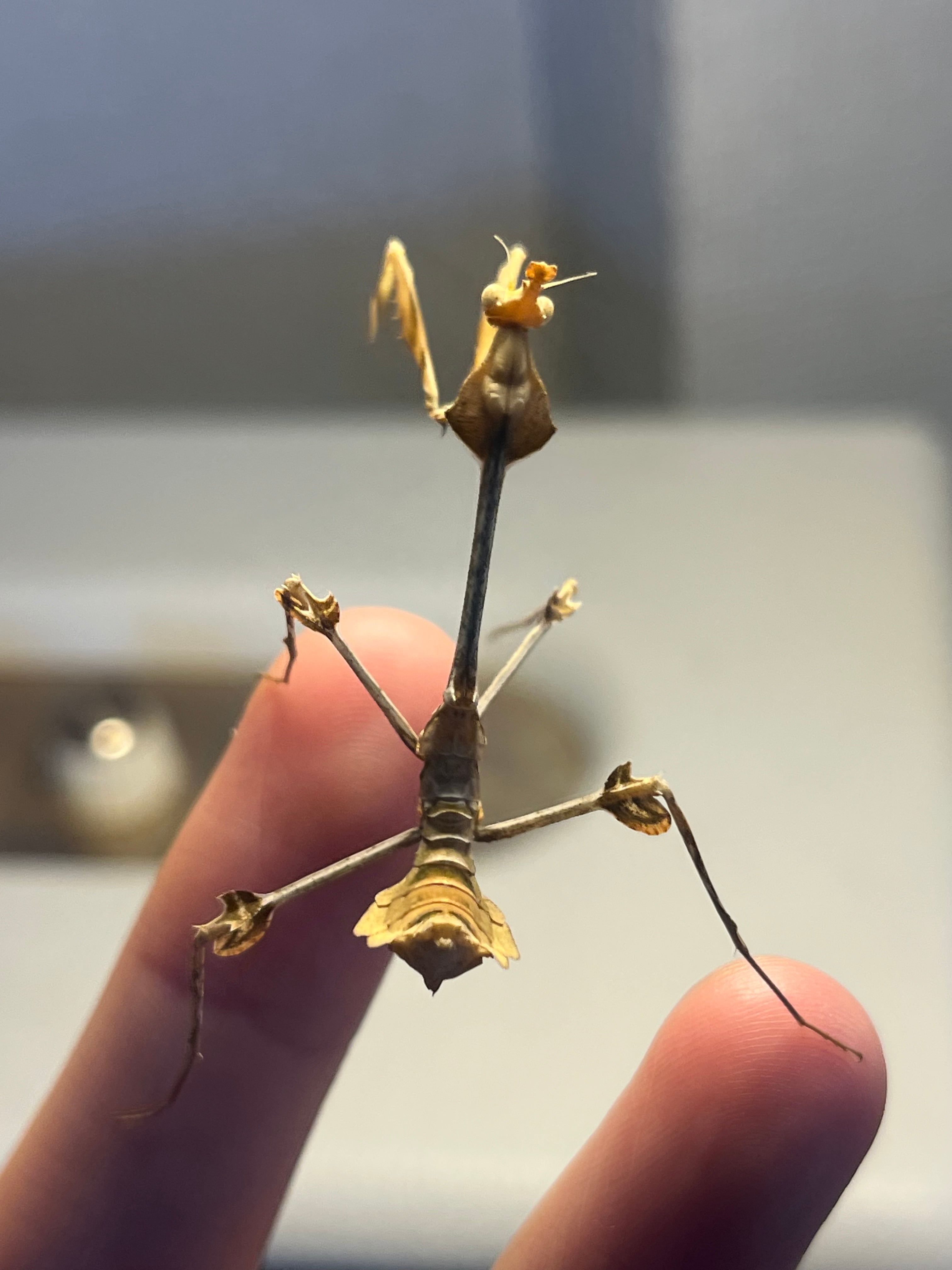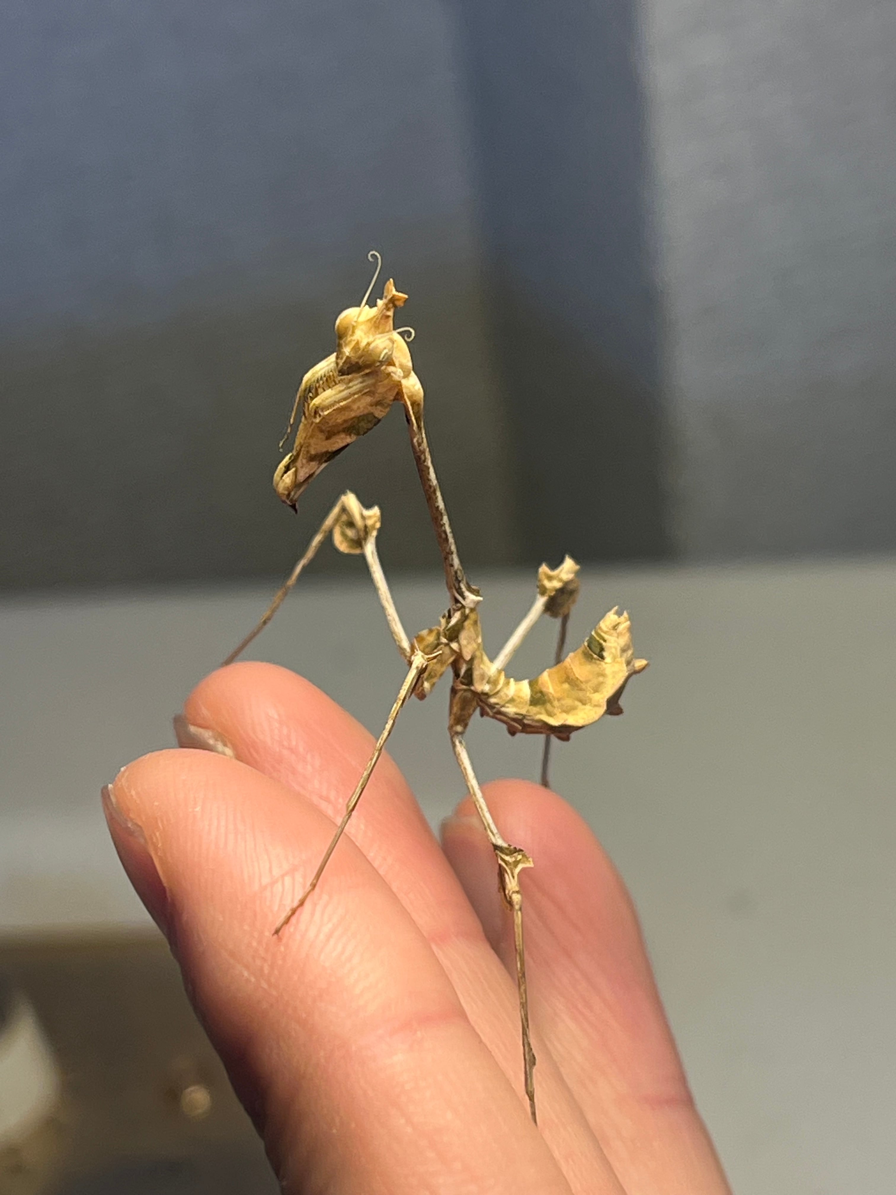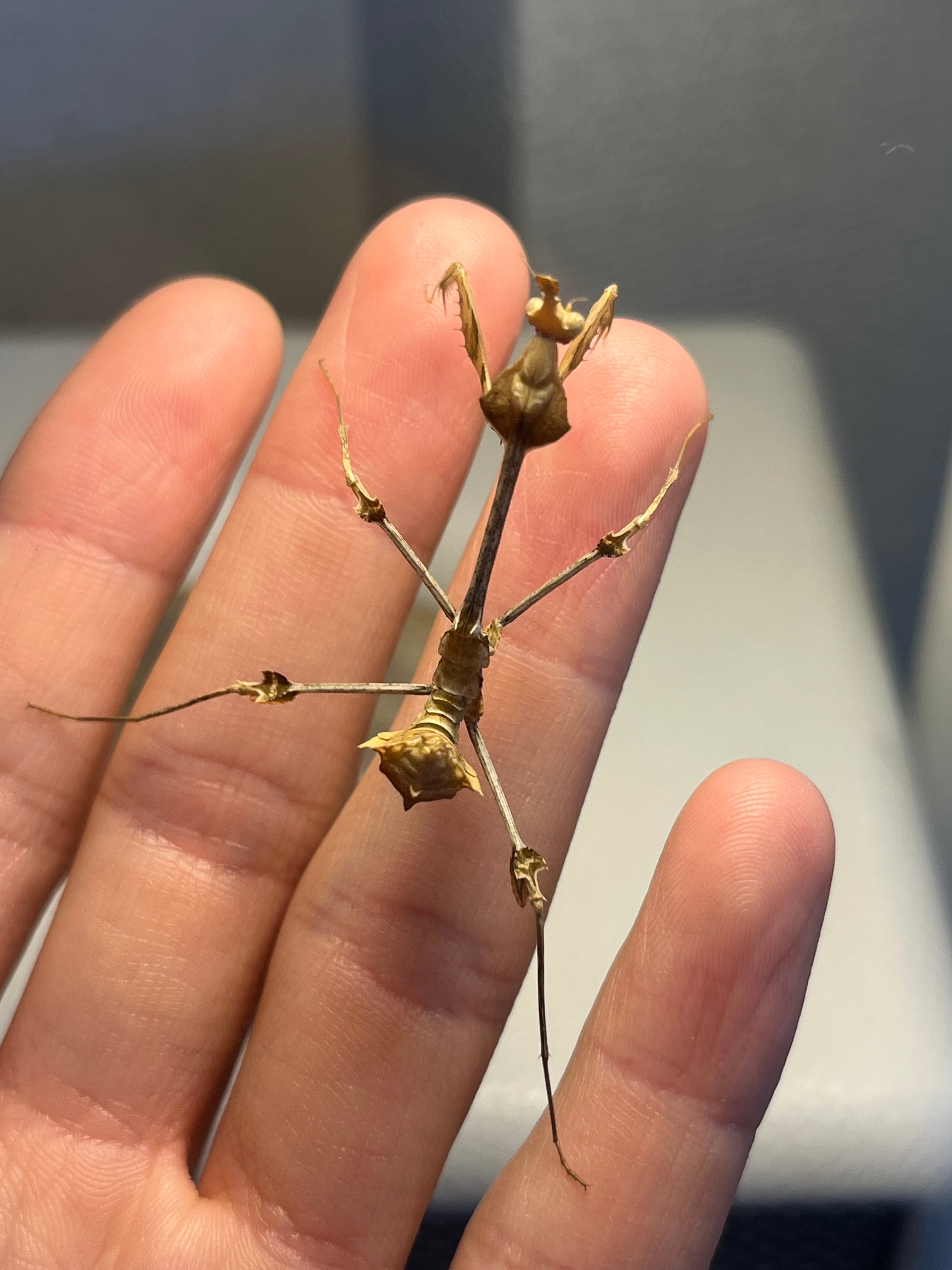ゴングイルス・ゴンギロデス(Gongylus gongylodes)は、カマキリ科に属するカマキリの一種で、放浪するバイオリンカマキリ、装飾カマキリ、インドバラカマキリとも呼ばれます。非常に細い肢と大きな付属肢を特徴とし、特に攻撃的な種ではありません。ペットとして飼育されることも多いです。特に、風に揺れる棒のように体を前後に揺らすことで知られています。主に飛翔昆虫を餌としています。原産地はインド南部とスリランカです。体長は最大11cmに達します。オスは飛翔能力があります。集団で生活し、不必要な共食いをすることなく、大規模な群れで生活・繁殖できる集団性カマキリです。成虫のメスは約10cm、成虫のオスは約9cmです。