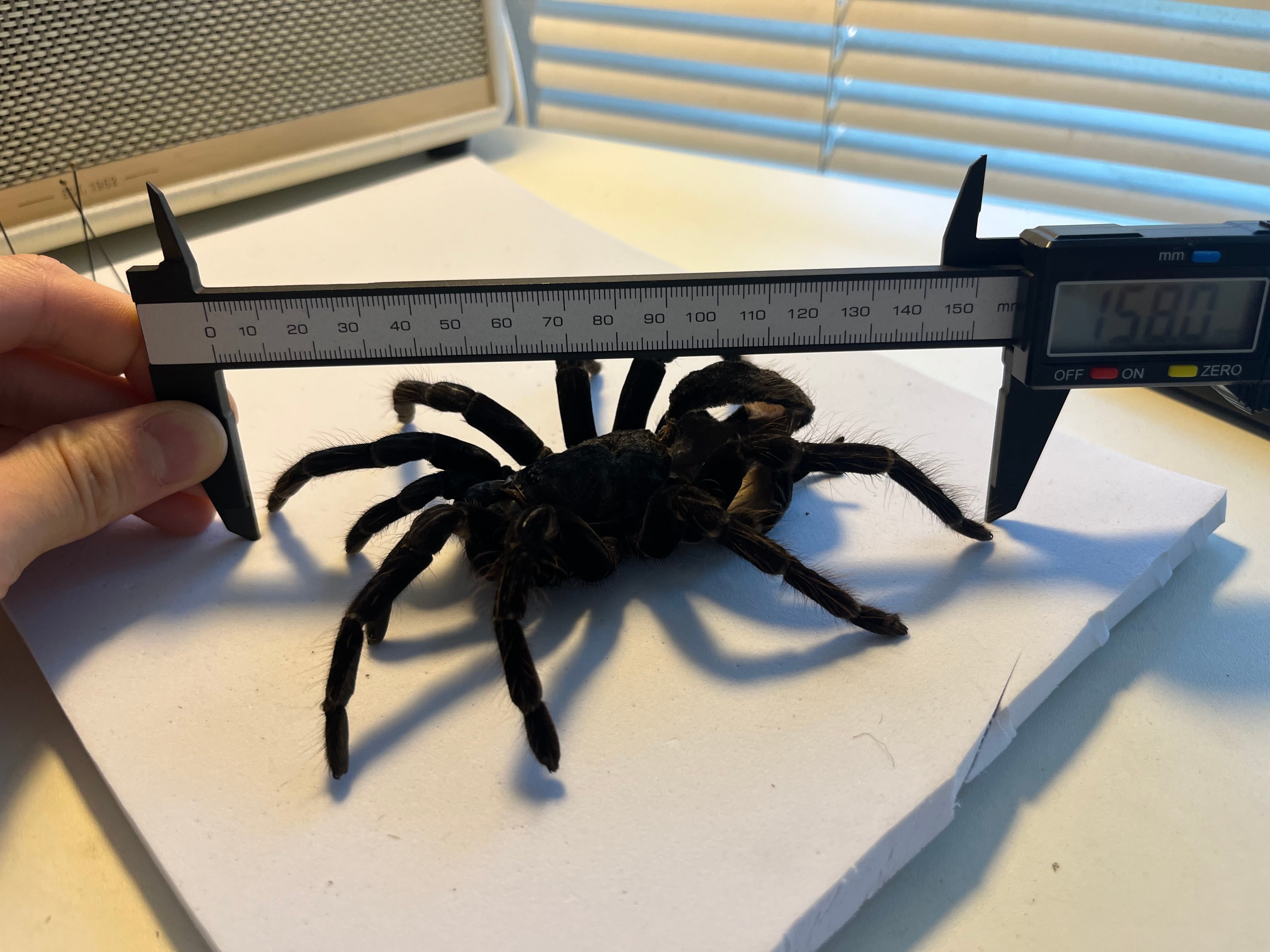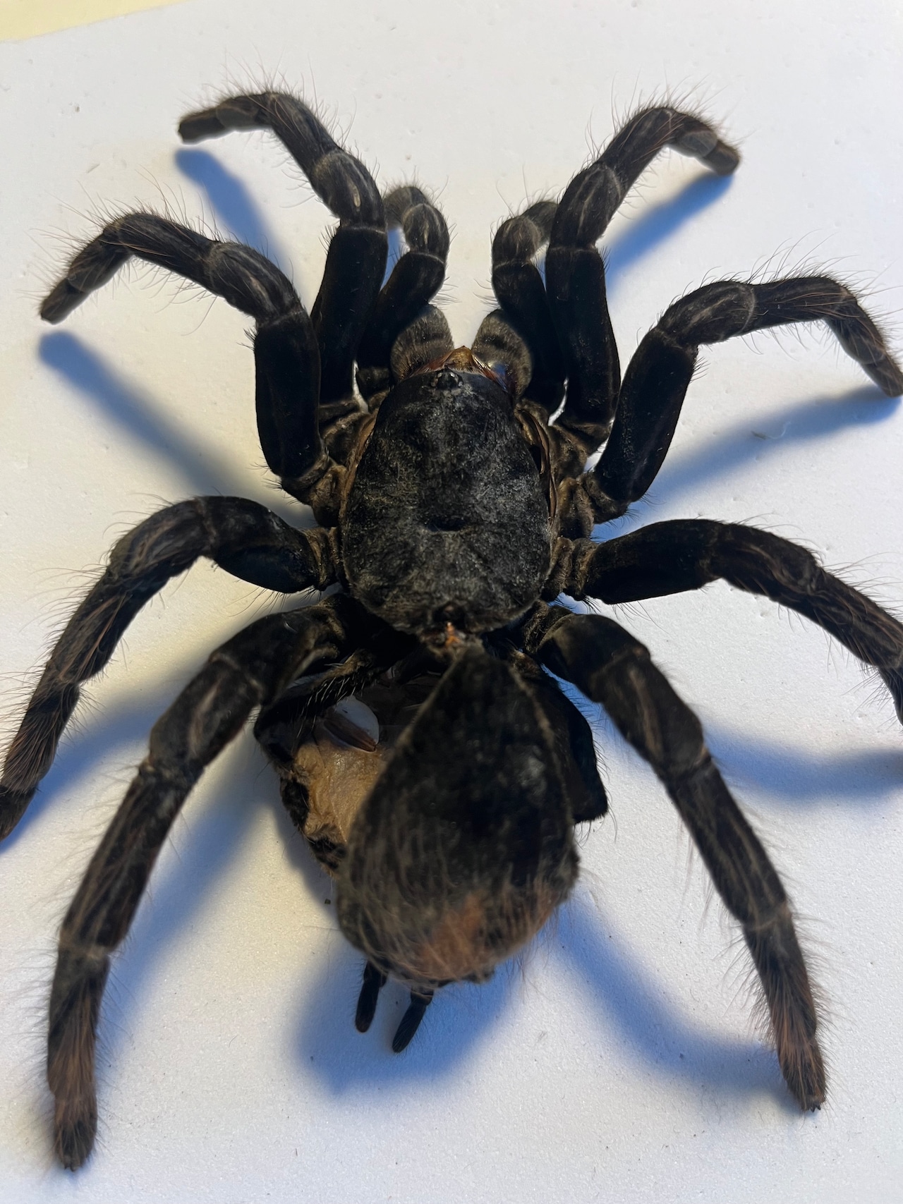 レッグスパン16cmほどの1枚目の画像脱皮殻標本をお送りします。脱皮直後は白光りする美しさがあります。