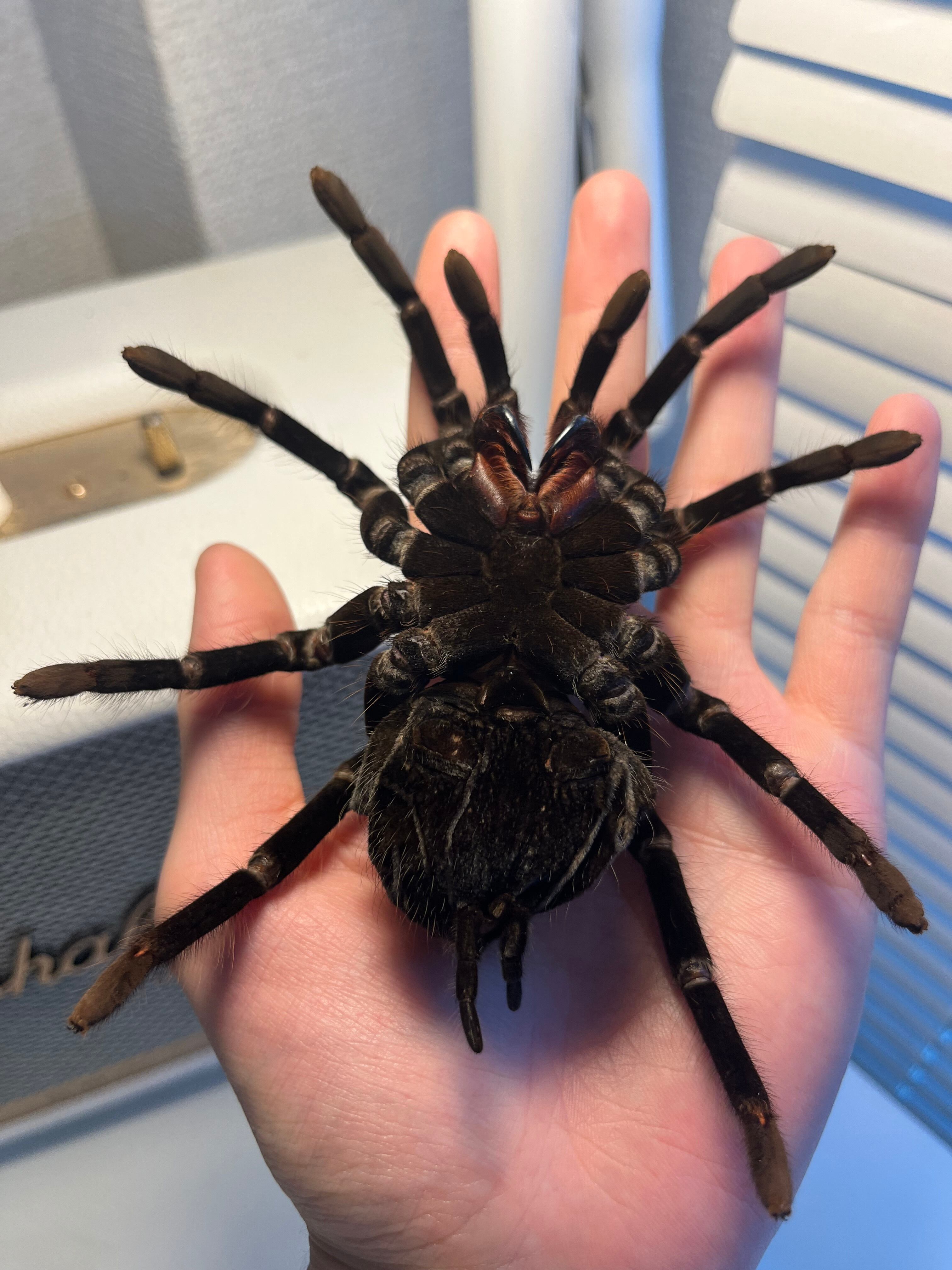 ♂は足が青くなり、♀は真っ黒になるタランチュラです。