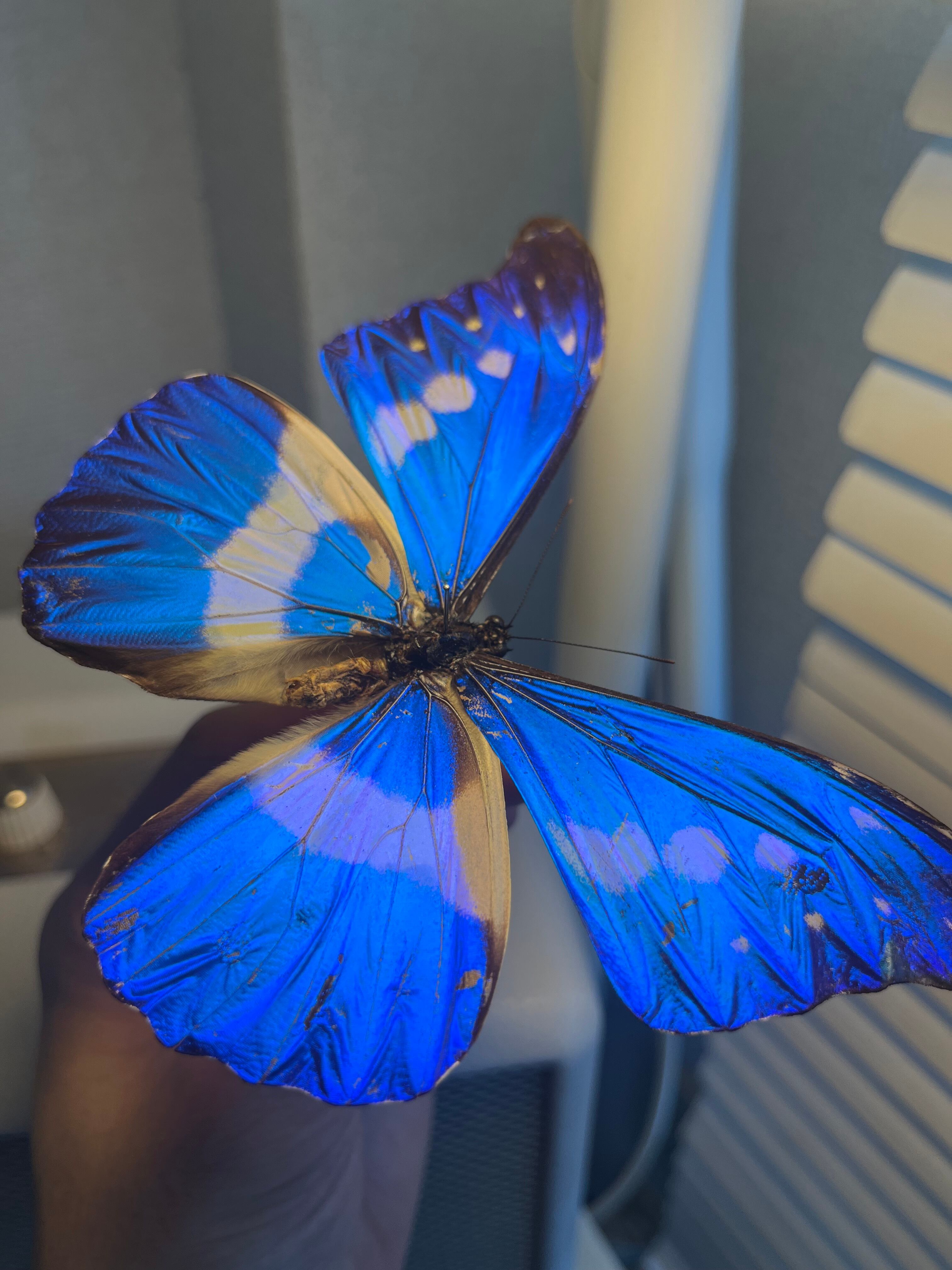 モルフォチョウの中でもっとも輝きの強い羽をもちます。羽全体がサファイアのような色合いで、極めて美しいです。