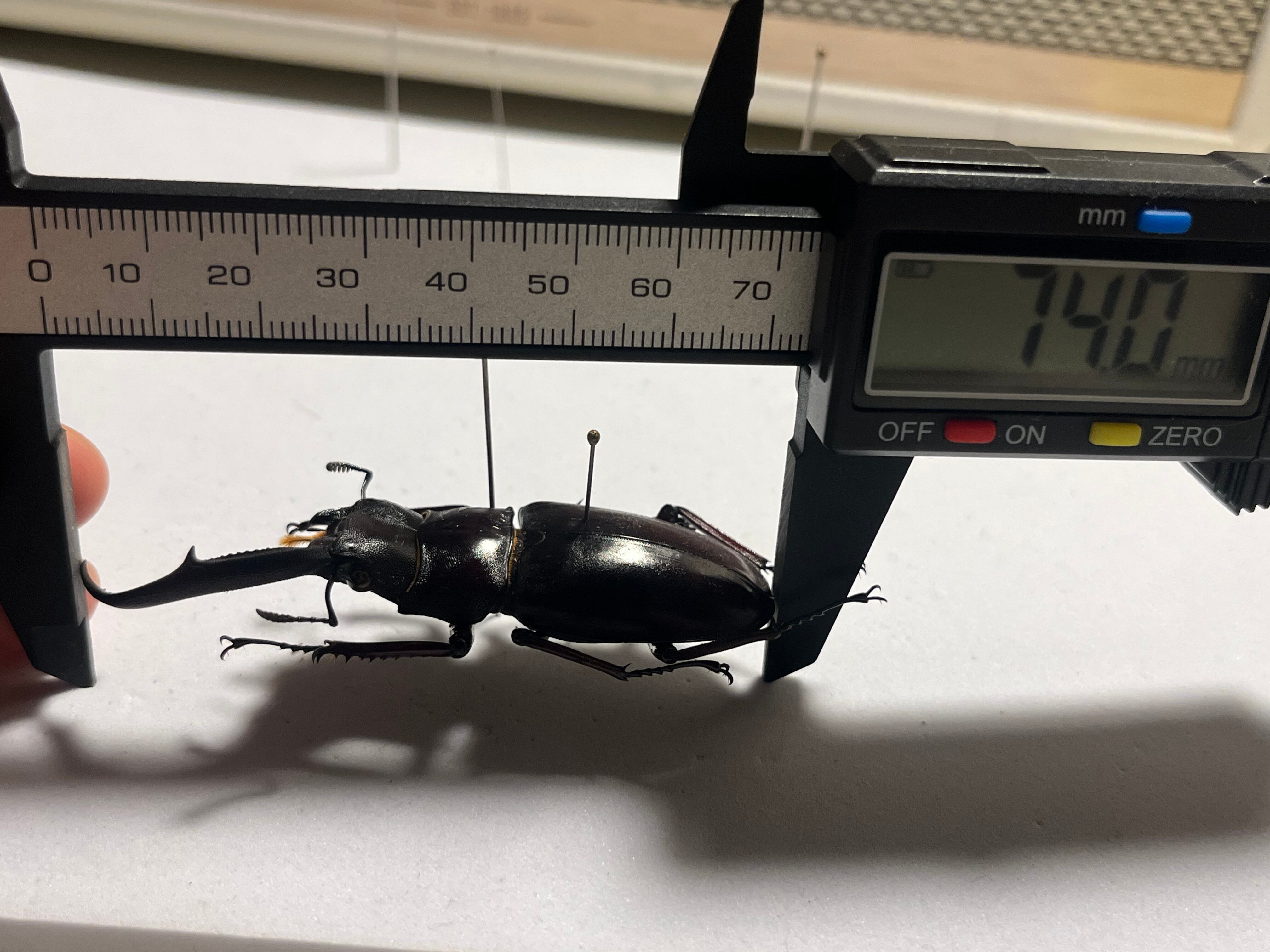 画像標本を発送いたします。私が計測したところ♂の方で74mmでした。メスの方は足が短くなっているので完璧な雌雄同体だと思います。