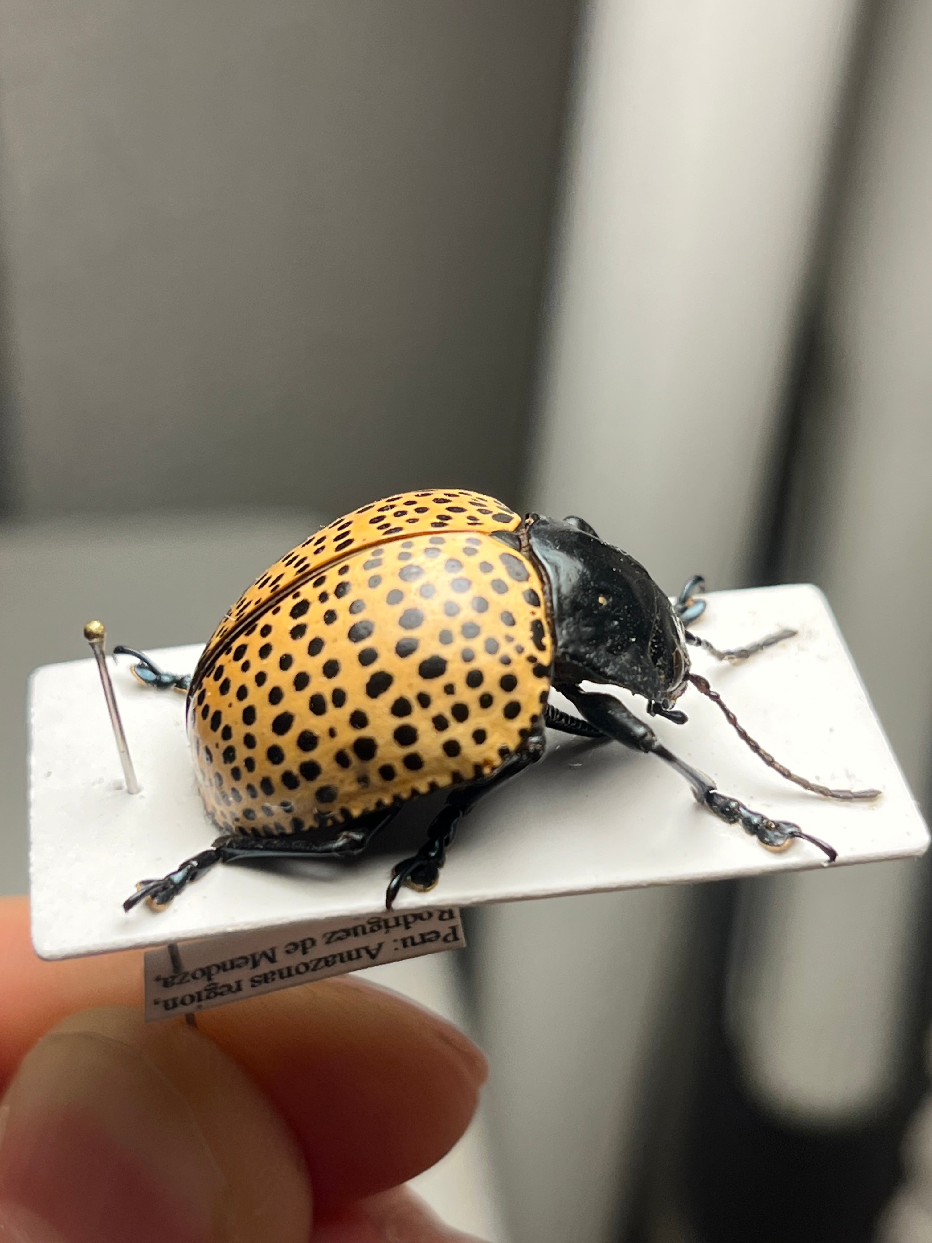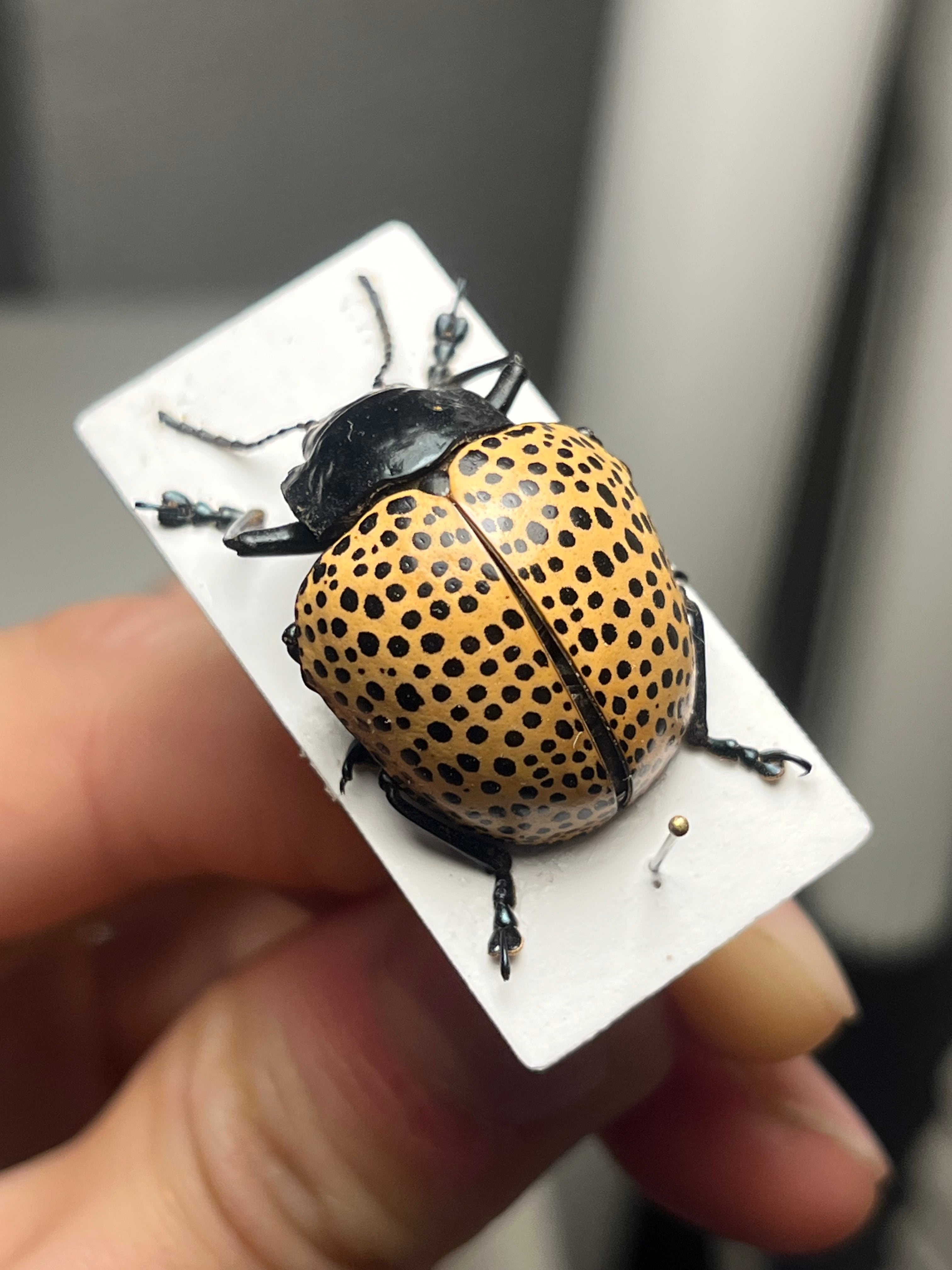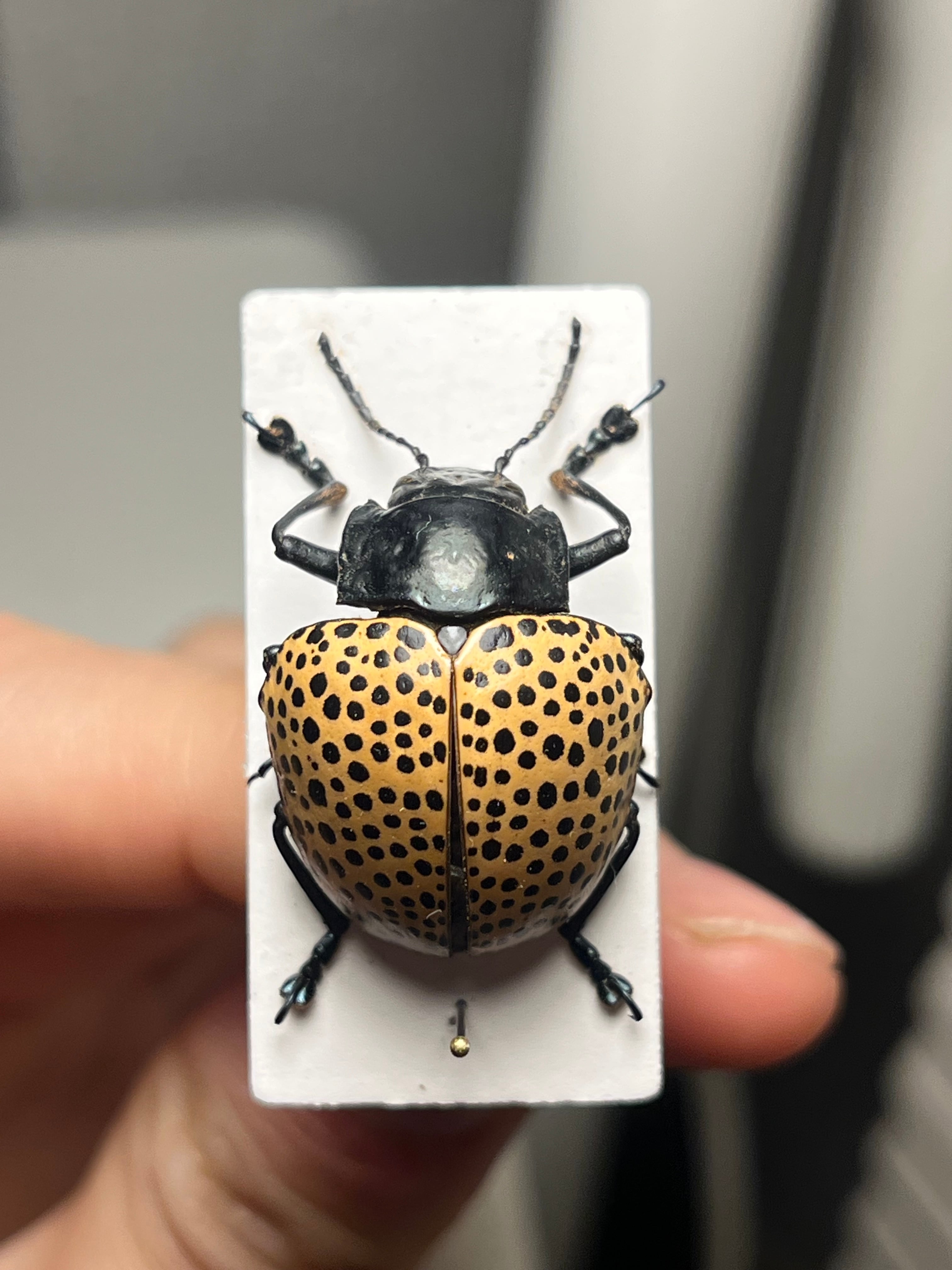 ズングリハムシはコロンとした丸い体型にバリエーション豊かな模様が魅力的な南米のハムシ、「とんでもない甲虫」でも見開き2ページに渡って紹介されているグループです。この仲間は大抵お腹に突起があるのも特徴の一つです。