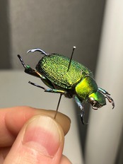 プラチナコガネより大きく肉眼でキラキラ感を楽しめると思います。メスの方が胴体膨らんでいる気がします