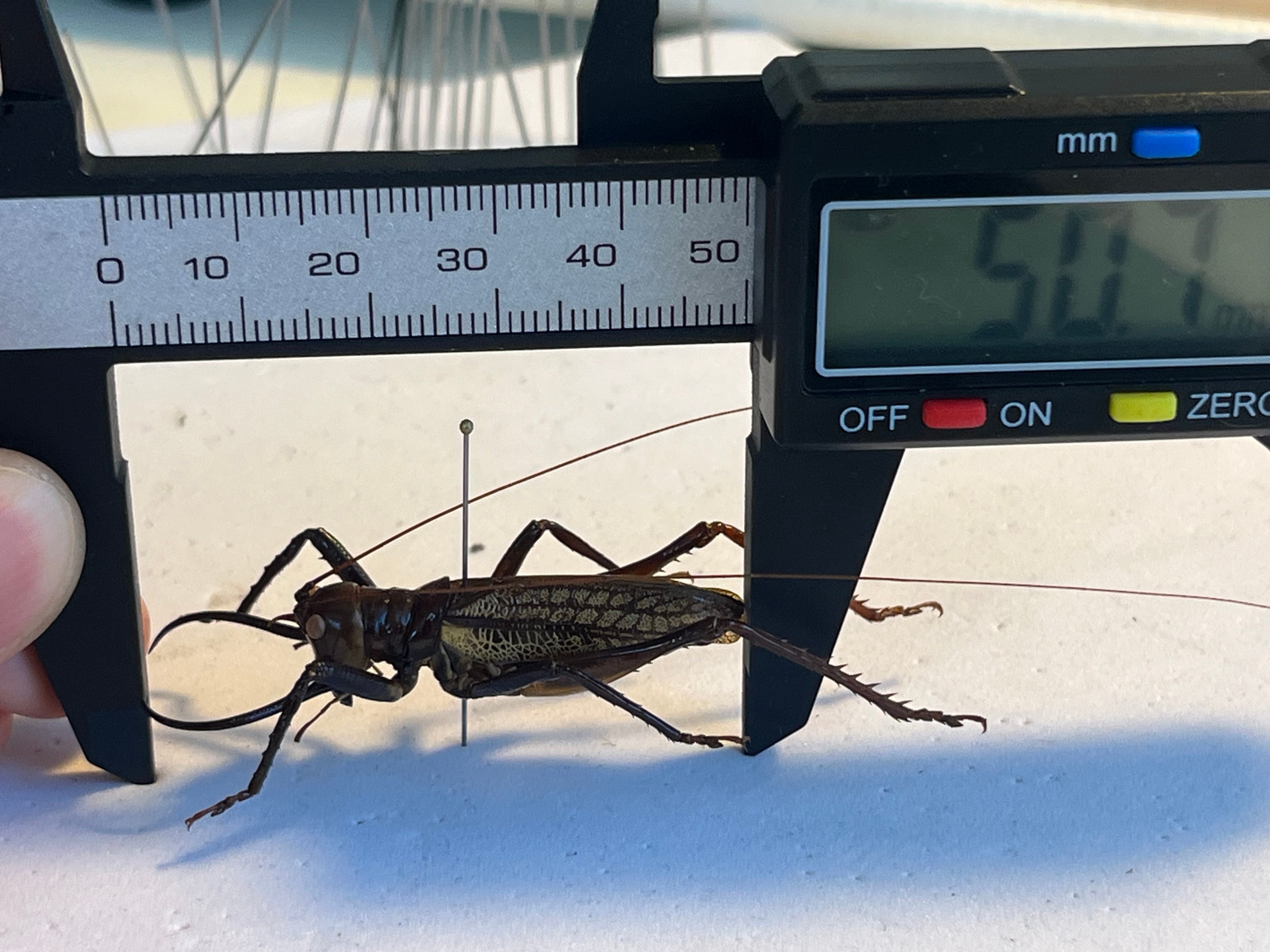 昆虫標本作家の福井敬貴さんの2024年の作品でお腹への綿の詰め漏れや蛇腹のよれがなく、触覚も自然なアーチを描いているので神がかり的な展足だと思います。