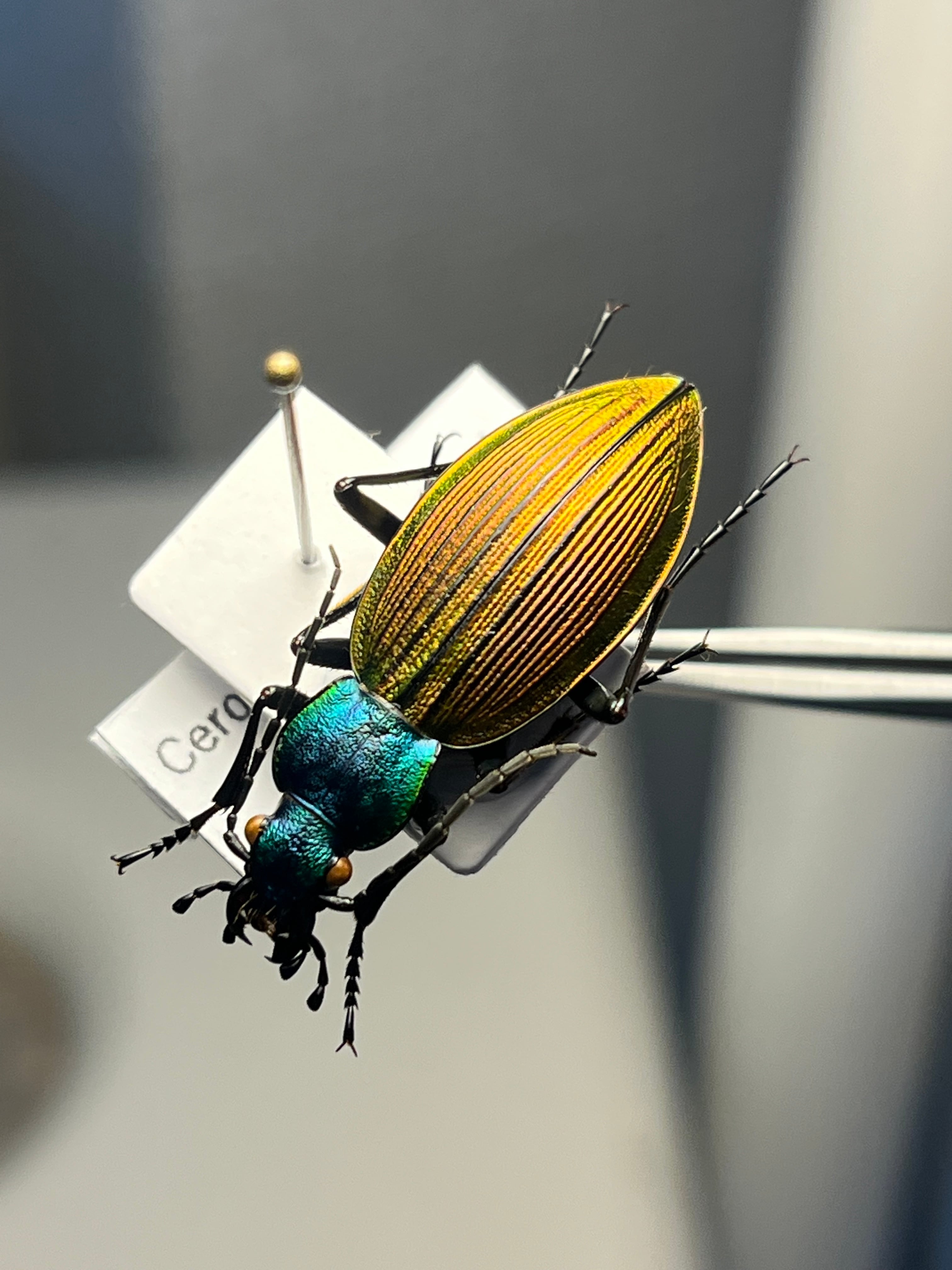 オサムシ類は北半球の分布が多く、南半球では、オーストラリアオサムシとチリオサムシ類が有名で互いに近縁とされており、ゴンドワナ大陸、すなわち、ジュラ紀あたりに共通のご先祖様がいたようです。